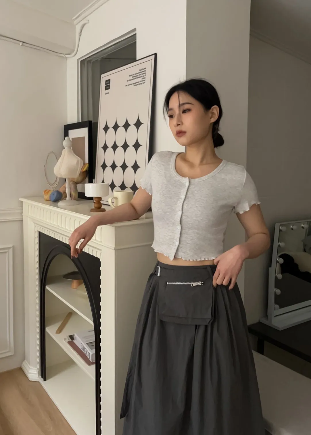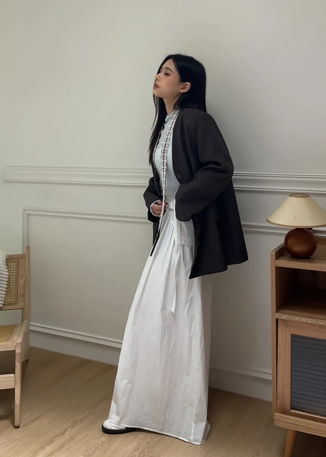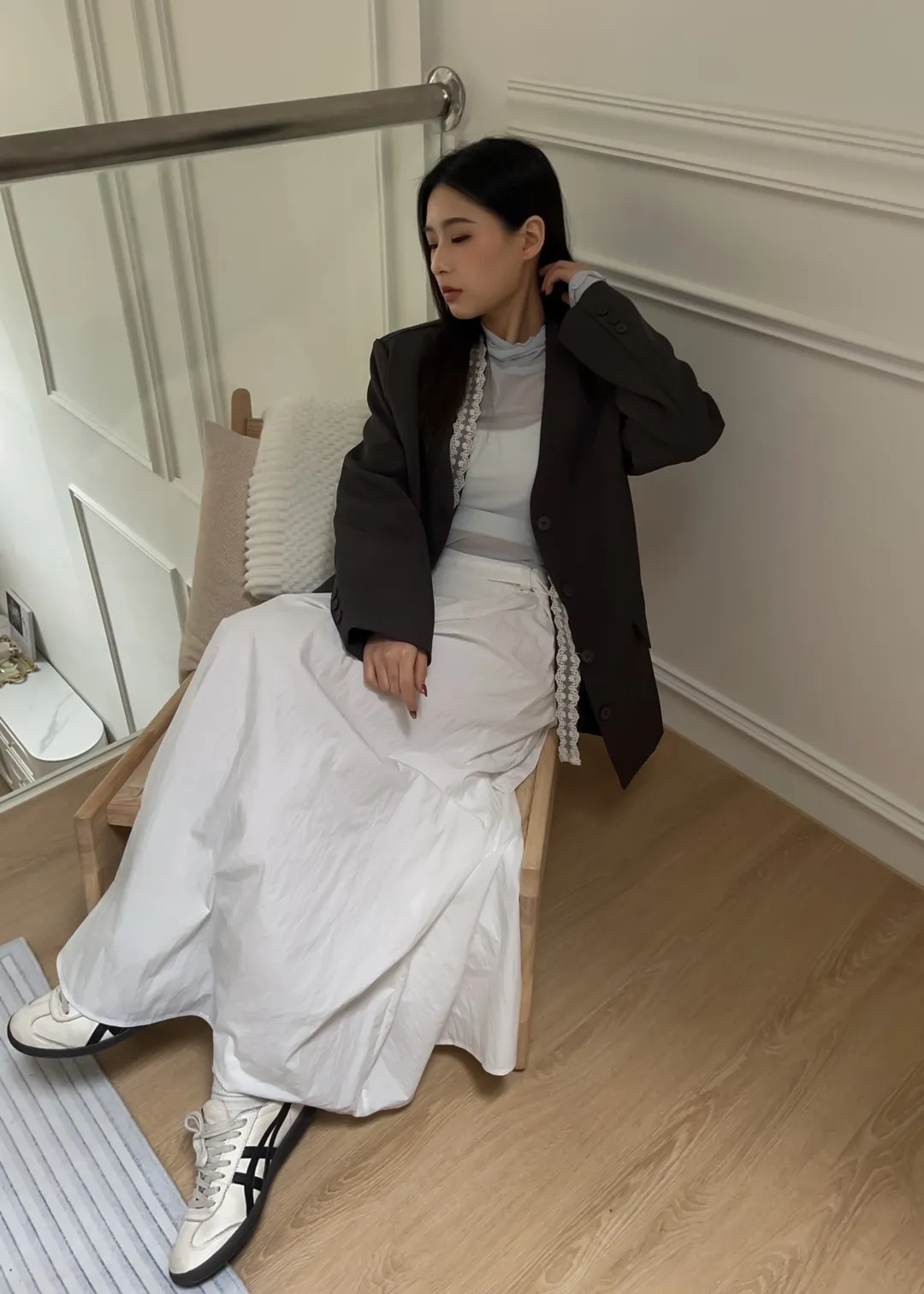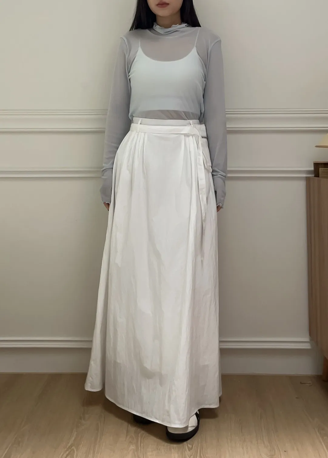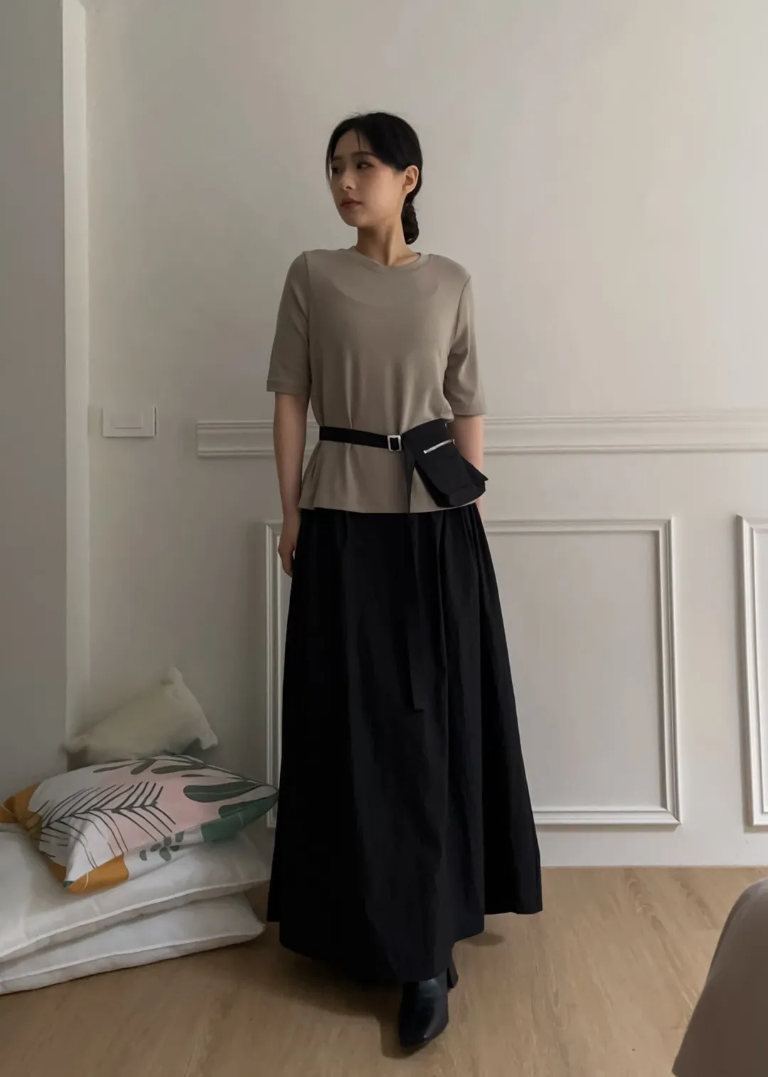 M0030(附腰包)個性打折刷刷長裙(白/灰/黑)(售完不補)