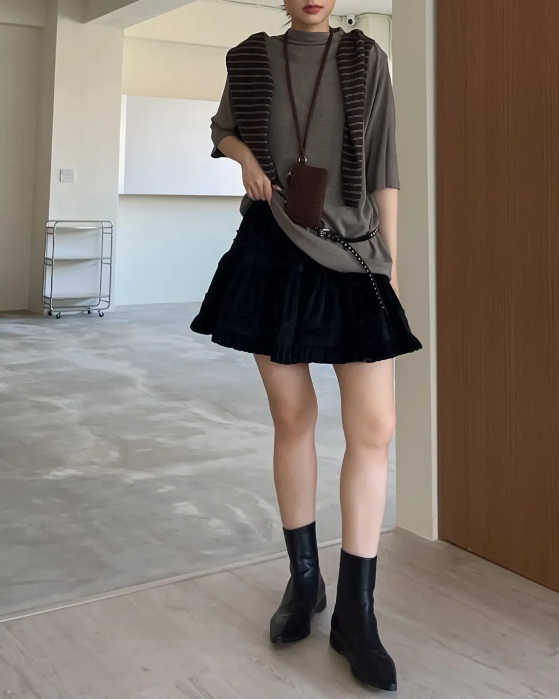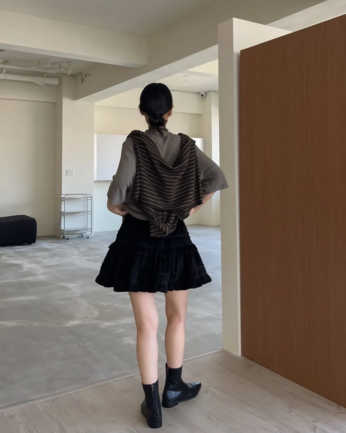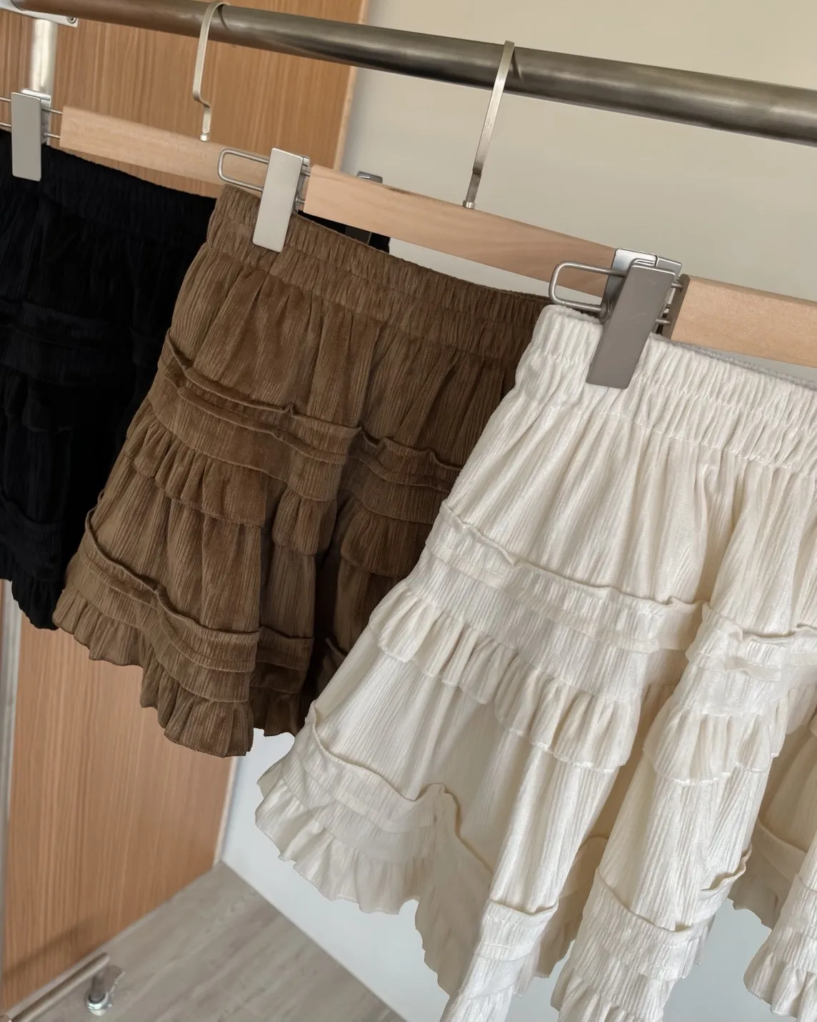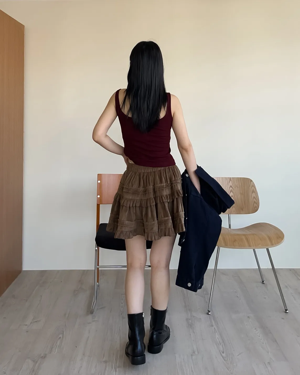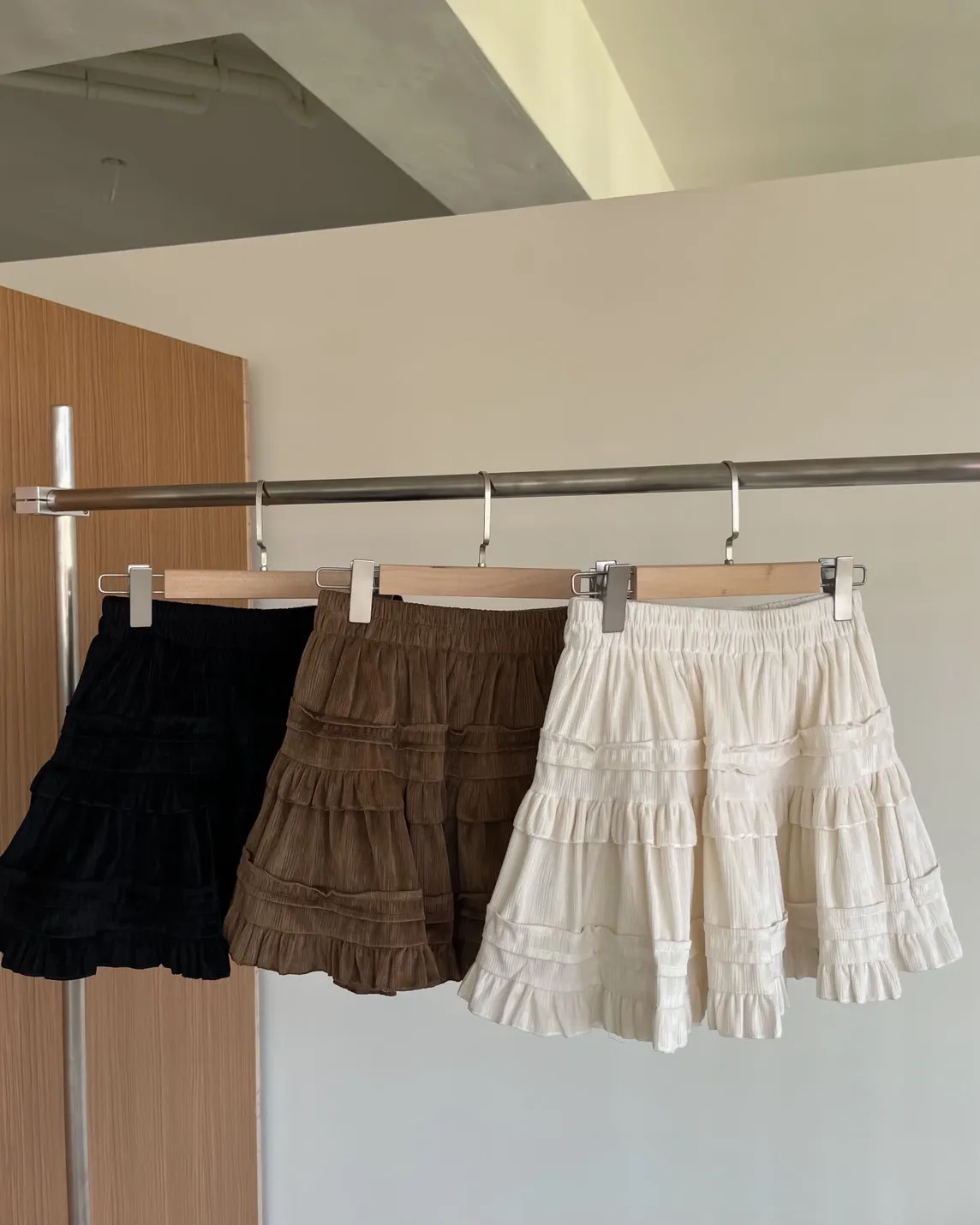 V0056芭蕾風絨絨蛋糕短裙(米白/咖啡/黑)