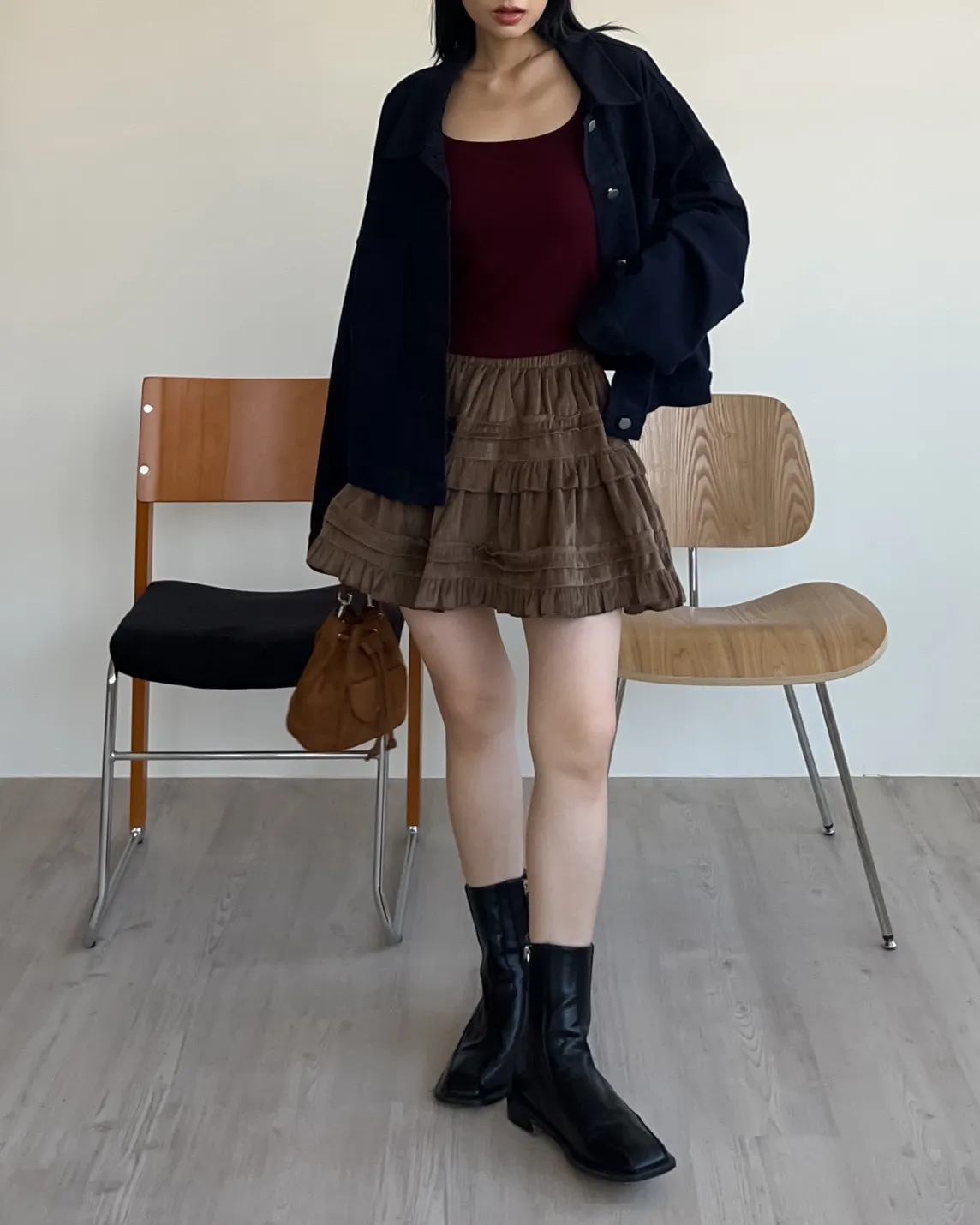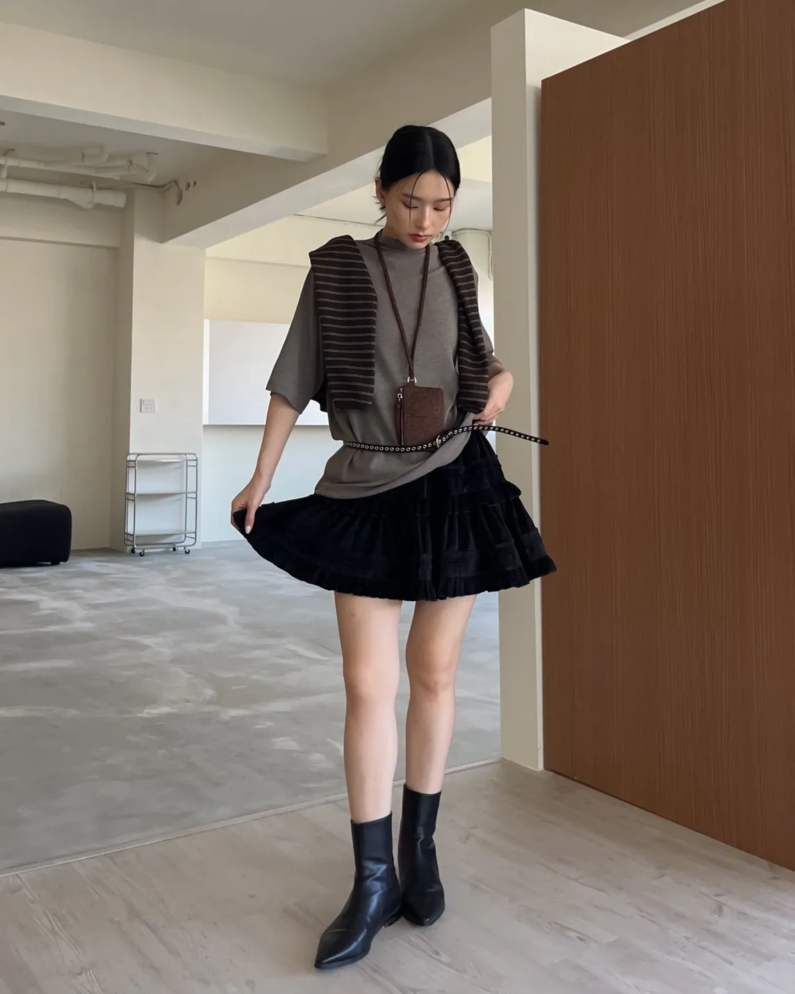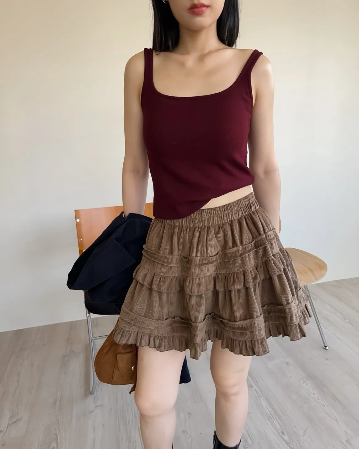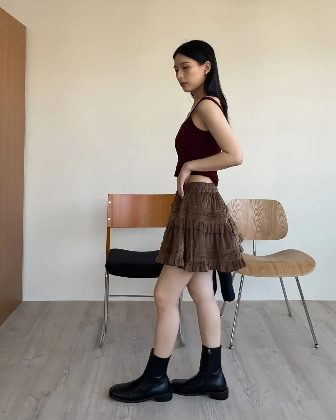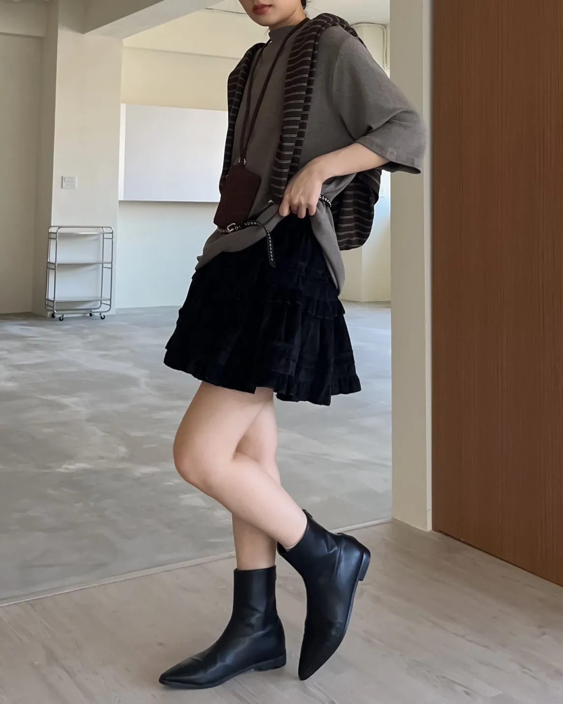 V0056芭蕾風絨絨蛋糕短裙(米白/咖啡/黑)