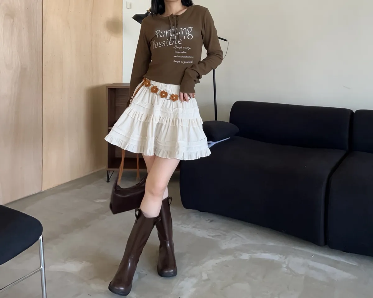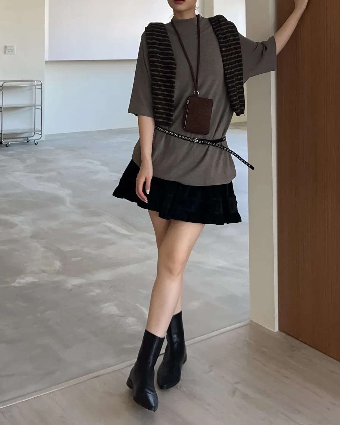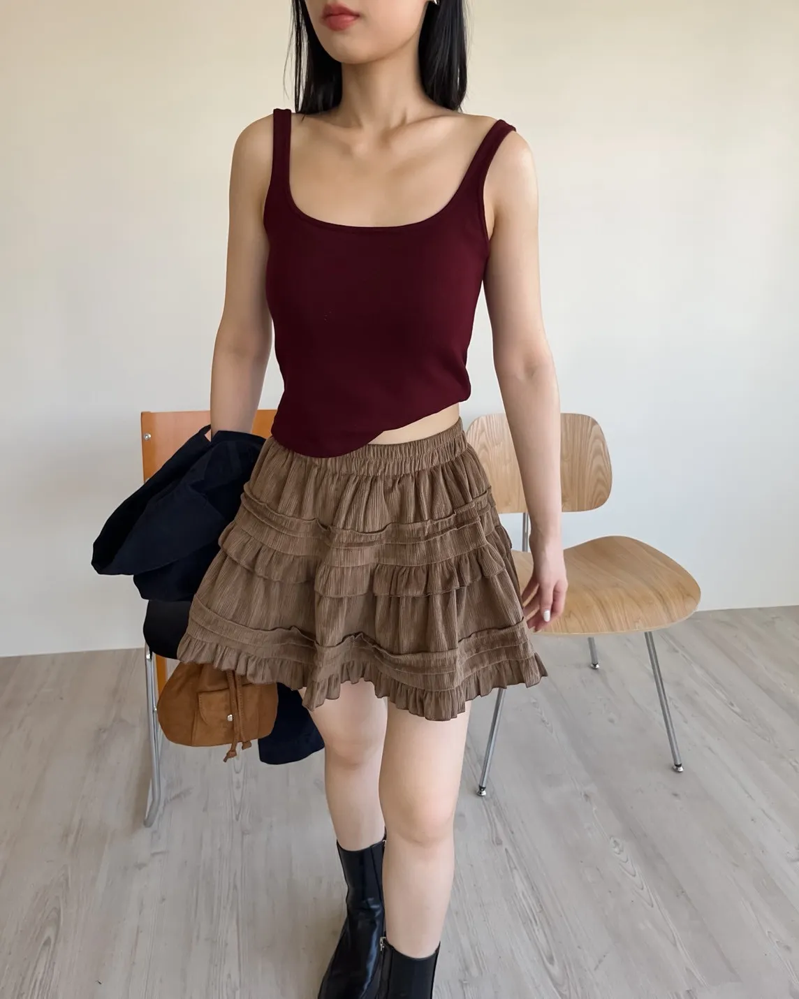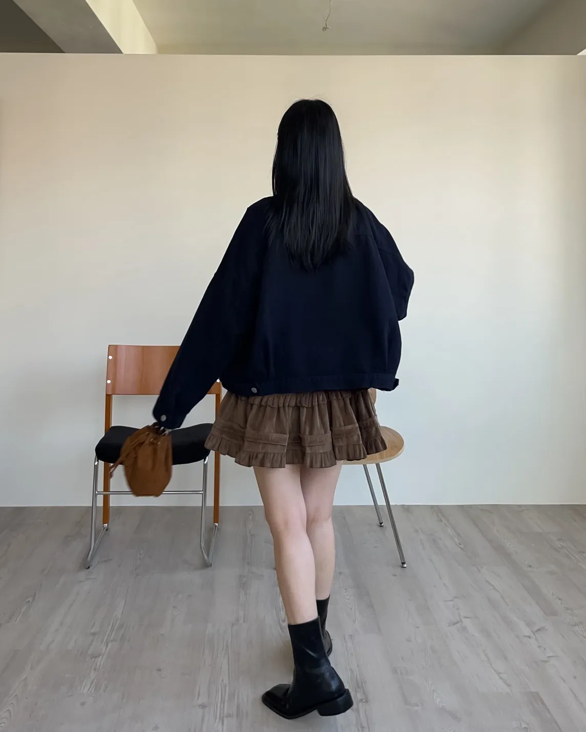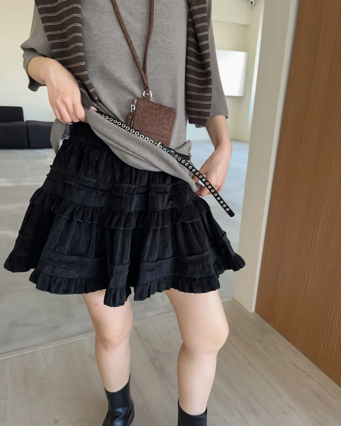 V0056芭蕾風絨絨蛋糕短裙(米白/咖啡/黑)