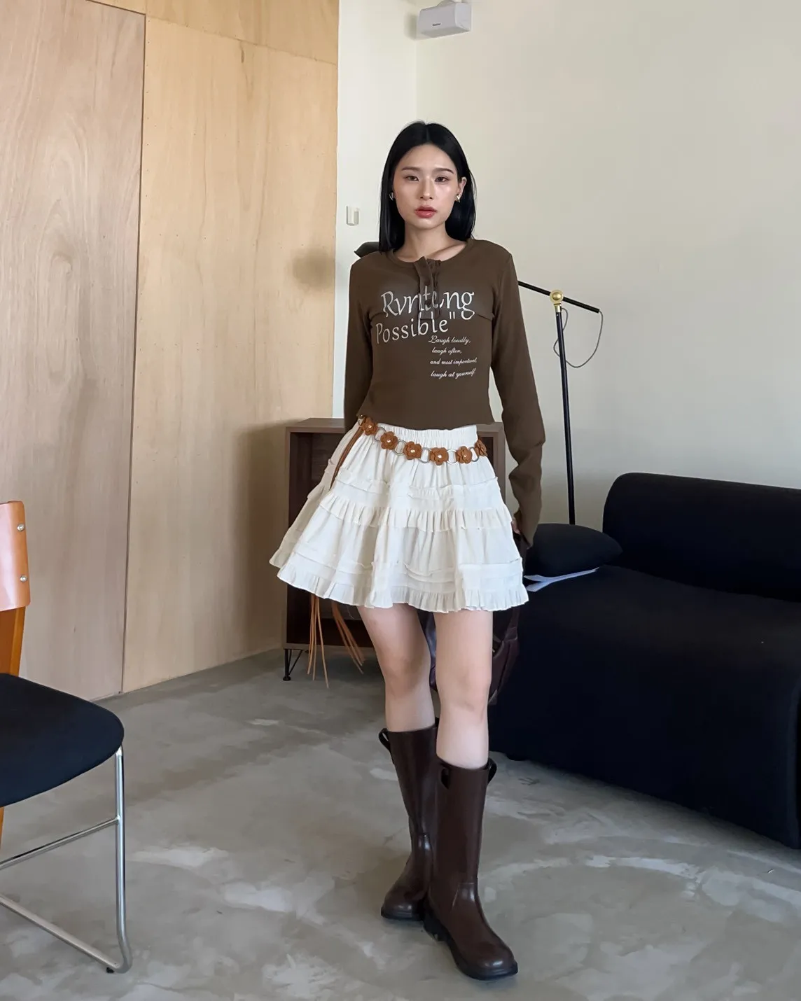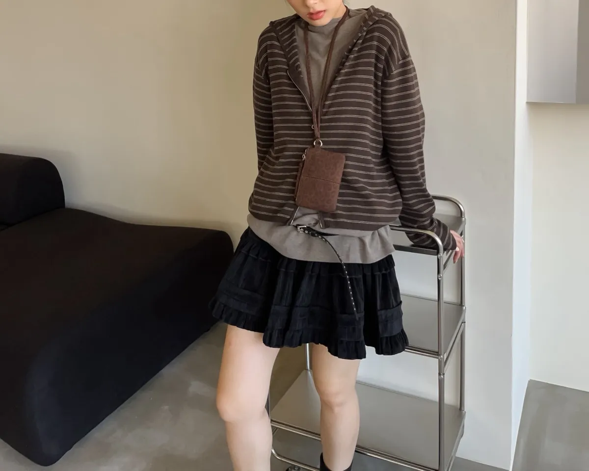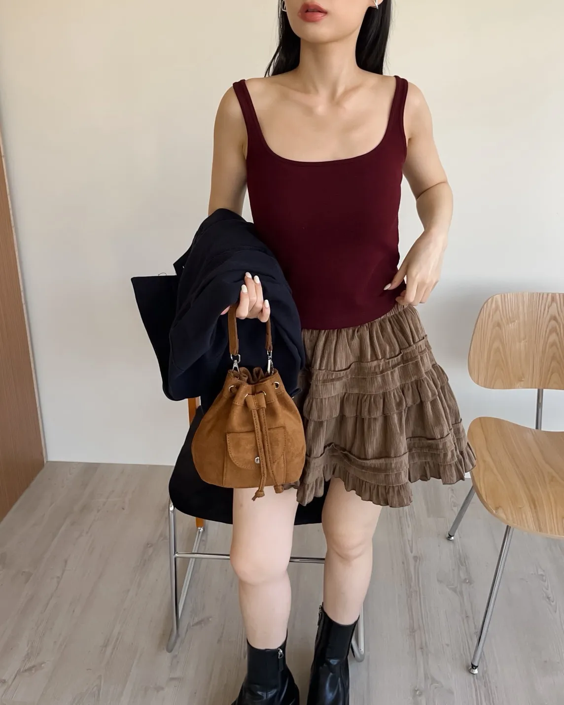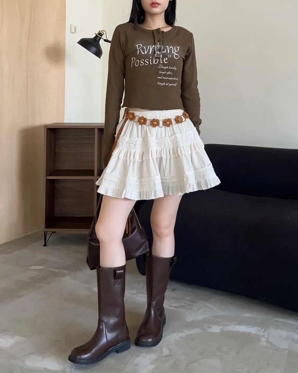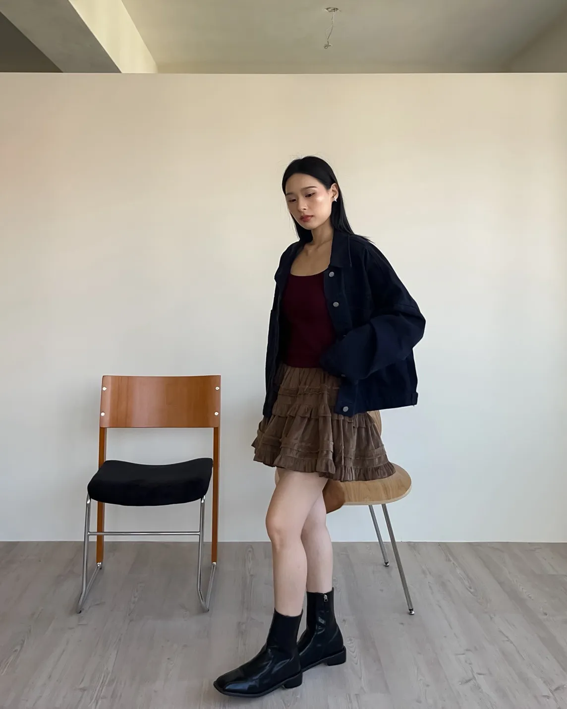 V0056芭蕾風絨絨蛋糕短裙(米白/咖啡/黑)