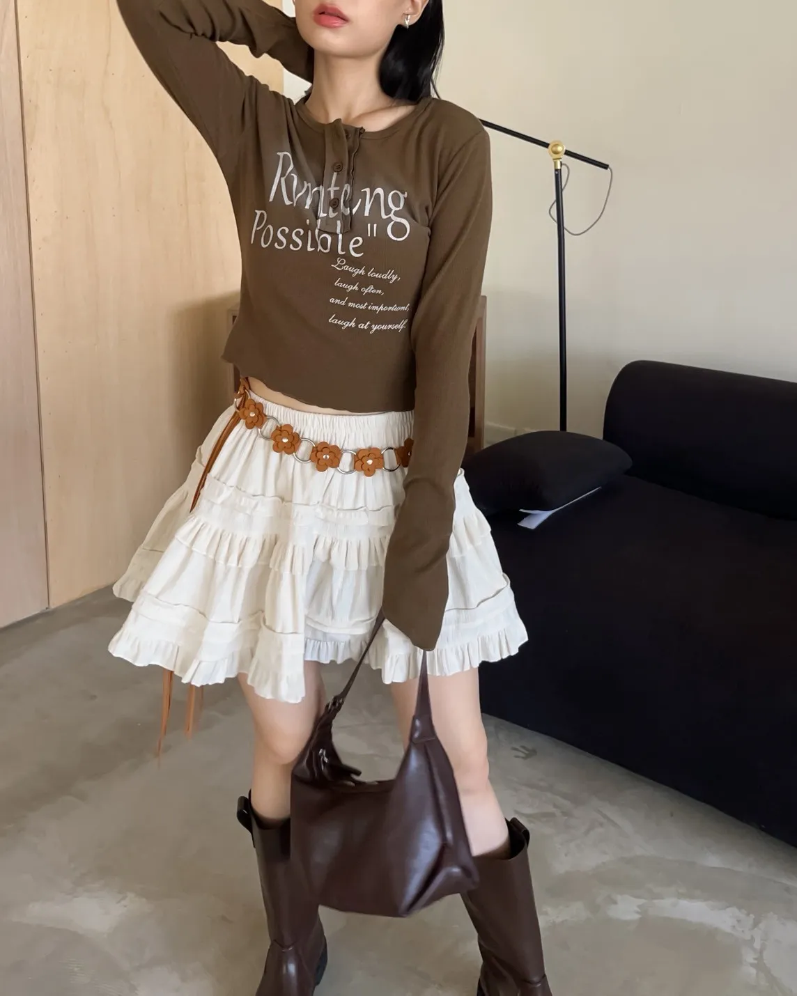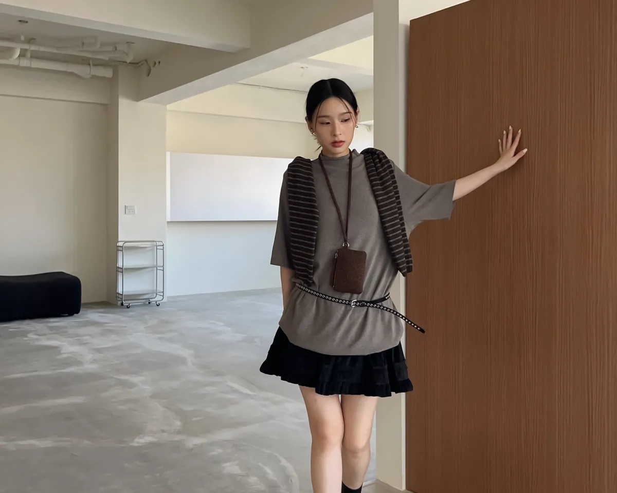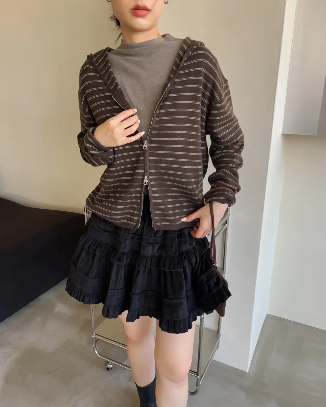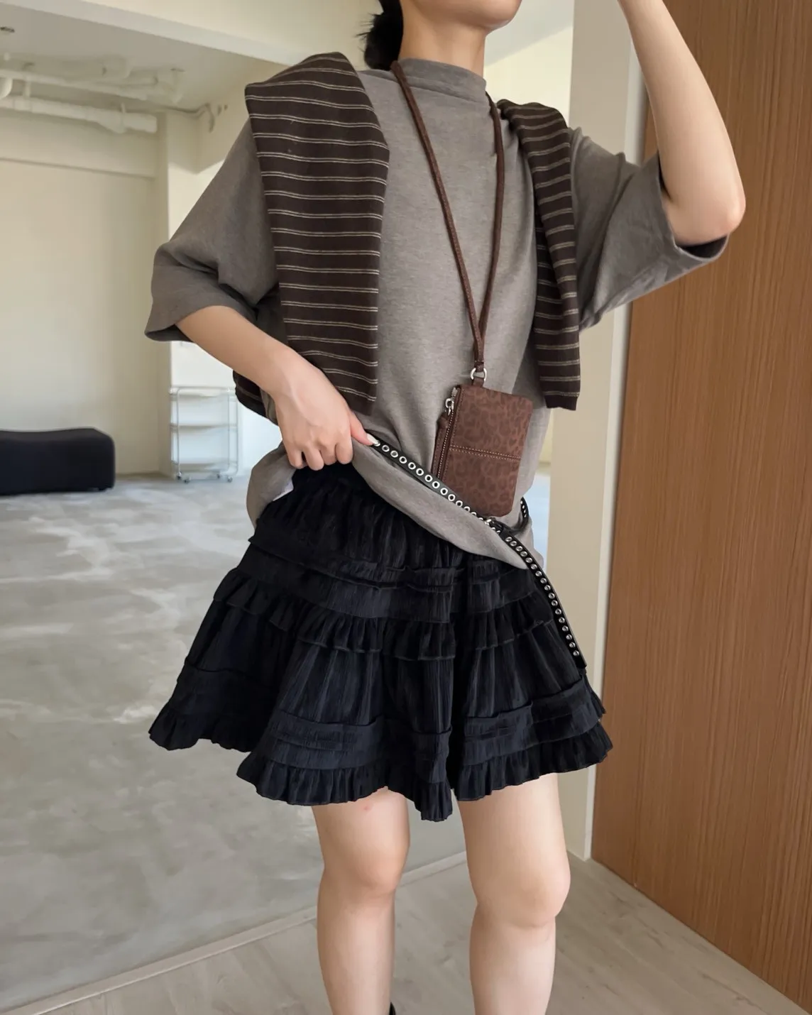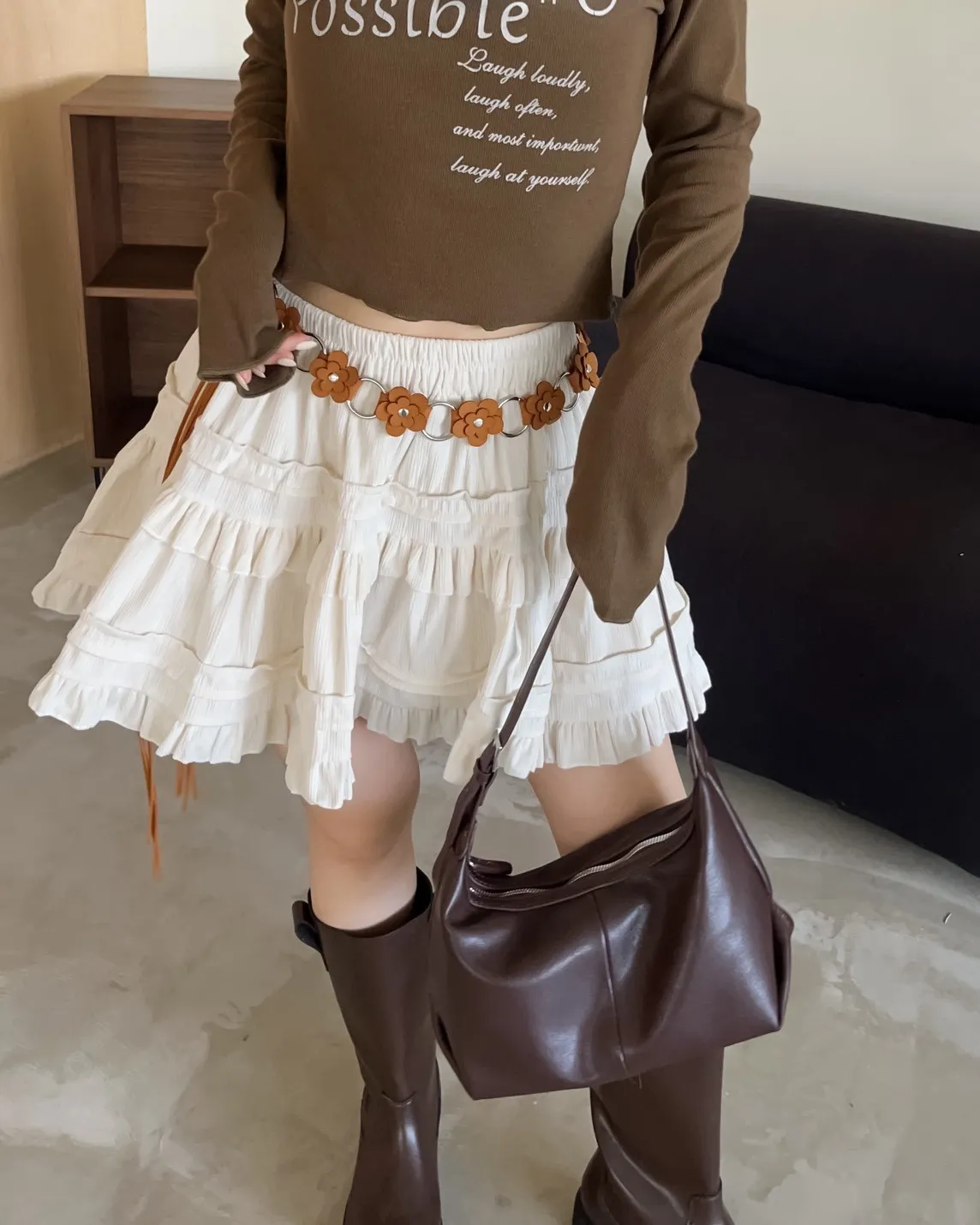 V0056芭蕾風絨絨蛋糕短裙(米白/咖啡/黑)