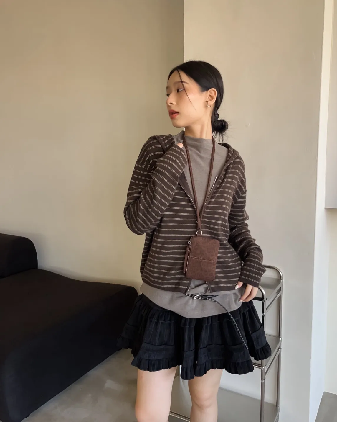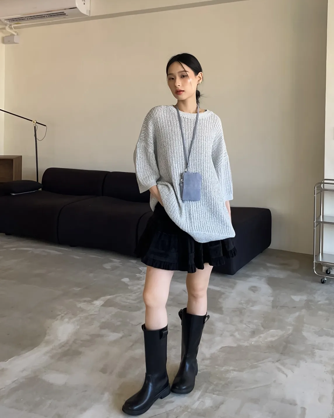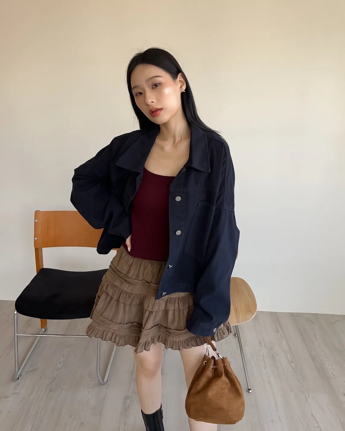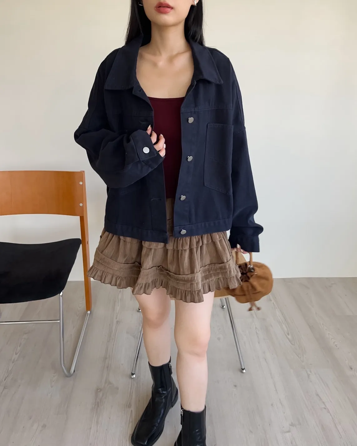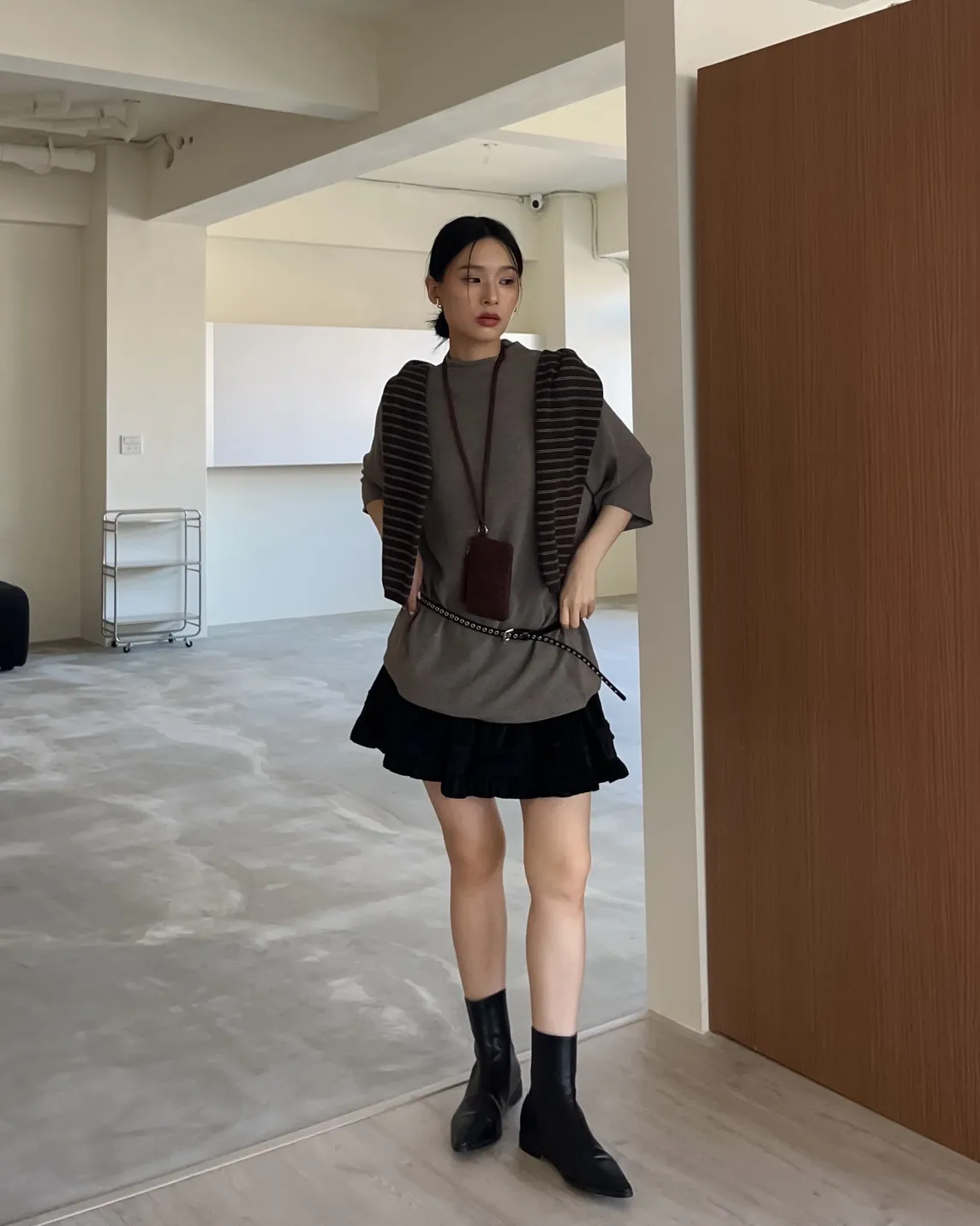 V0056芭蕾風絨絨蛋糕短裙(米白/咖啡/黑)