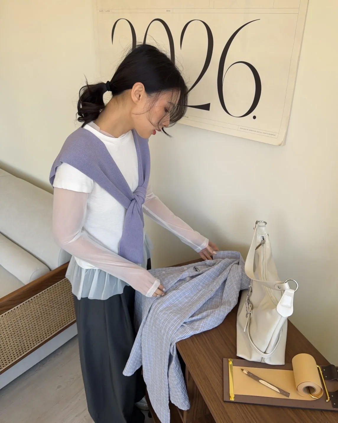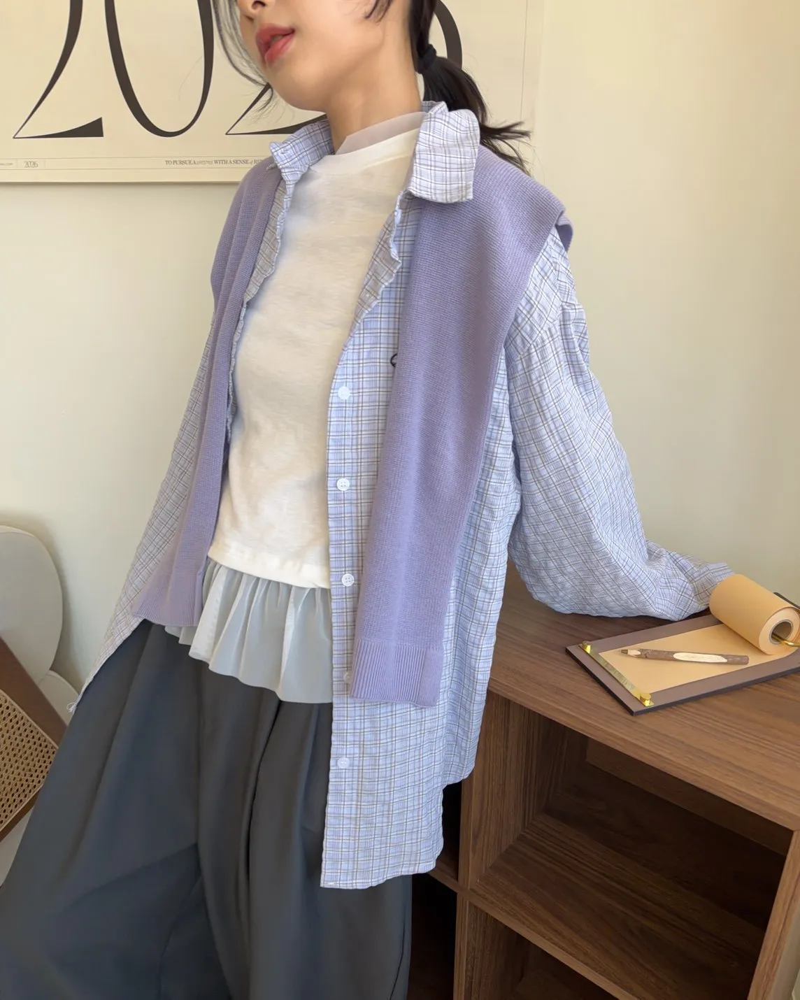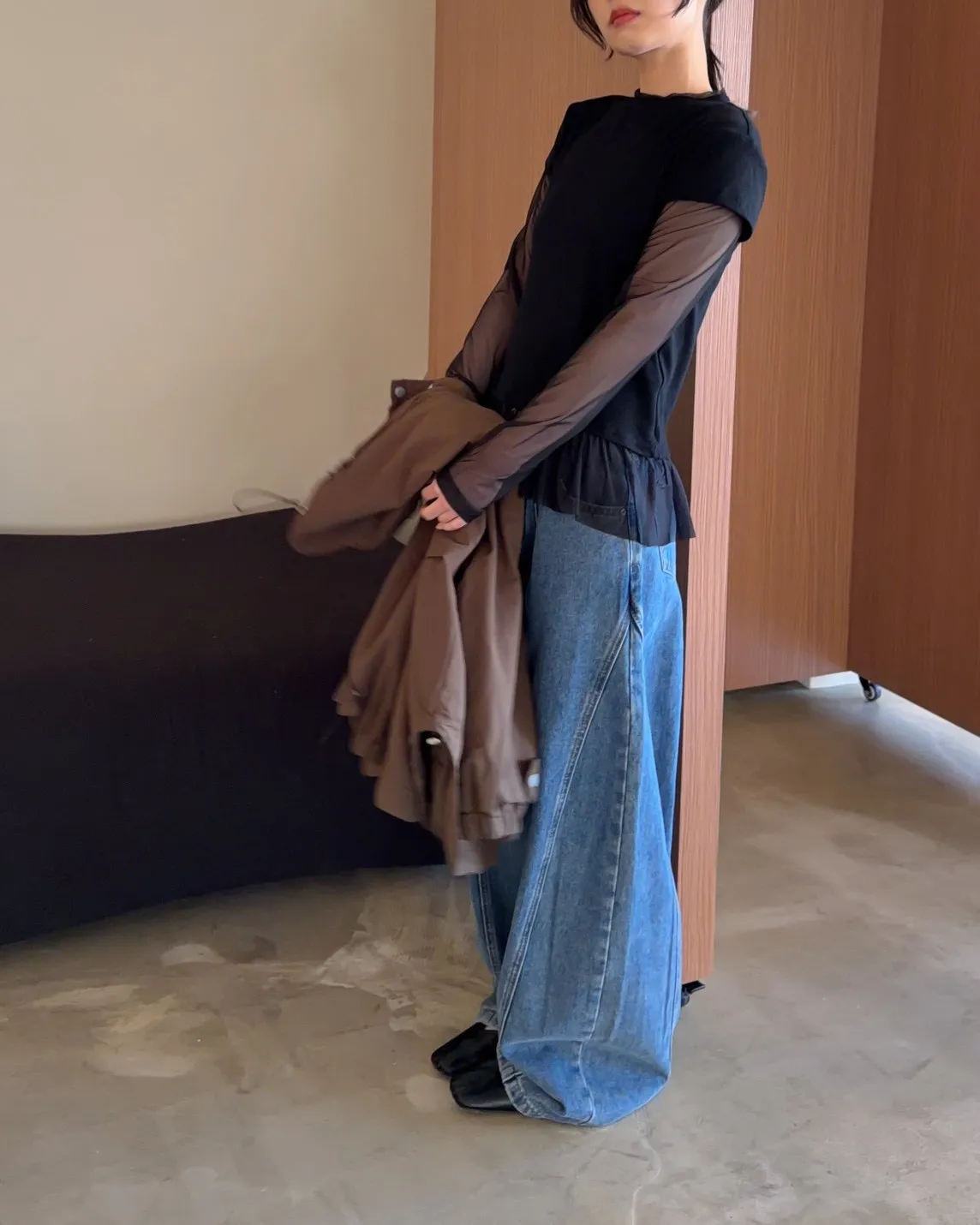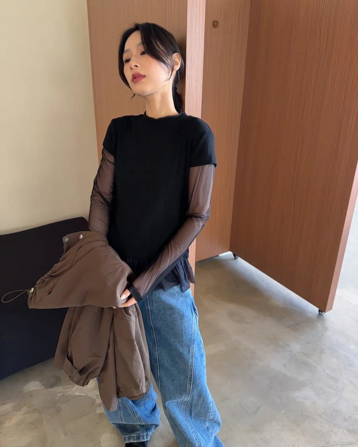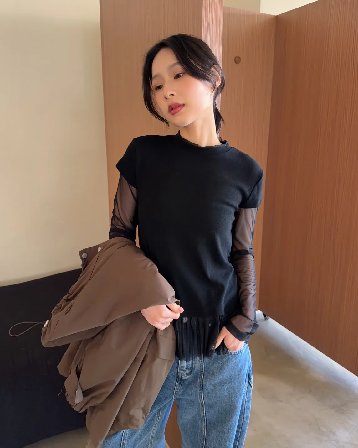 假兩件(短袖+透膚) 紗裙下擺 紋理感短袖 透膚長袖 不用疊搭就有層次感