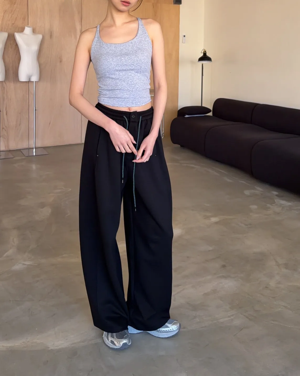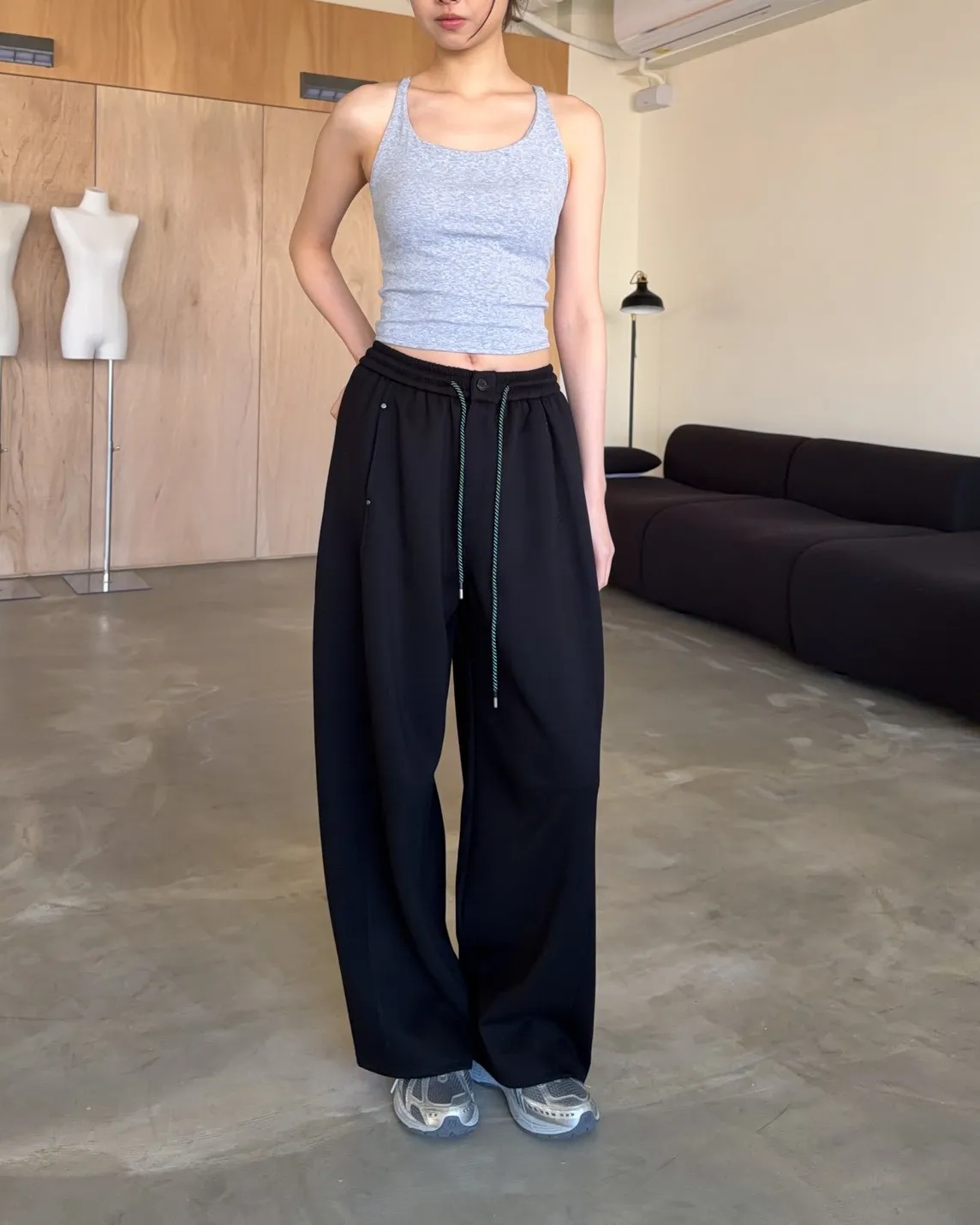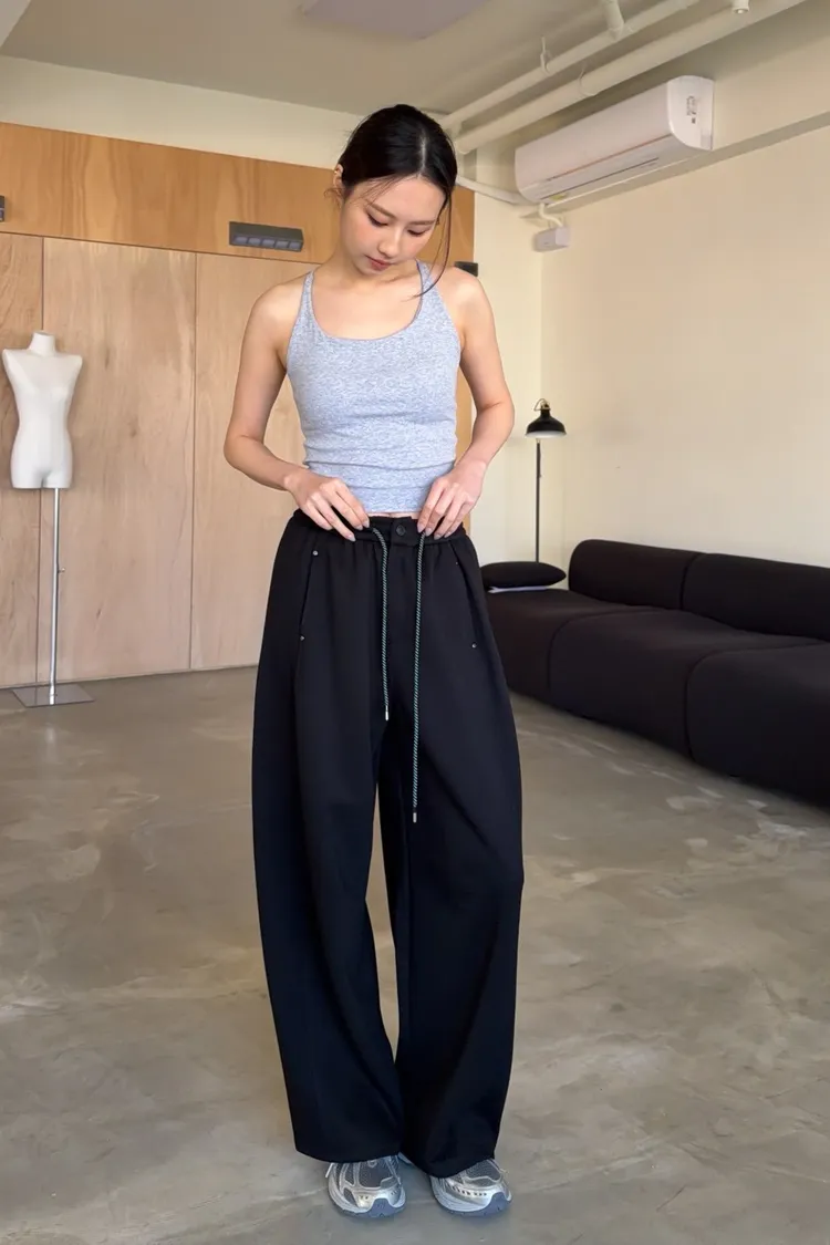 A0054慢悠悠抽繩鬆緊棉褲(售完不補)(米/灰/黑)