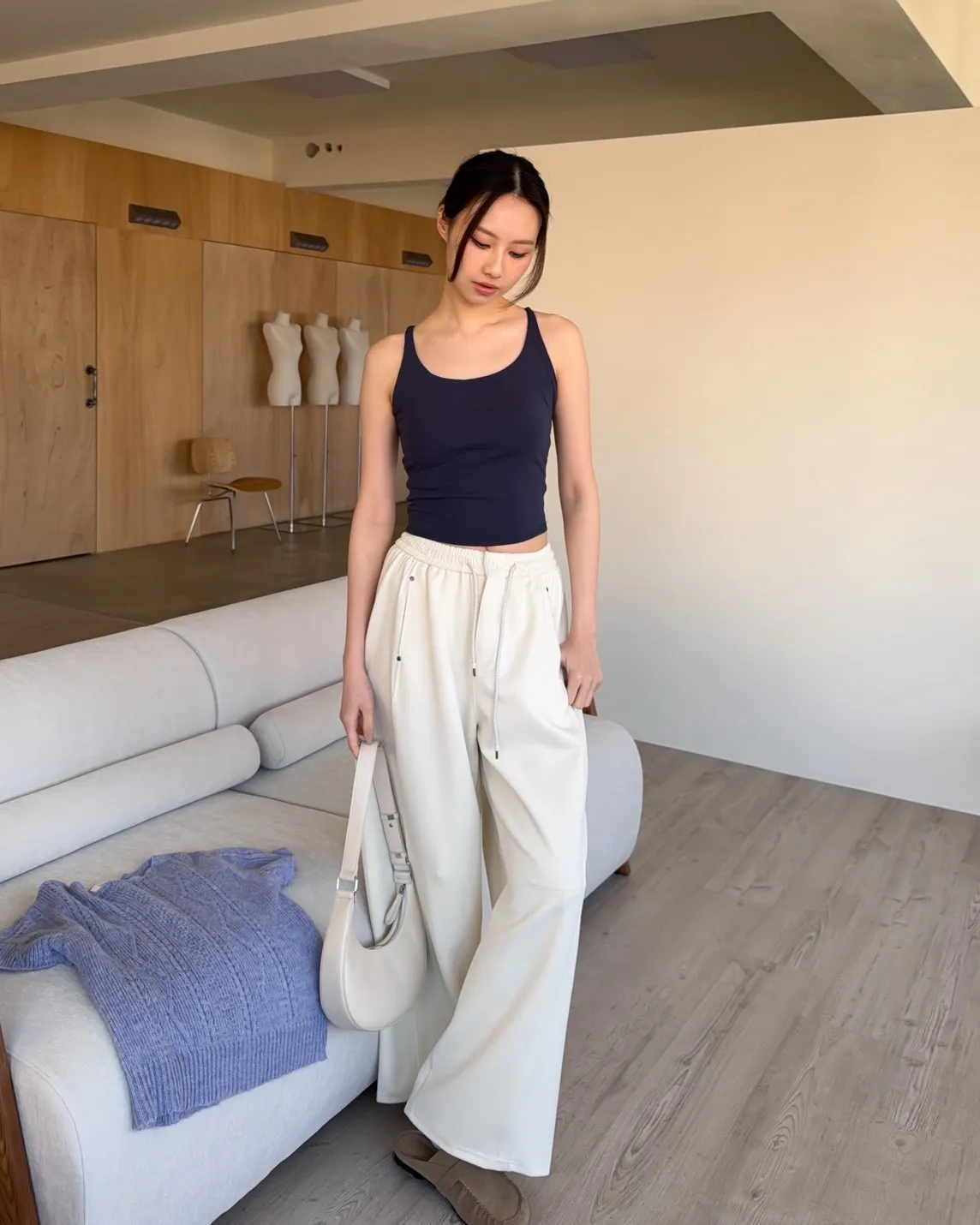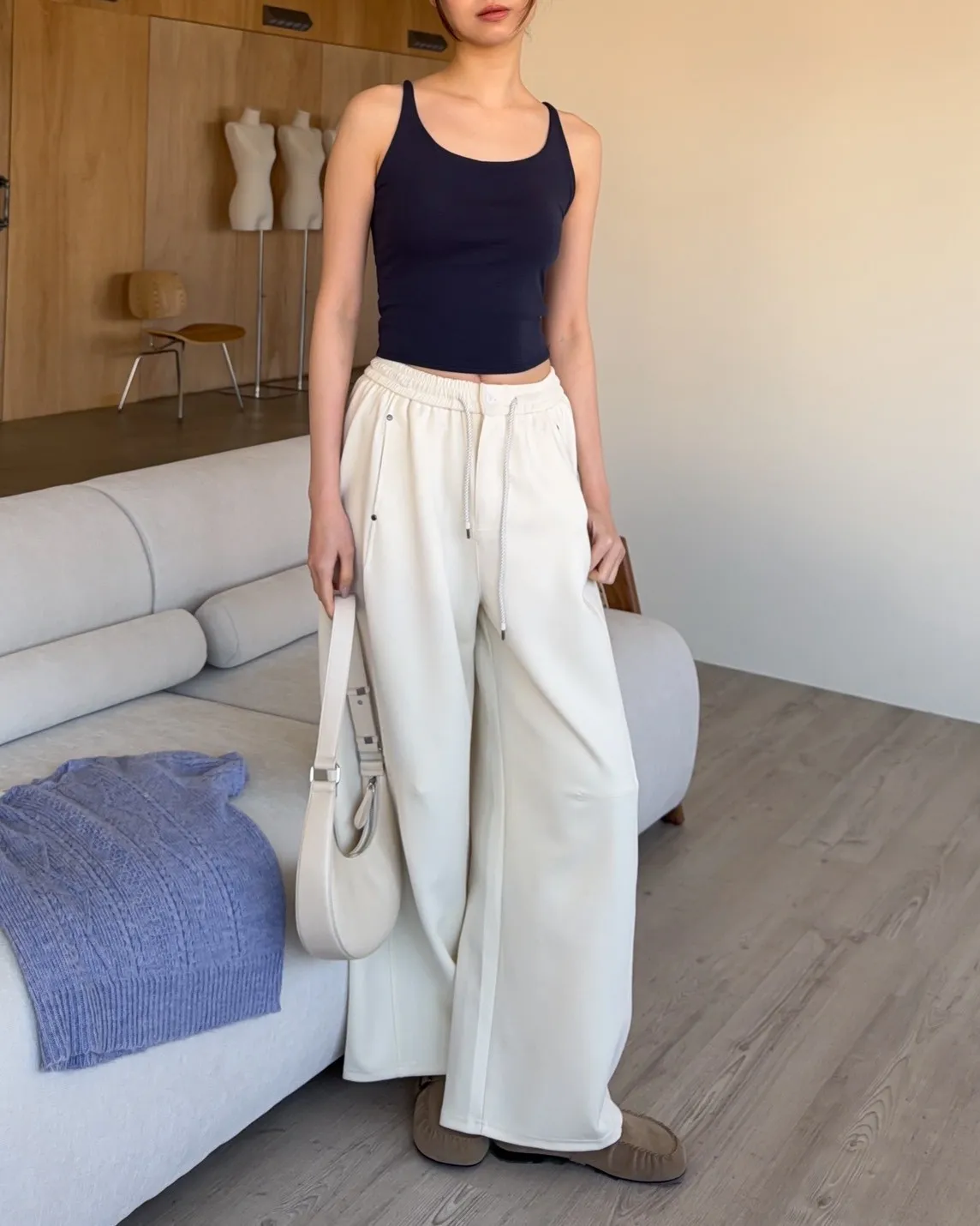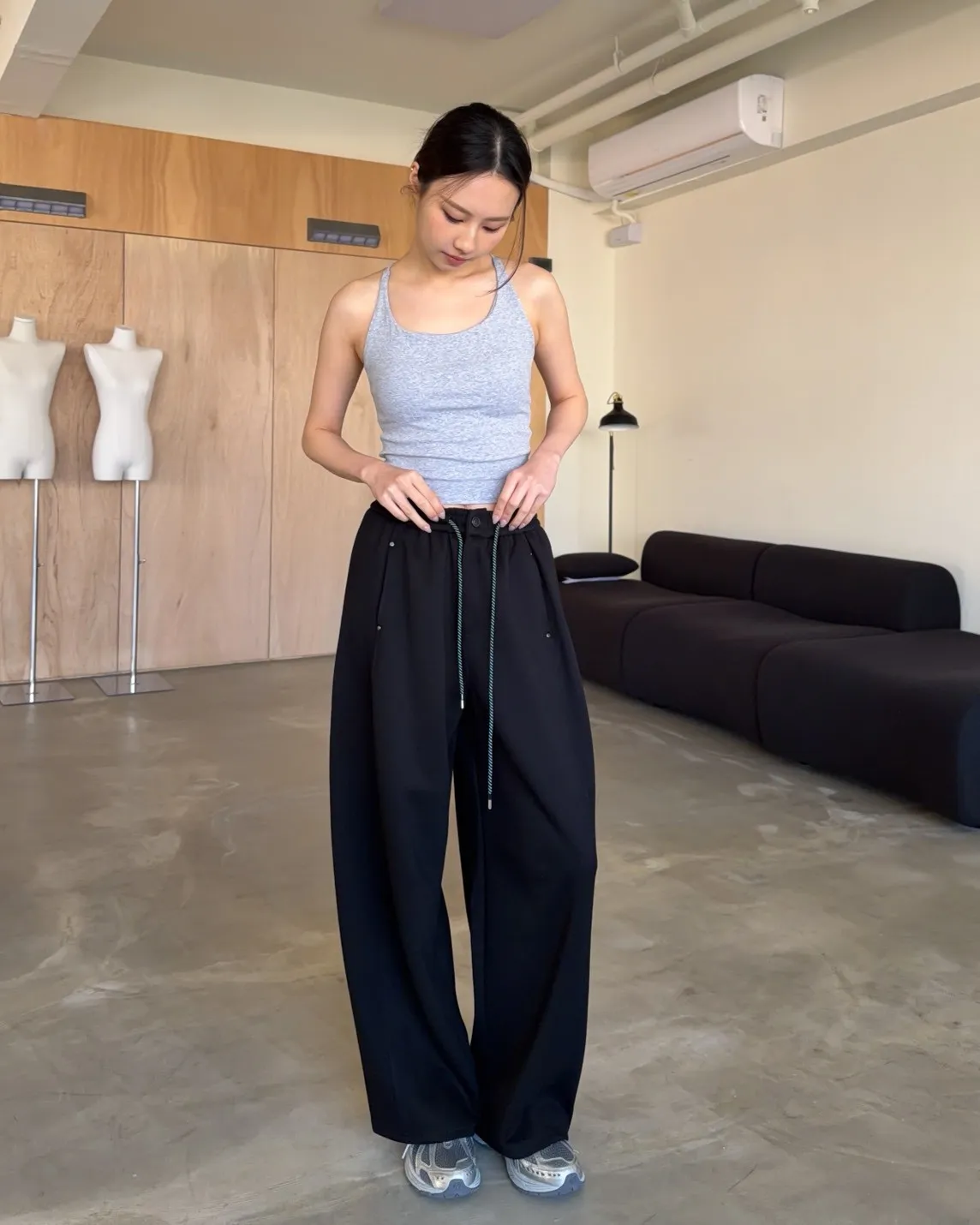 A0054慢悠悠抽繩鬆緊棉褲(售完不補)(米/灰/黑)