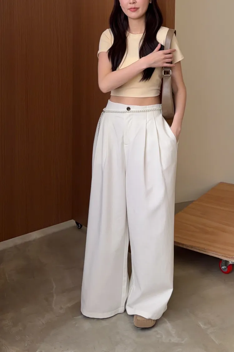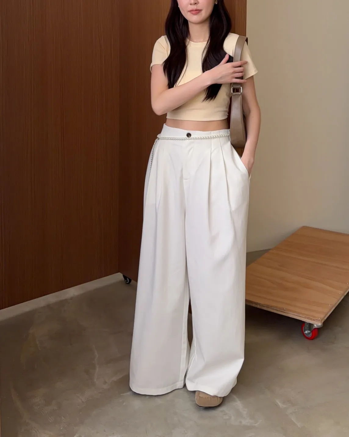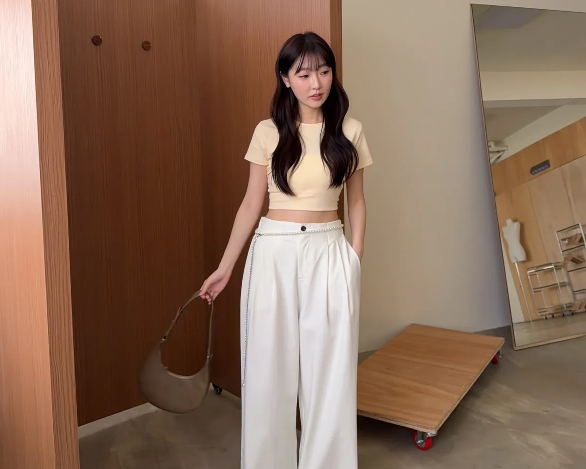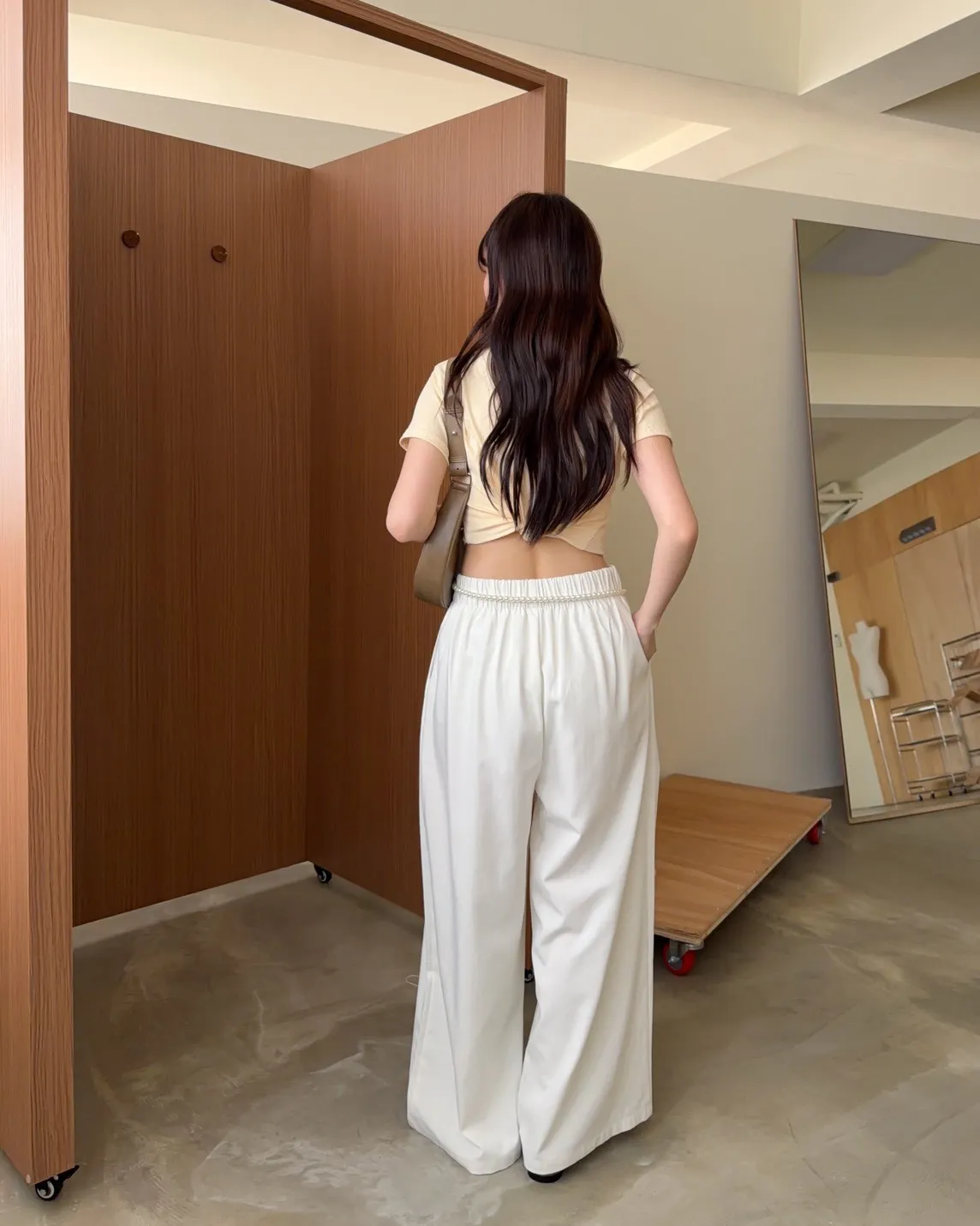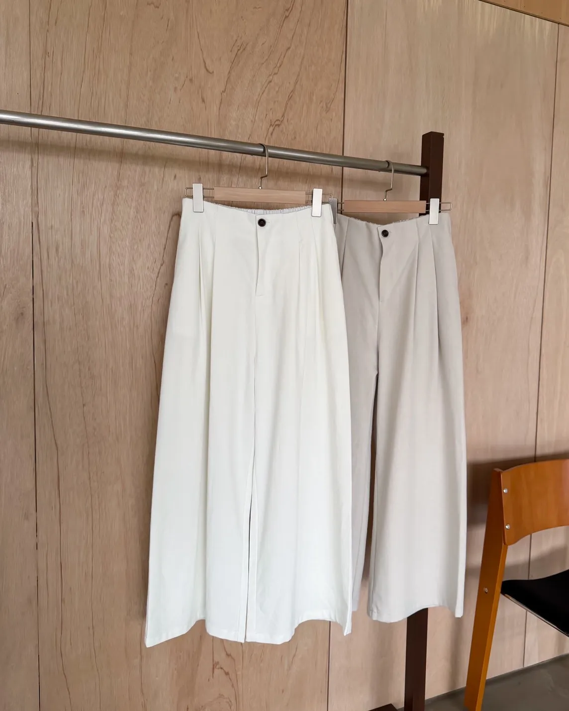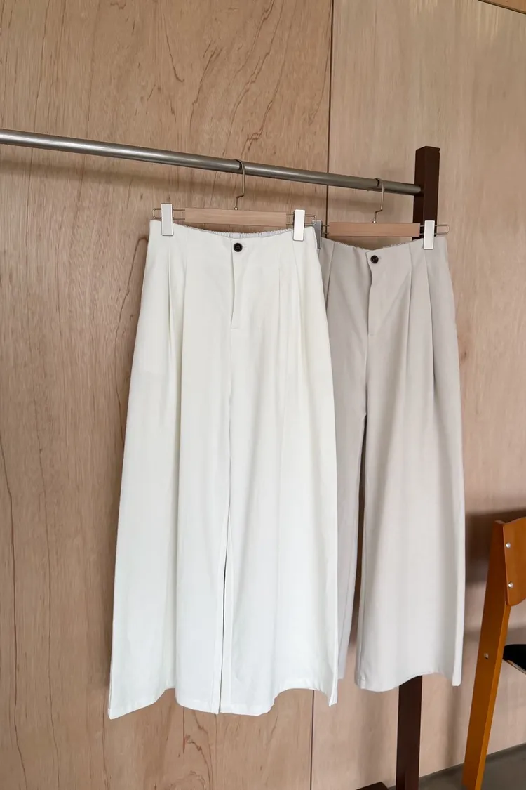 B0063卡哇伊鈕扣打折寬寬褲(白/杏)