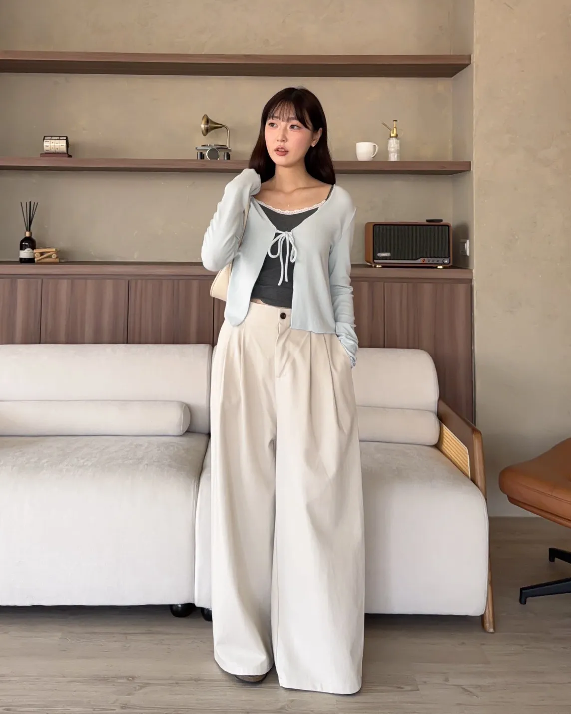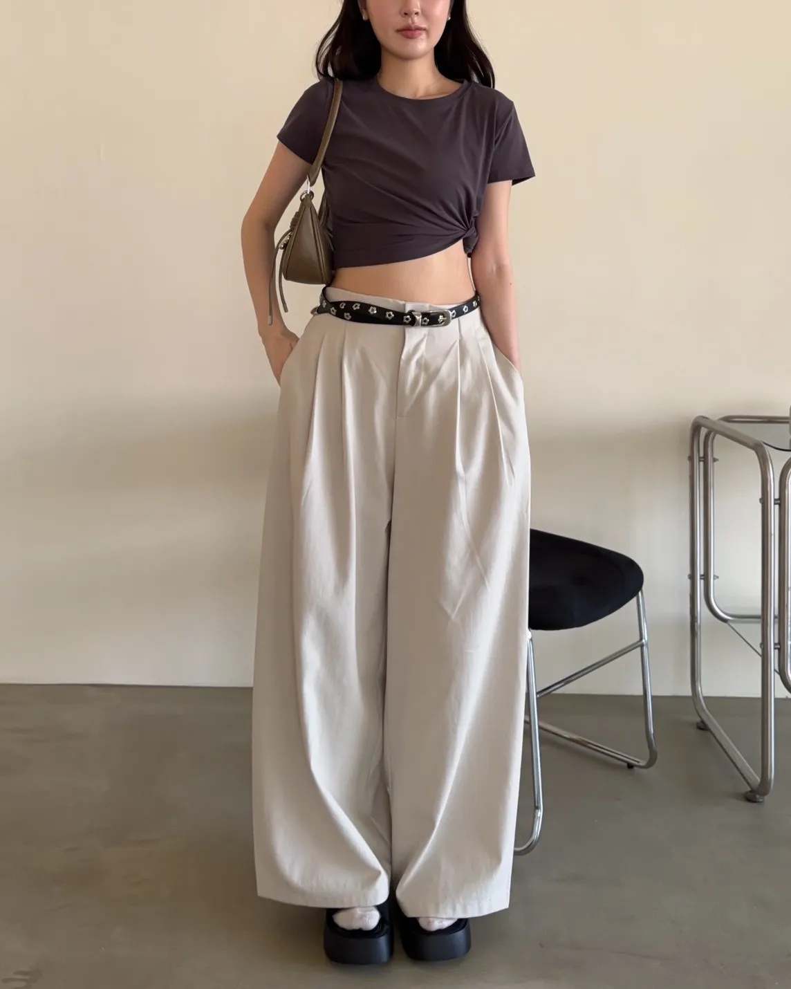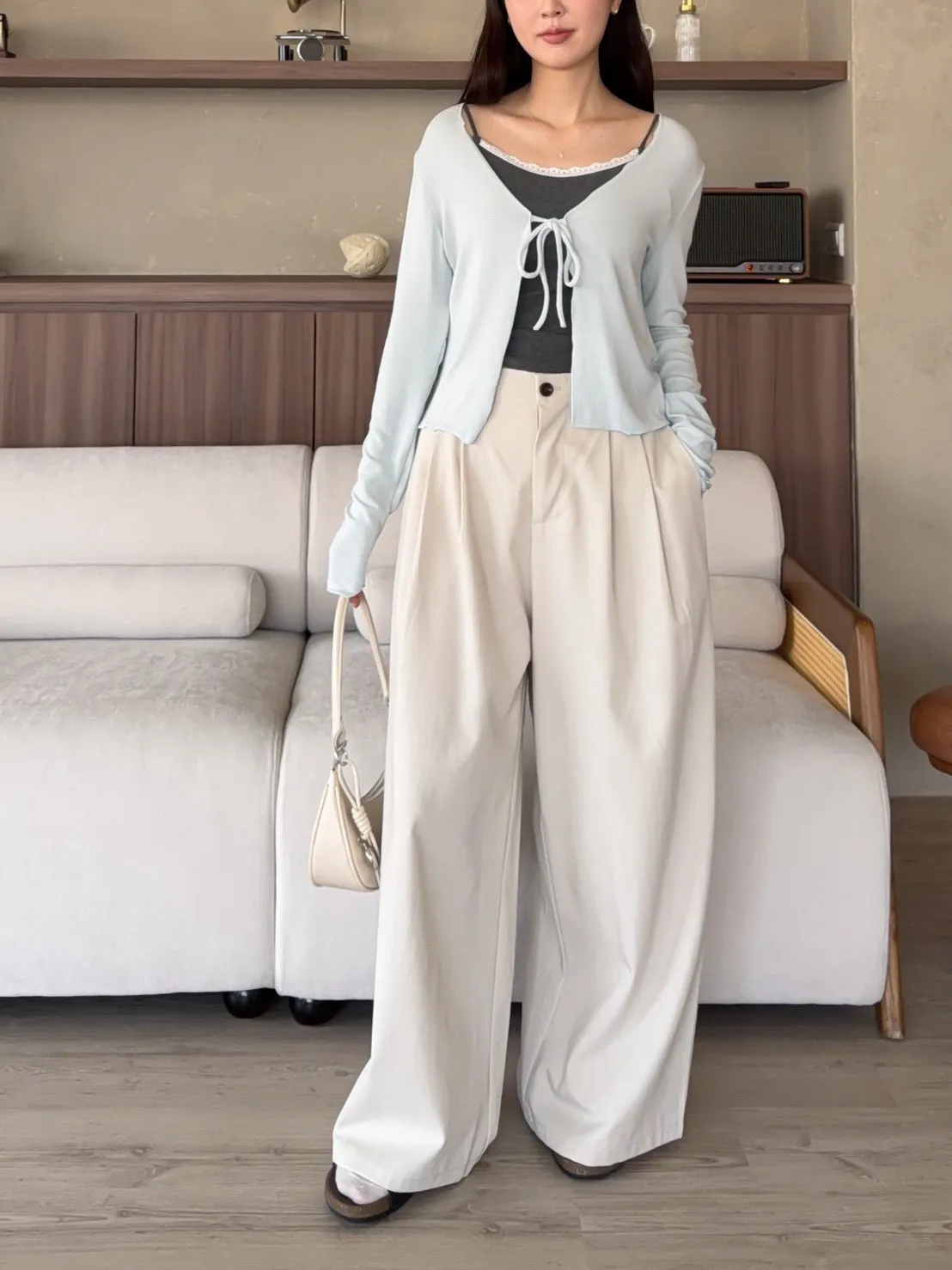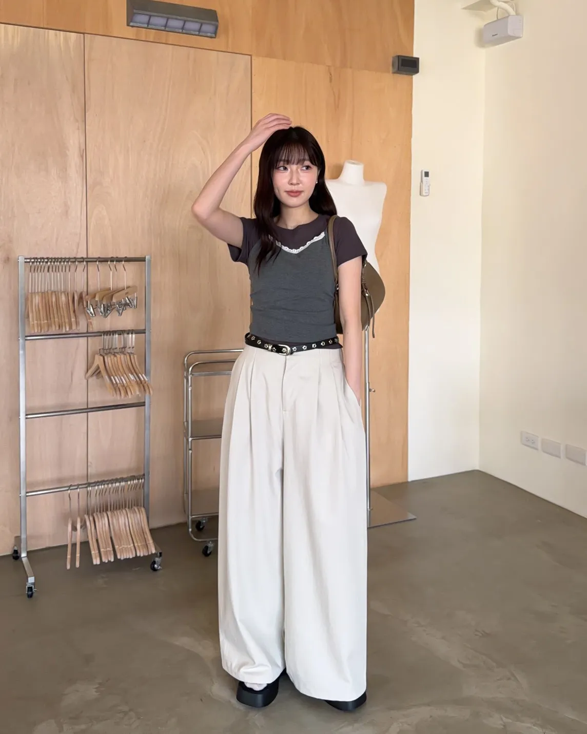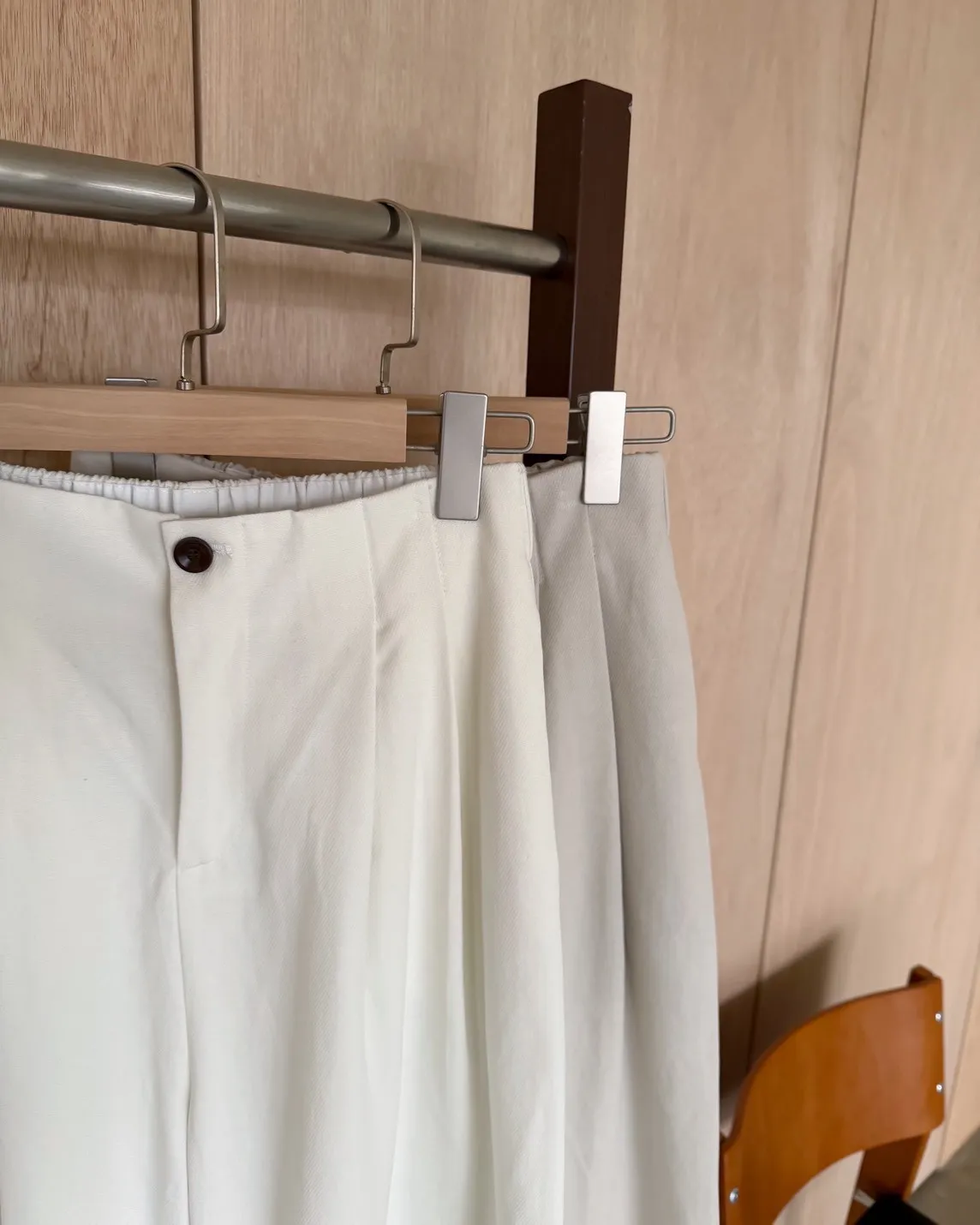 B0063卡哇伊鈕扣打折寬寬褲(白/杏)