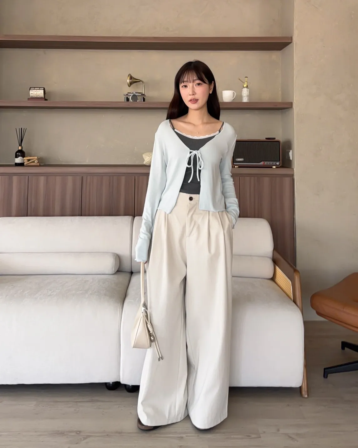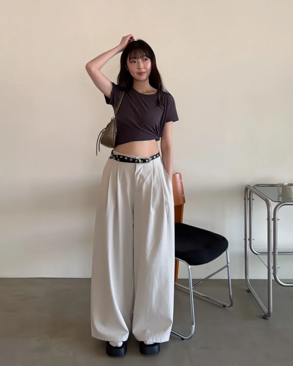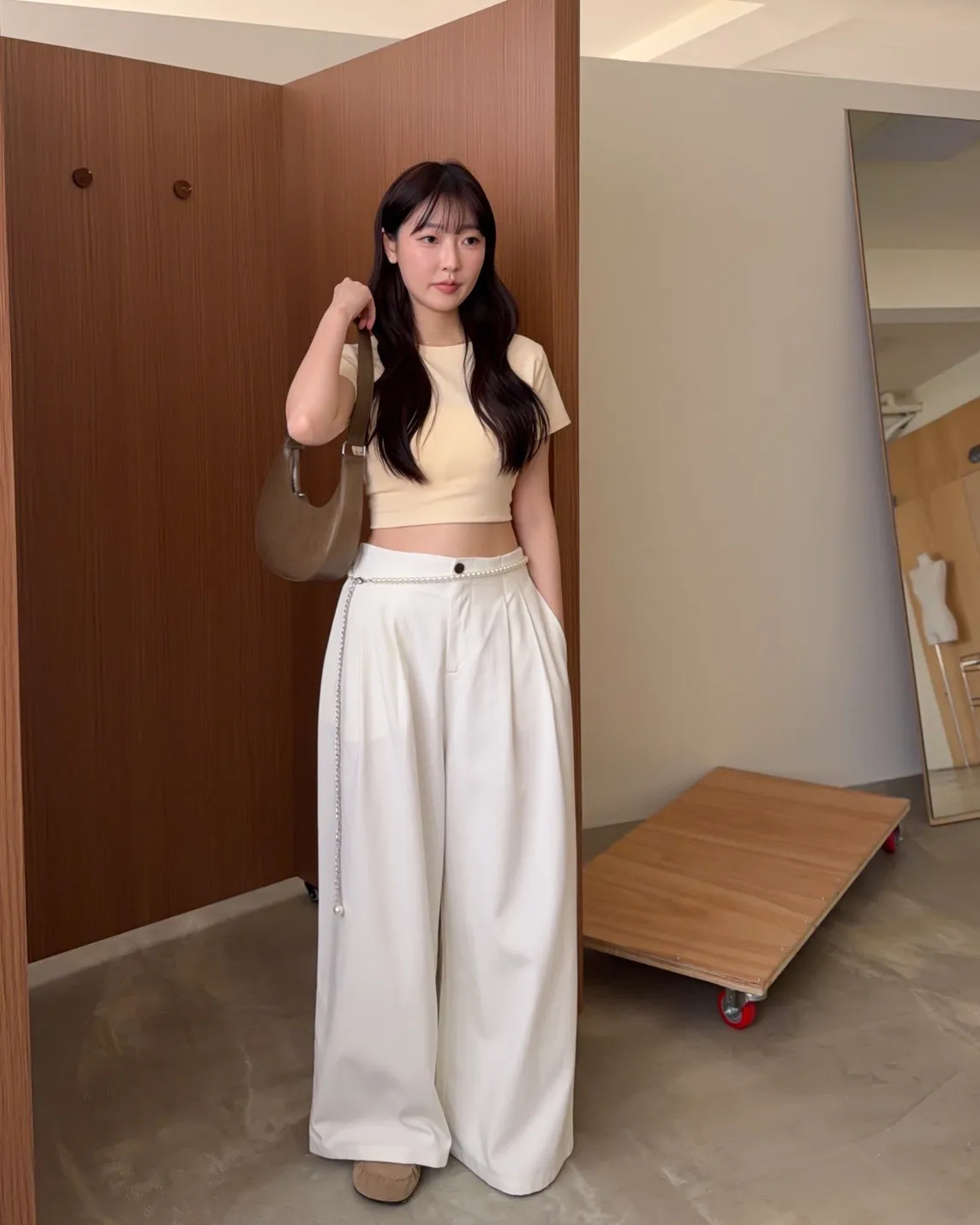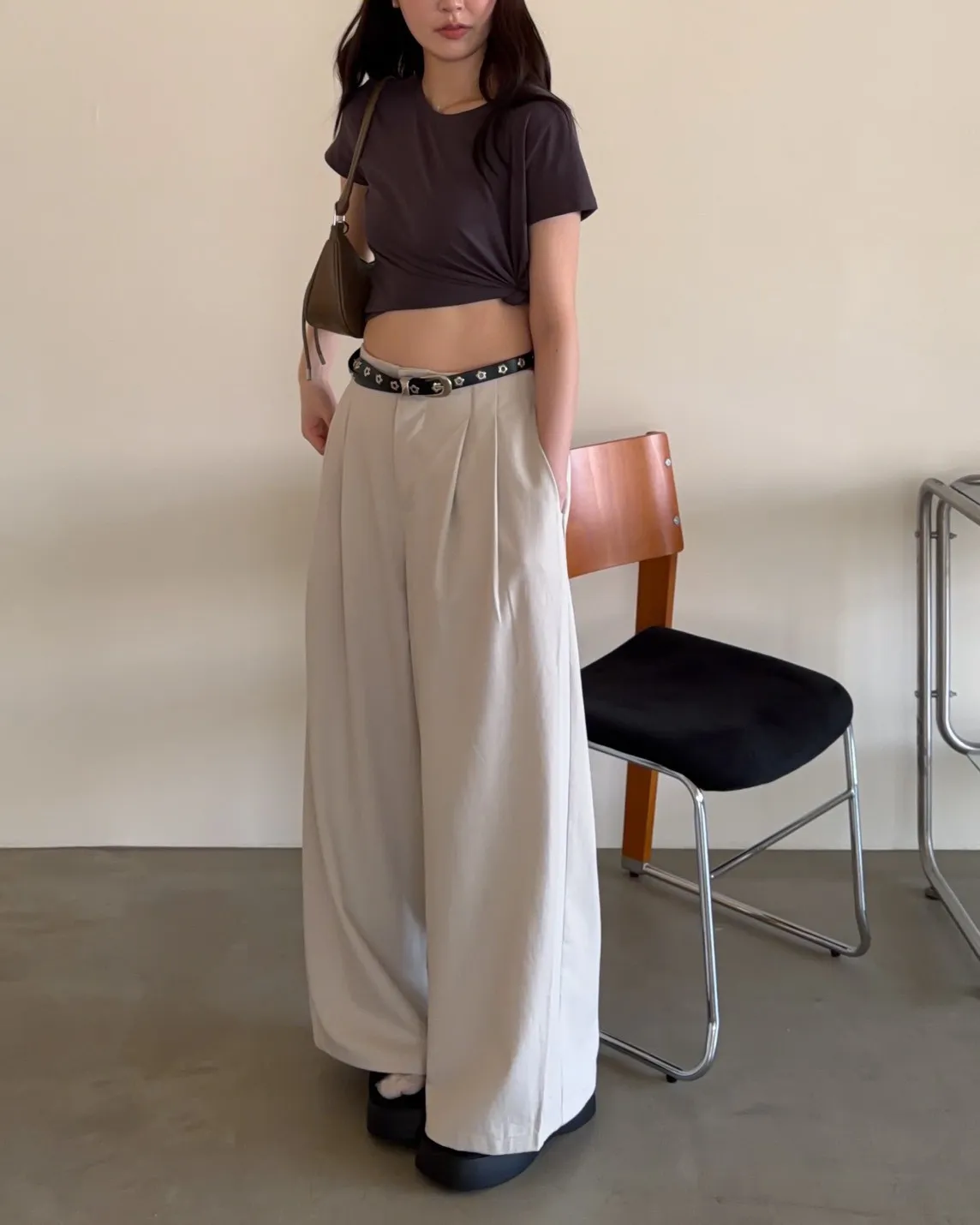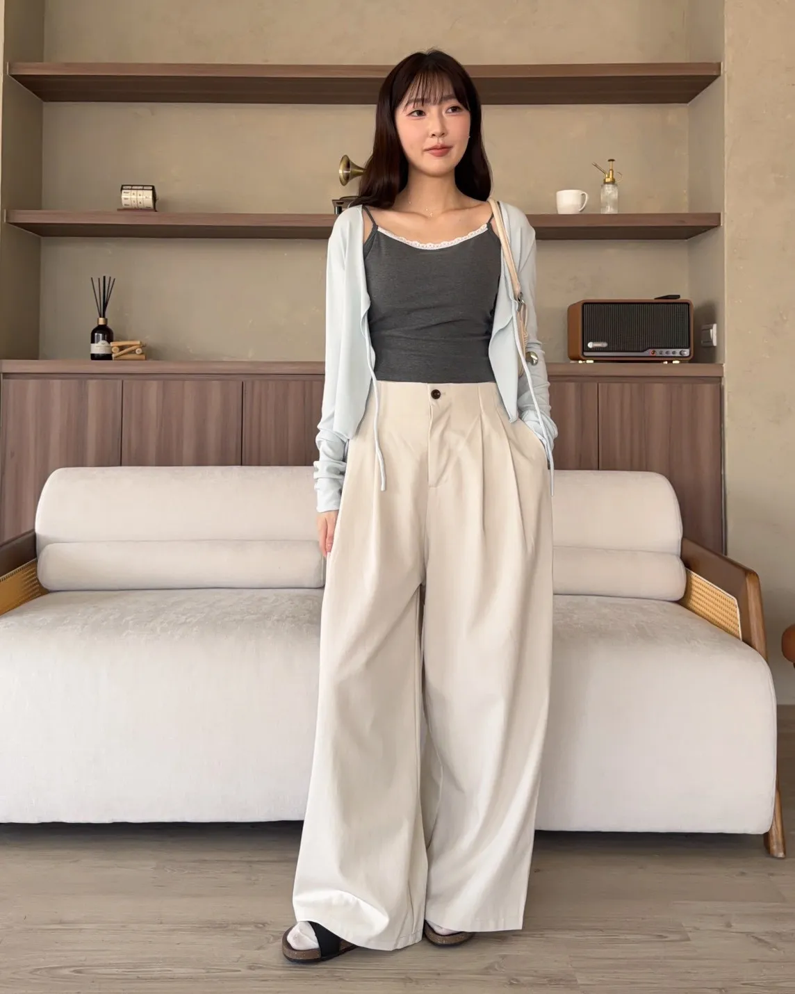 B0063卡哇伊鈕扣打折寬寬褲(白/杏)