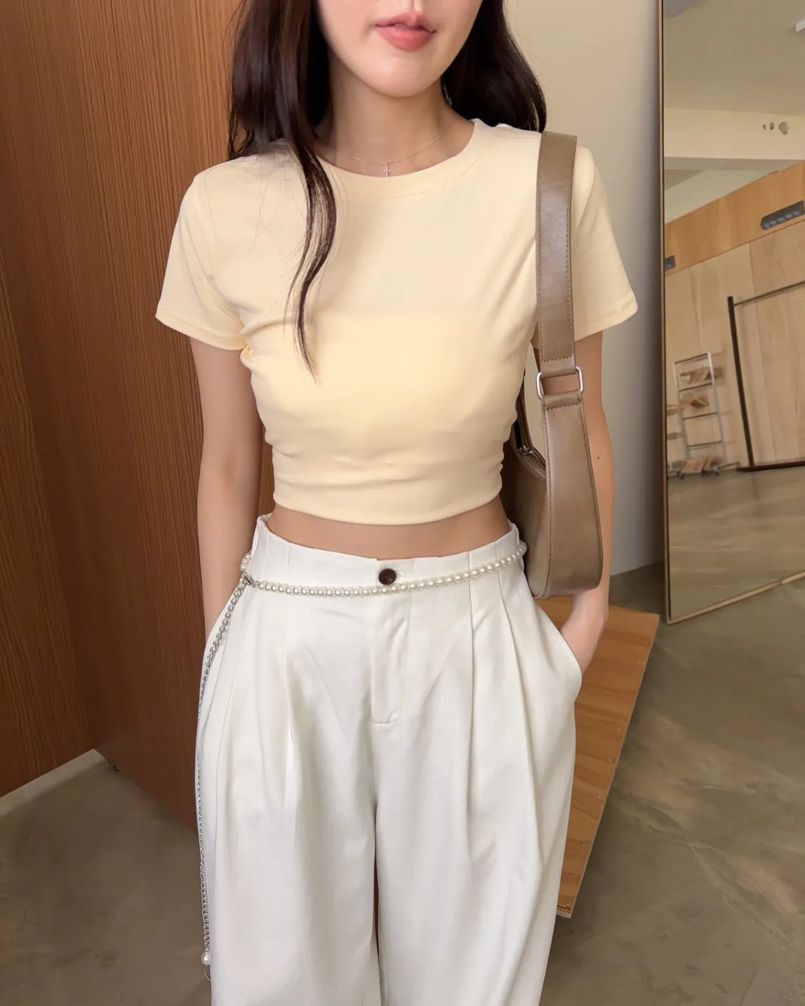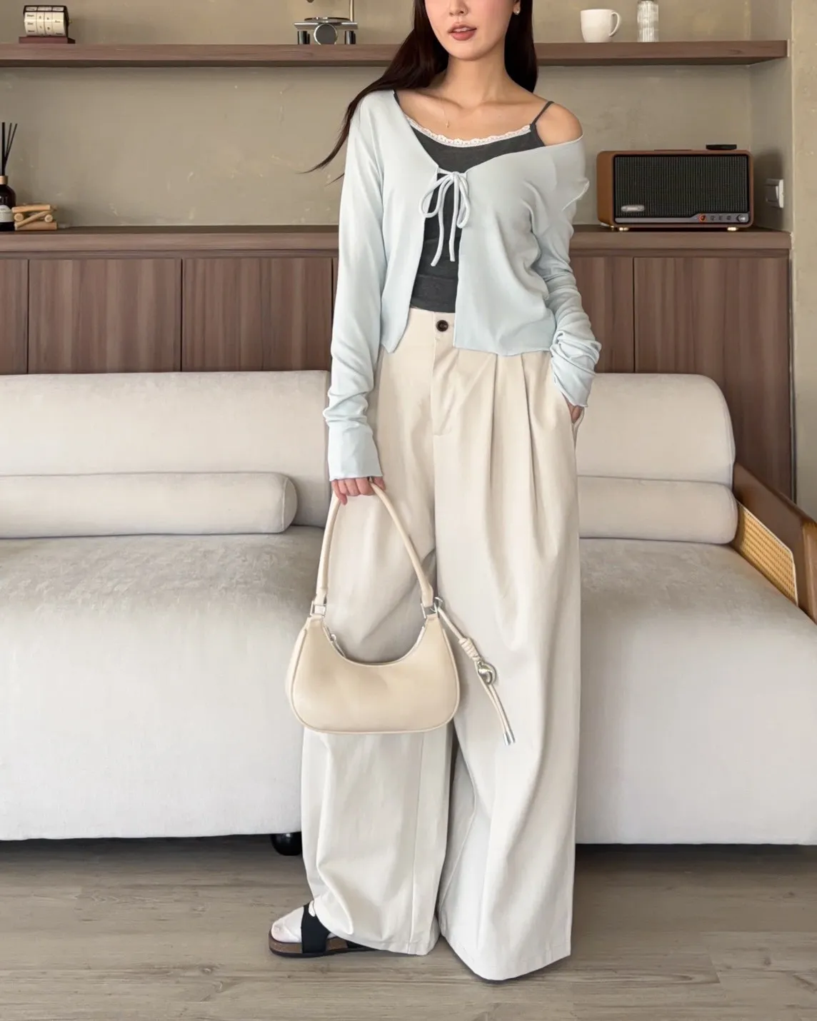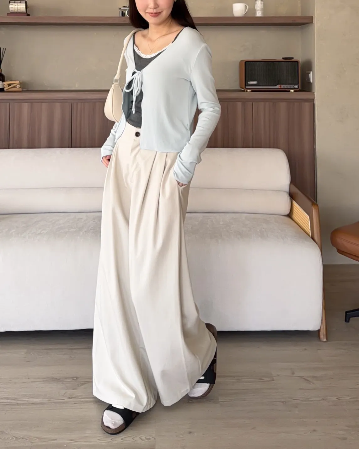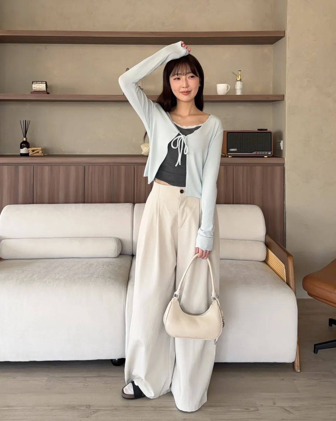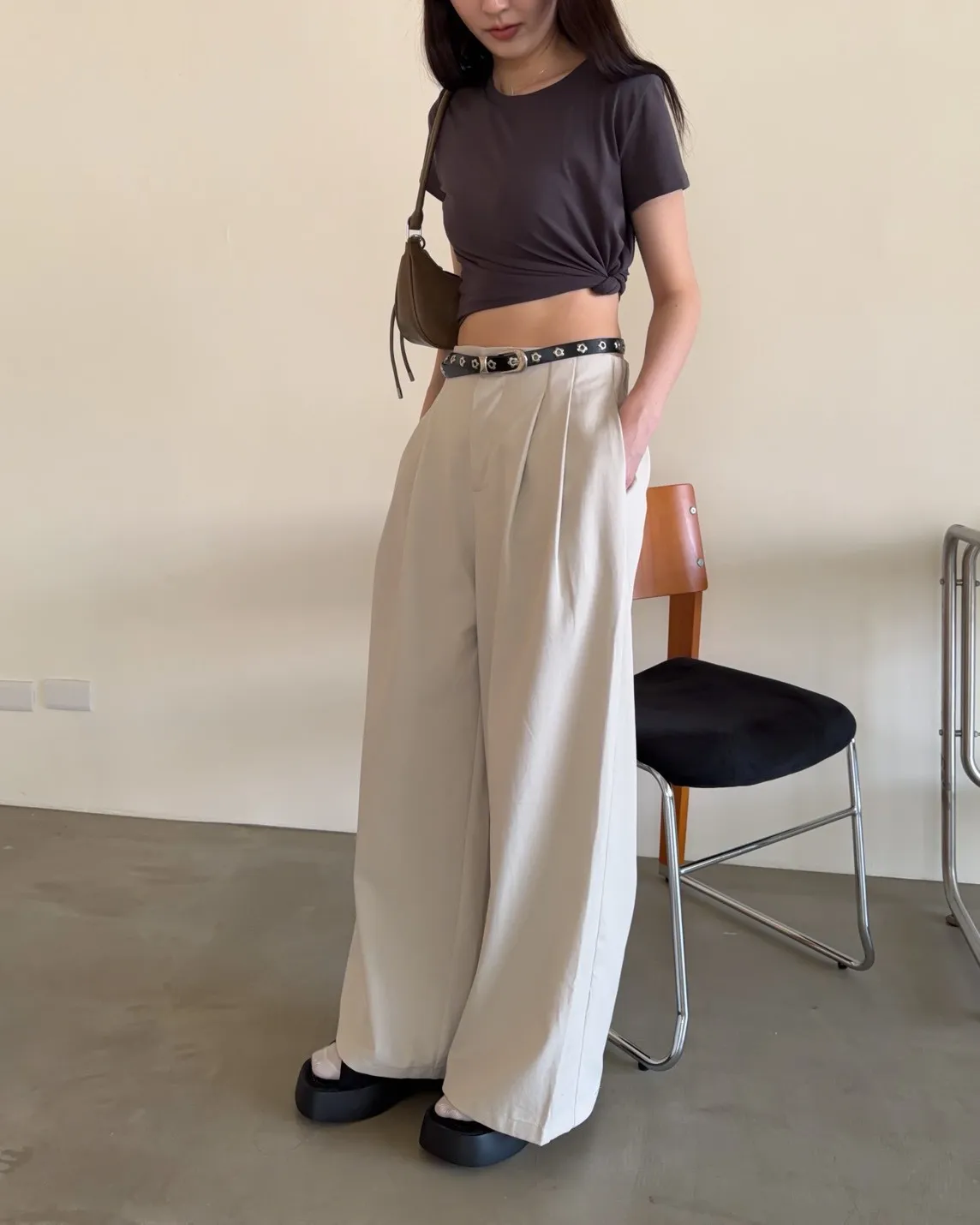 B0063卡哇伊鈕扣打折寬寬褲(白/杏)