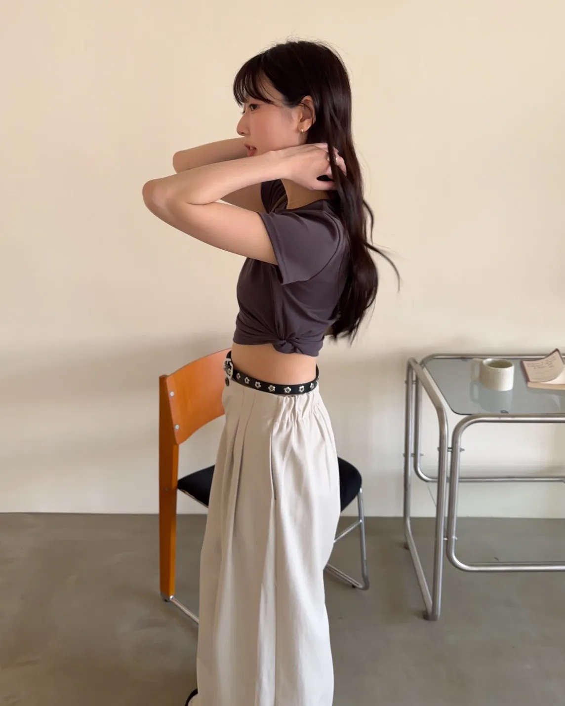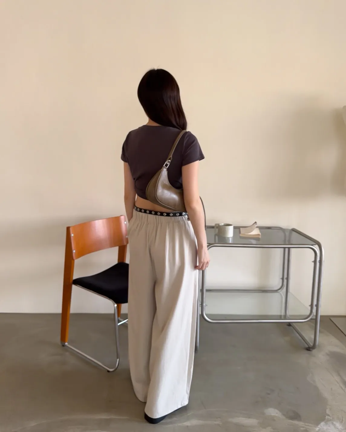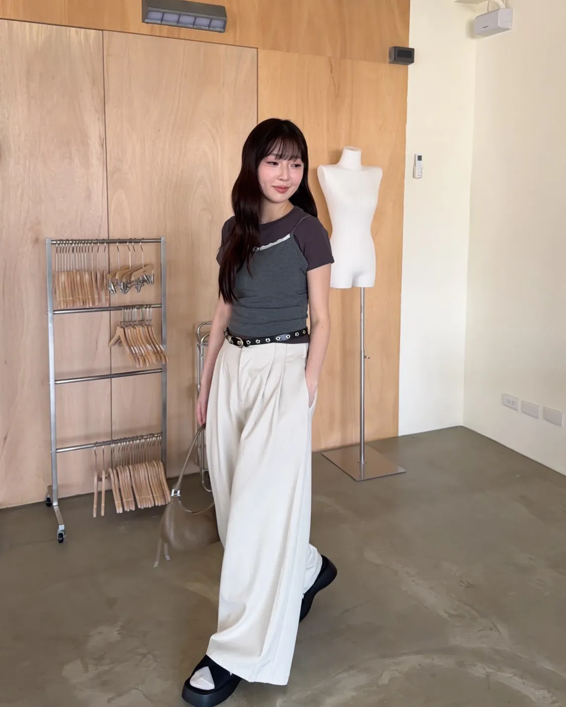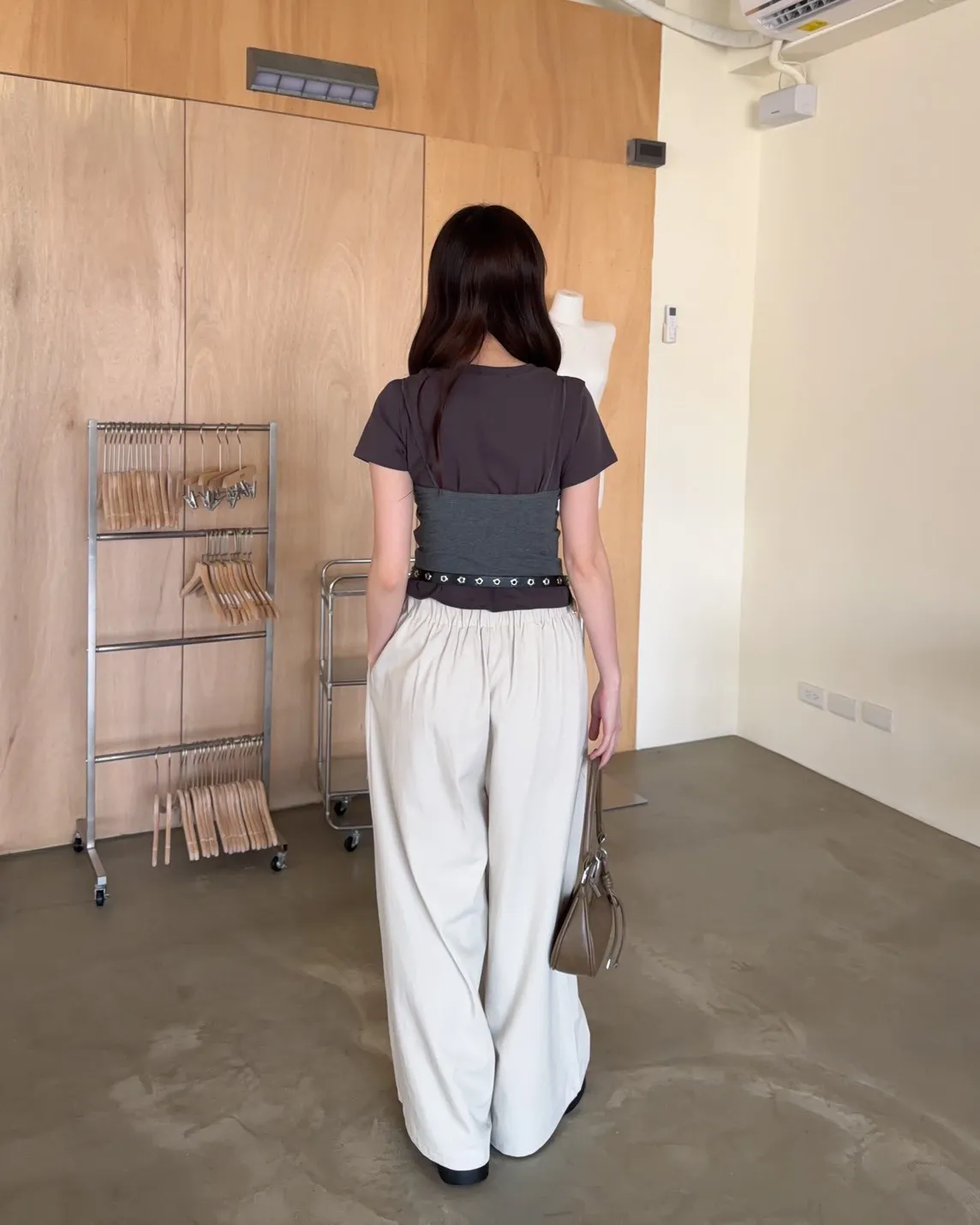 後鬆緊 建議尺寸S-大M小L 兩側口袋 前打折 寬版 挺挺布料