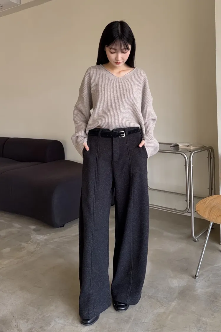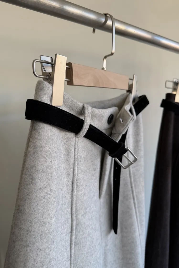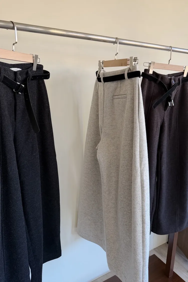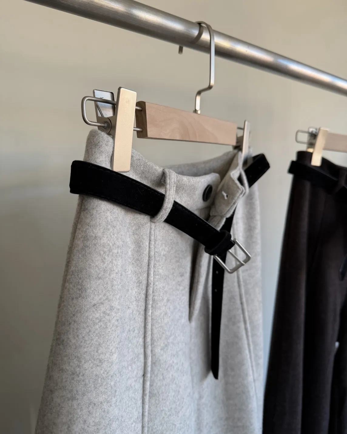 版型正常 附皮帶 兩側口袋 車線造型 厚毛呢 彎刀版型