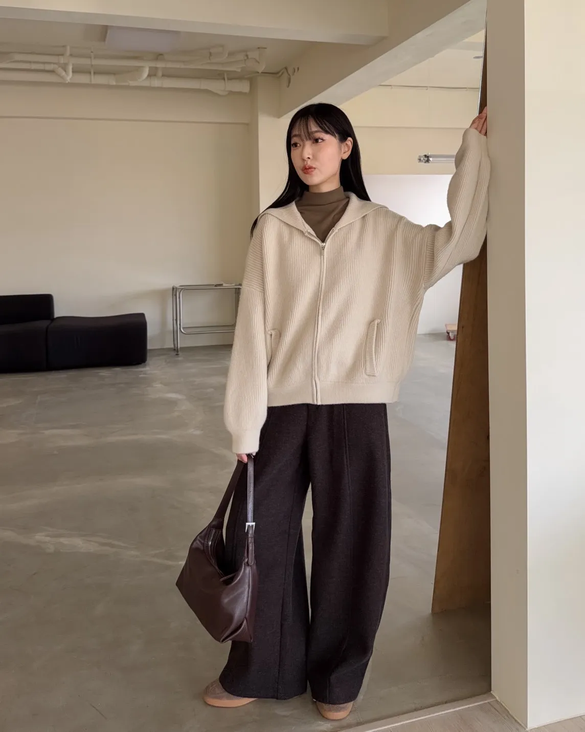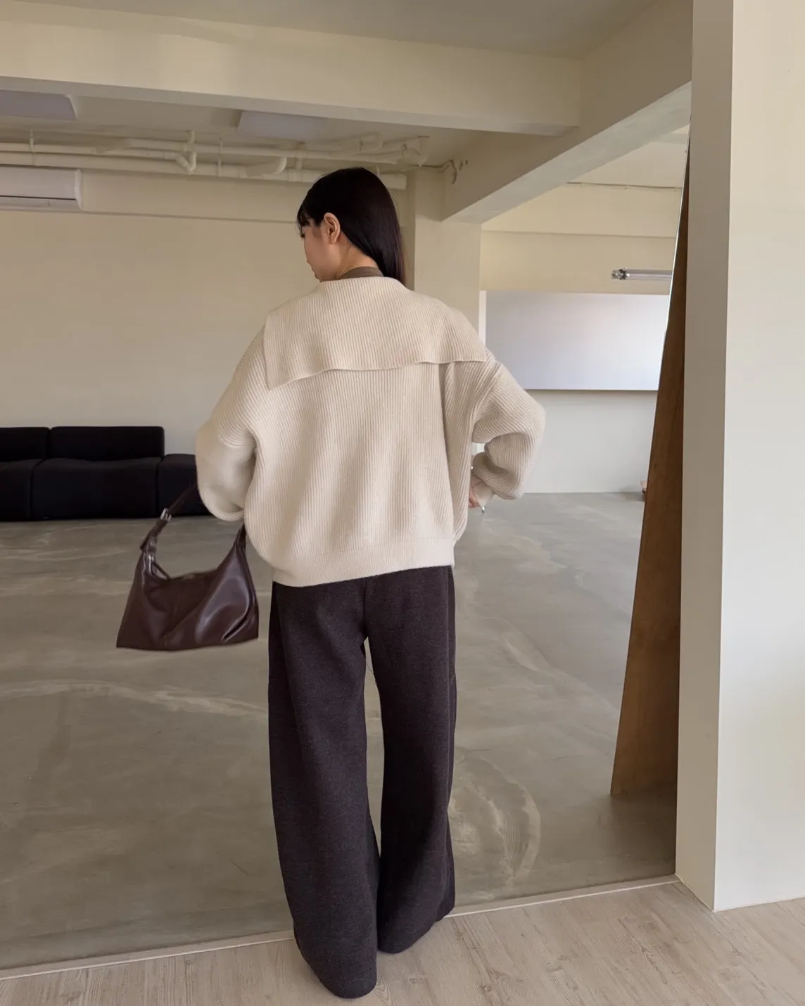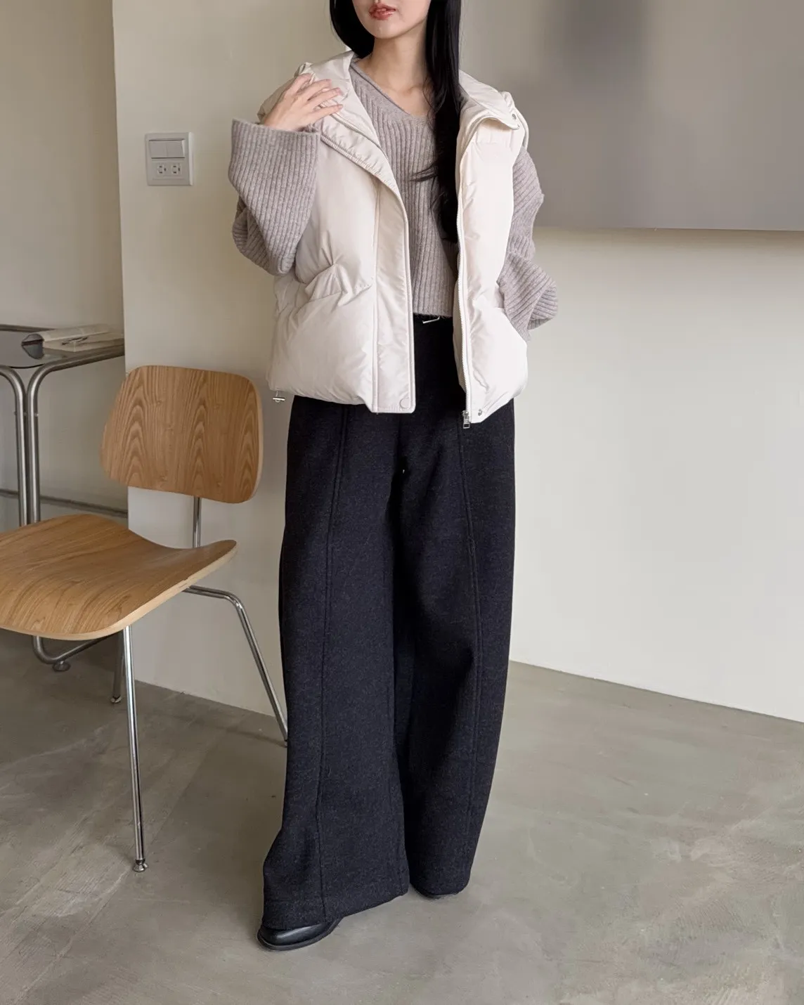 版型正常 附皮帶 兩側口袋 車線造型 厚毛呢 彎刀版型