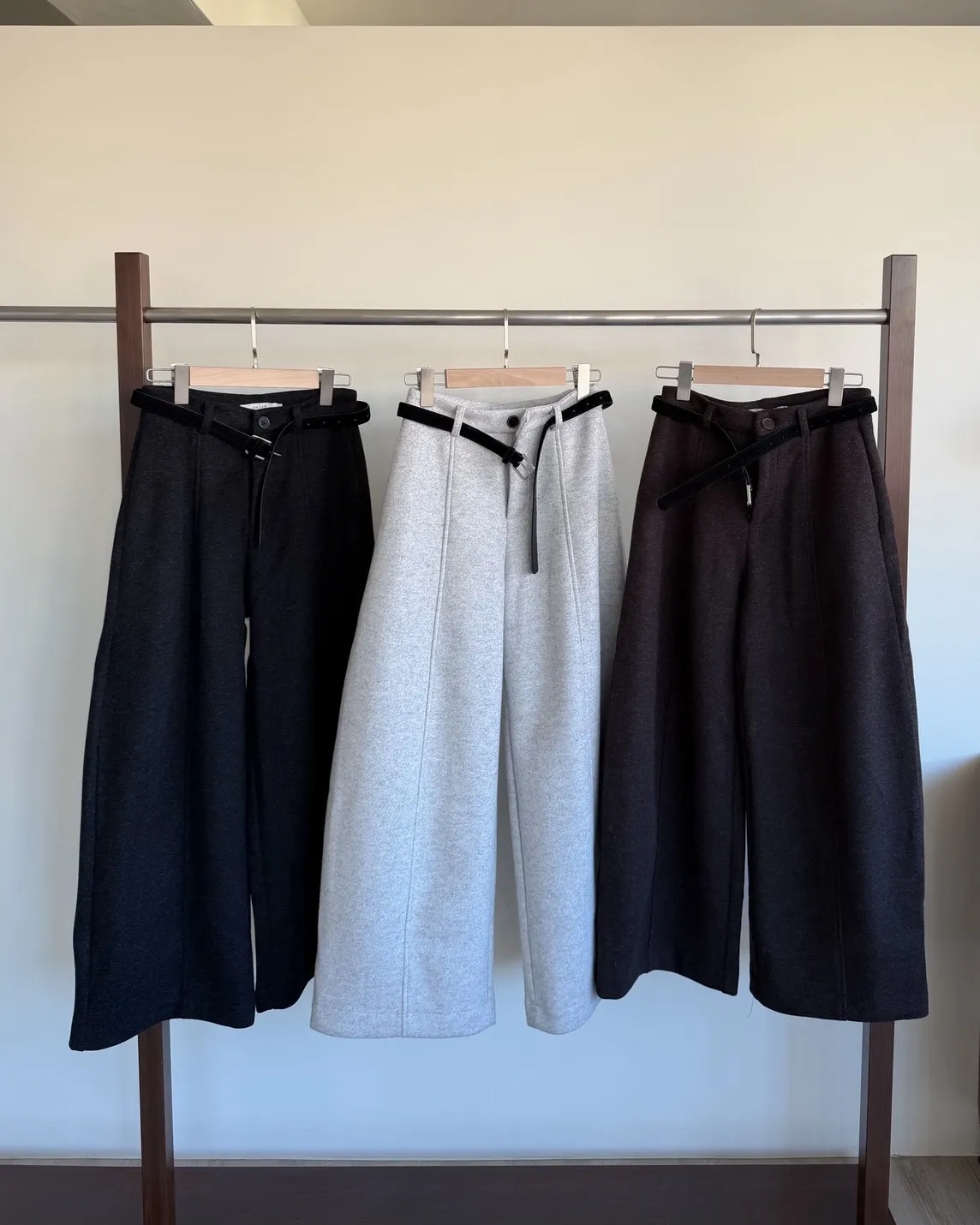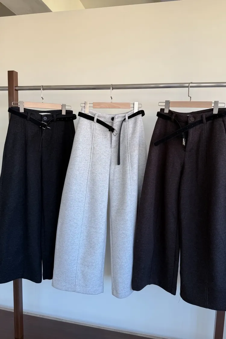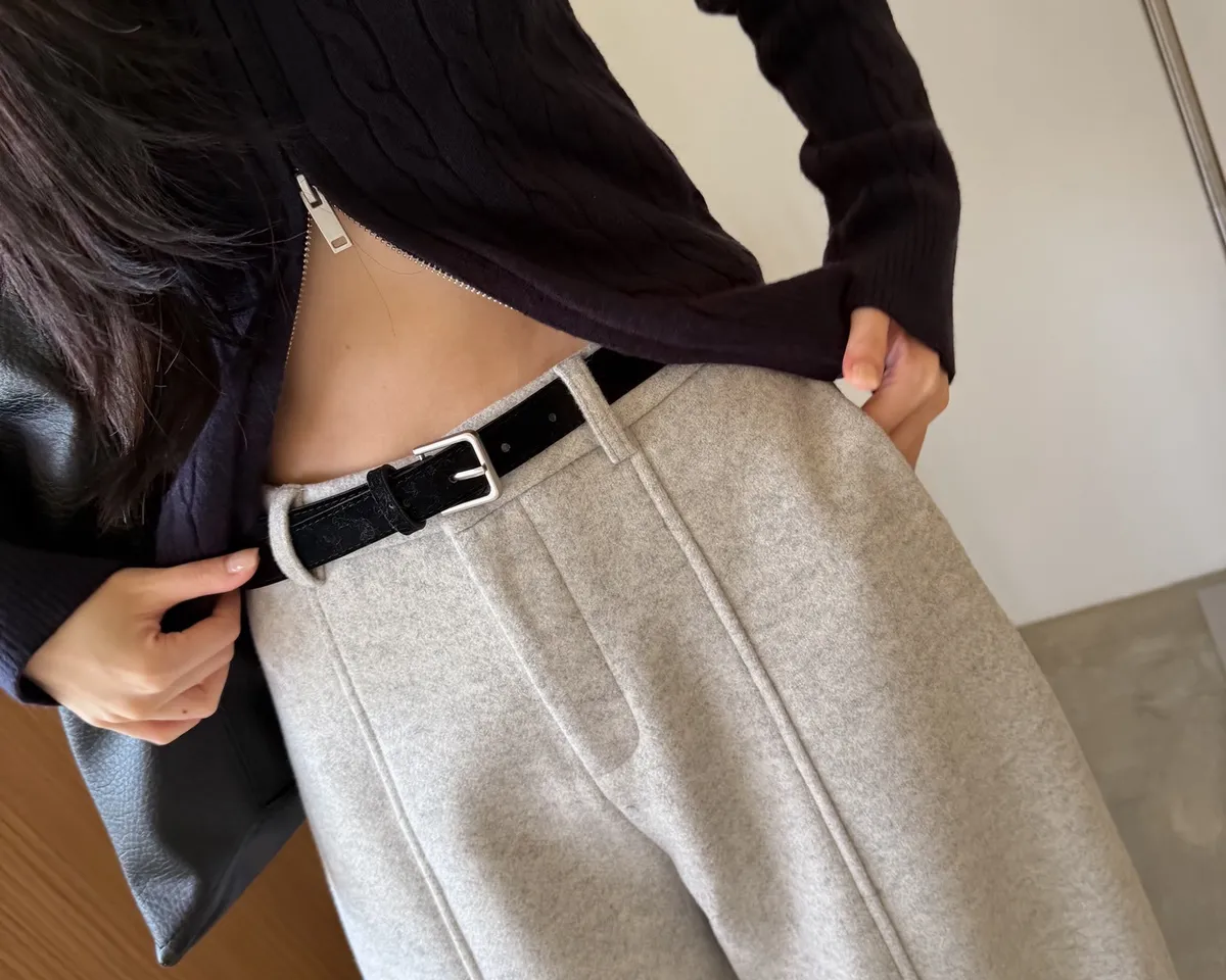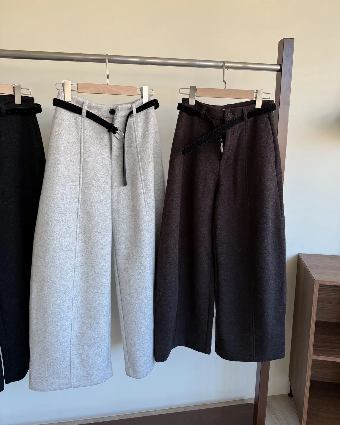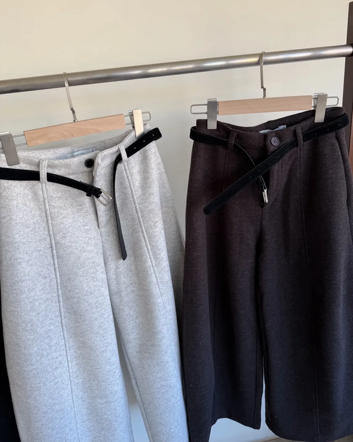 X0031(附絨布皮帶)厚毛呢車線彎刀褲(咖啡/白灰/黑灰)
