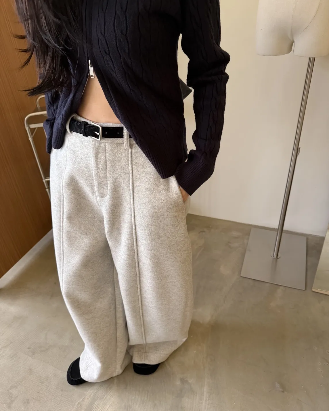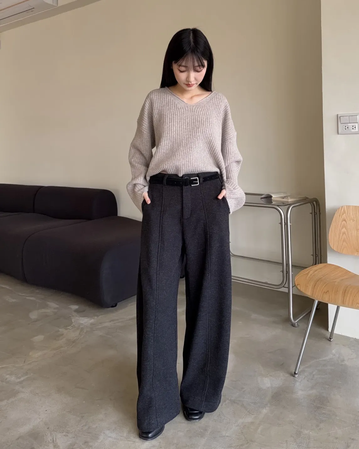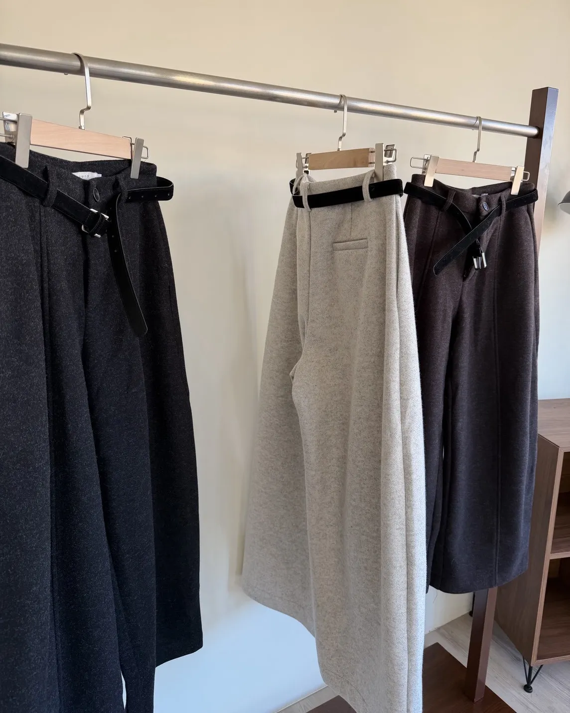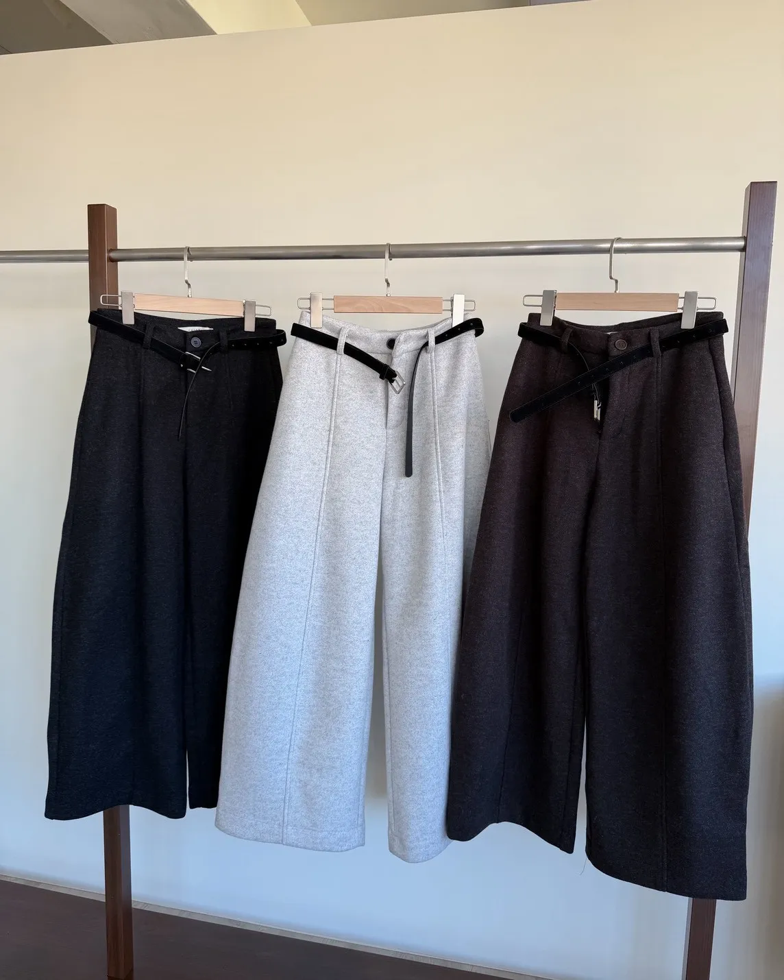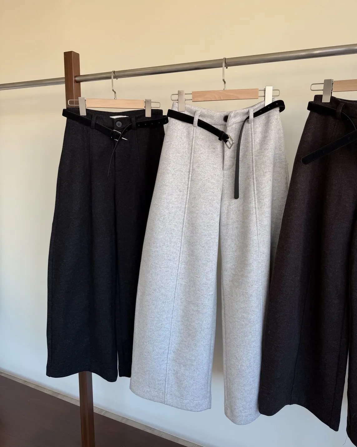 X0031(附絨布皮帶)厚毛呢車線彎刀褲(咖啡/白灰/黑灰)