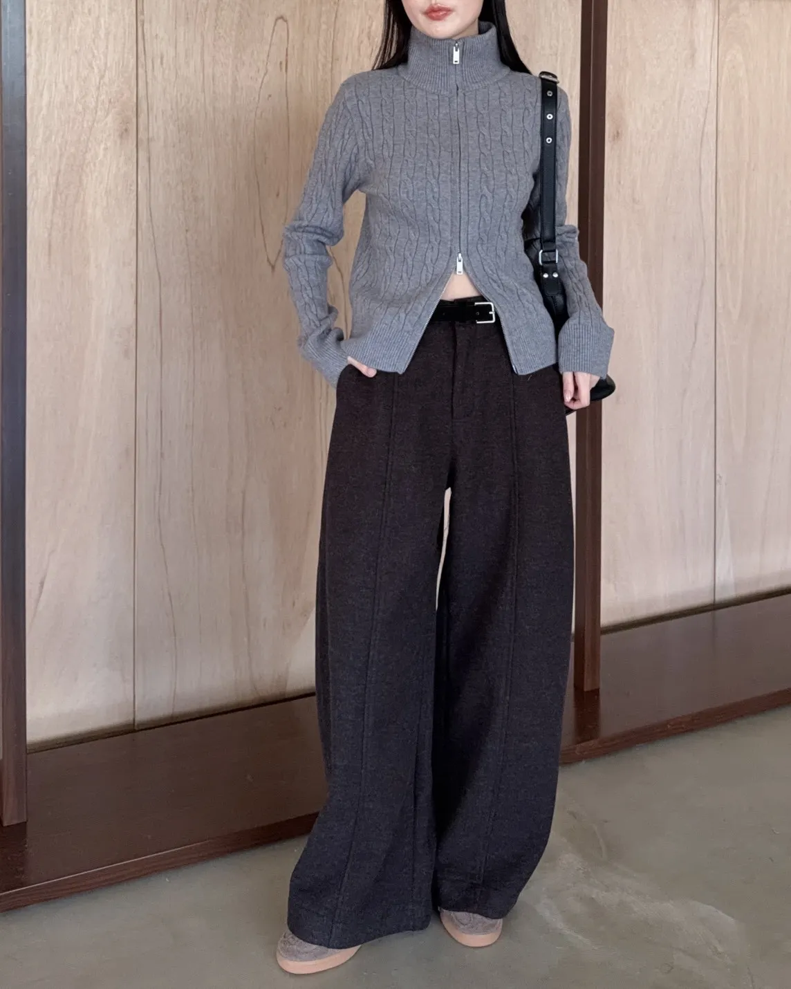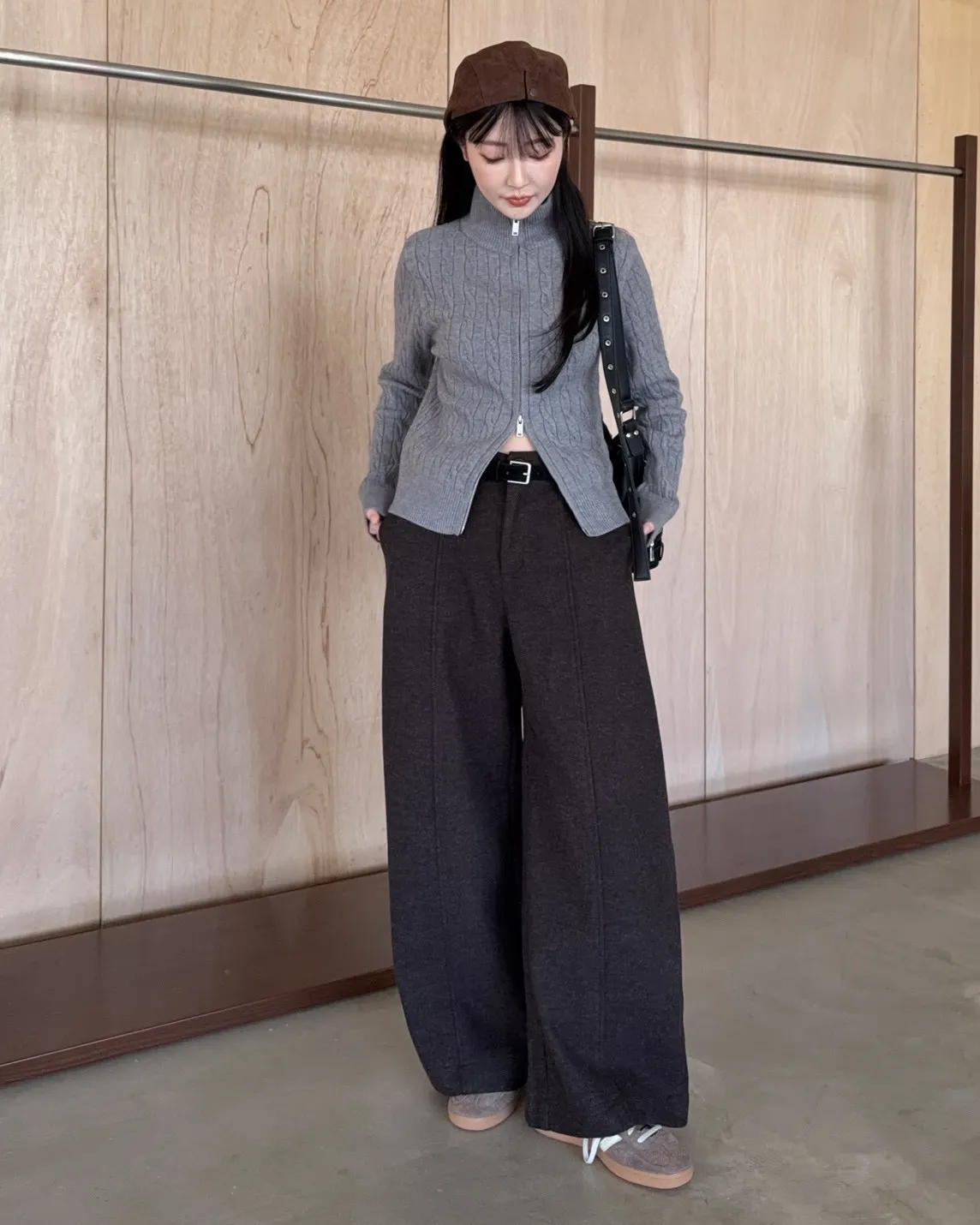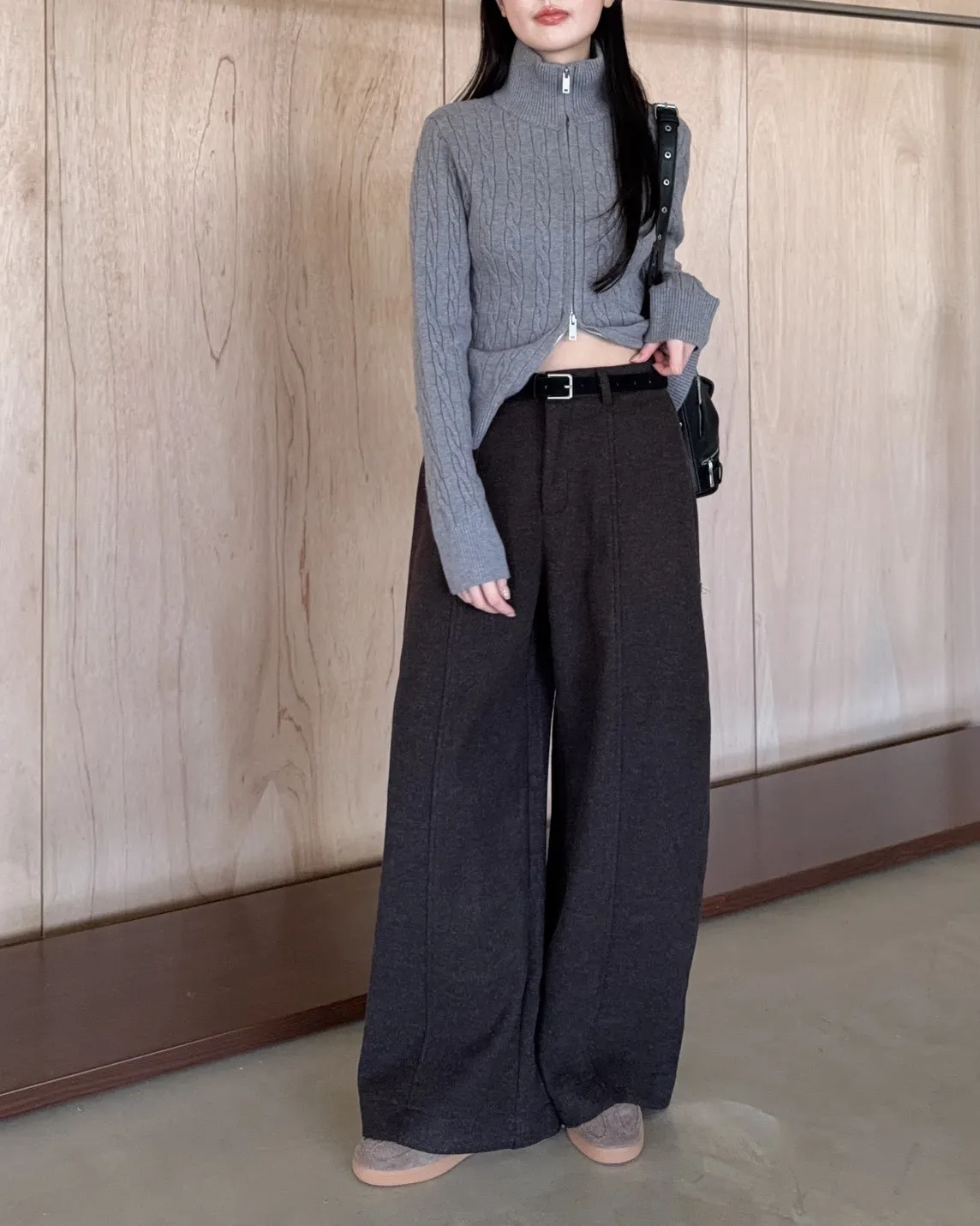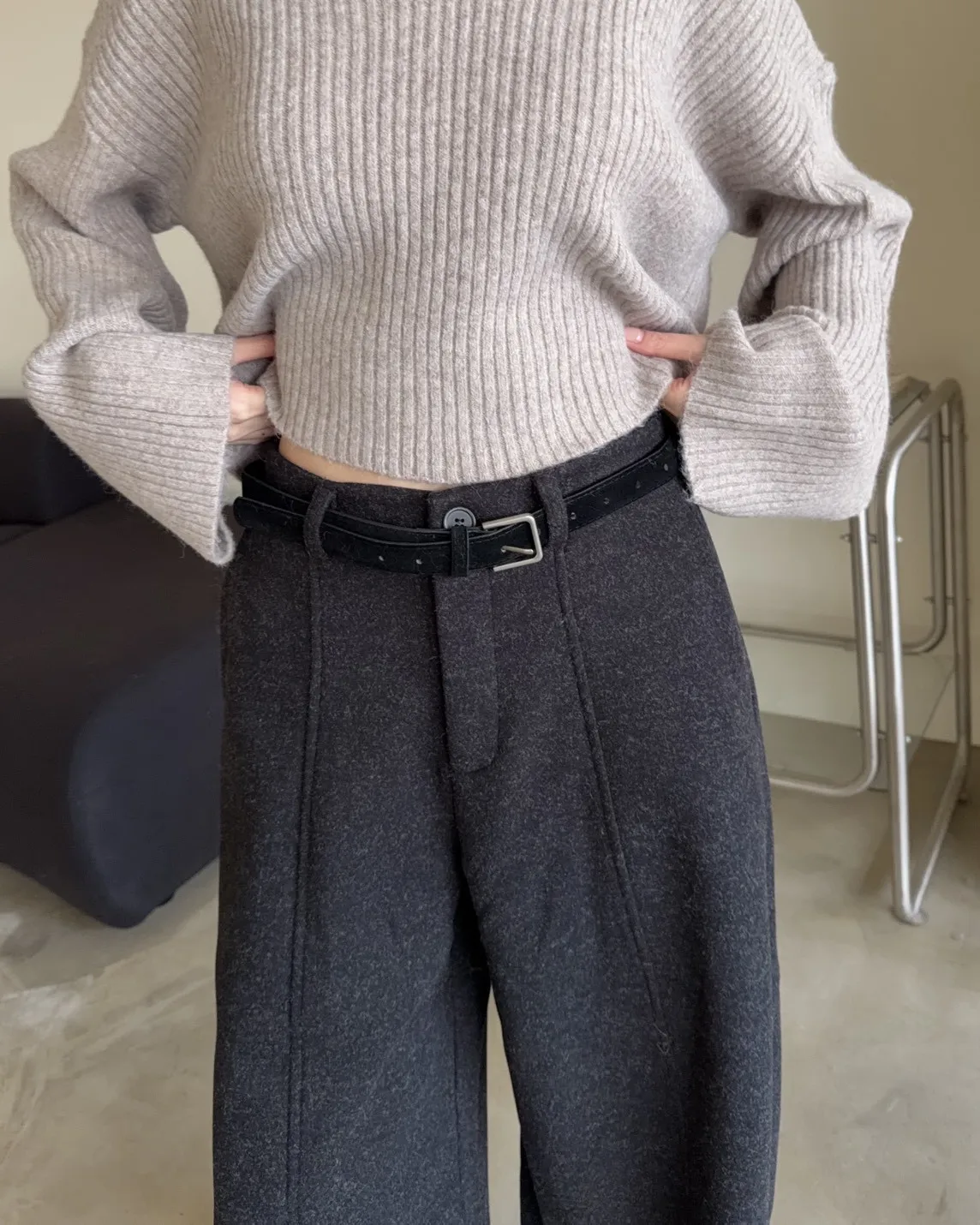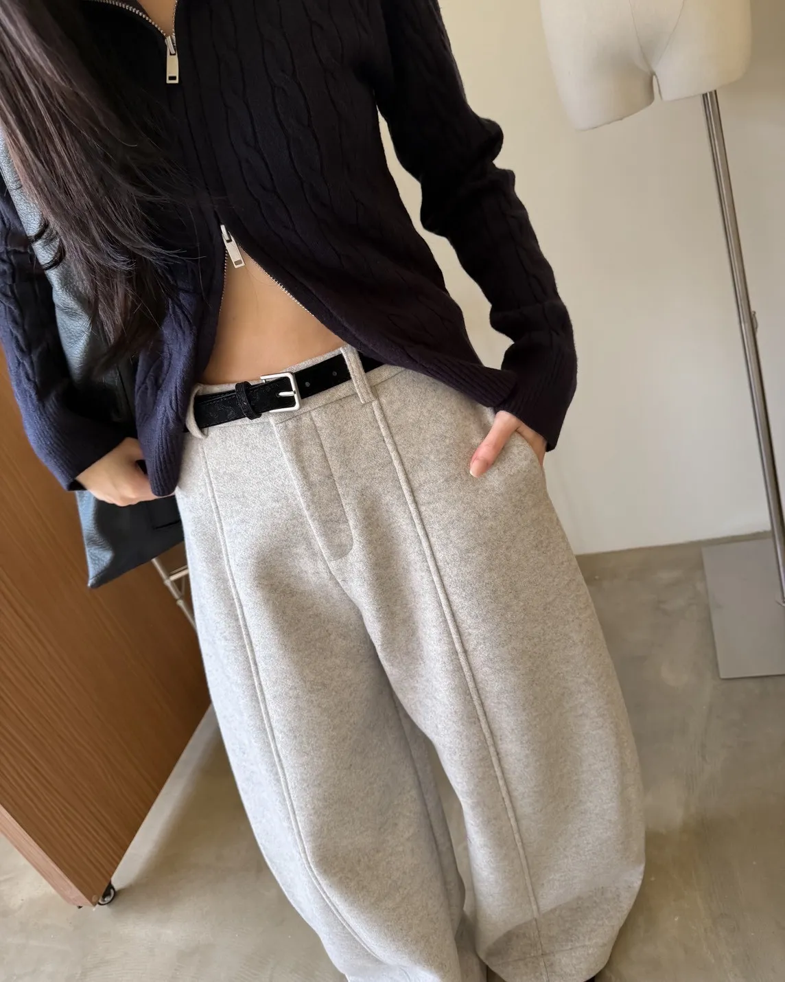 X0031(附絨布皮帶)厚毛呢車線彎刀褲(咖啡/白灰/黑灰)