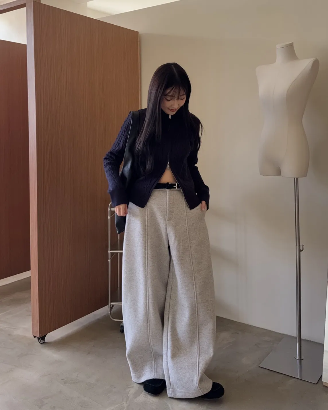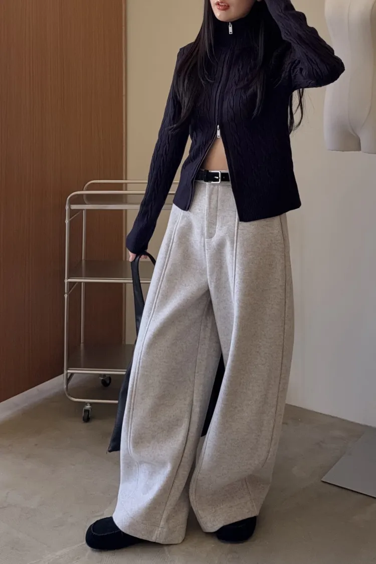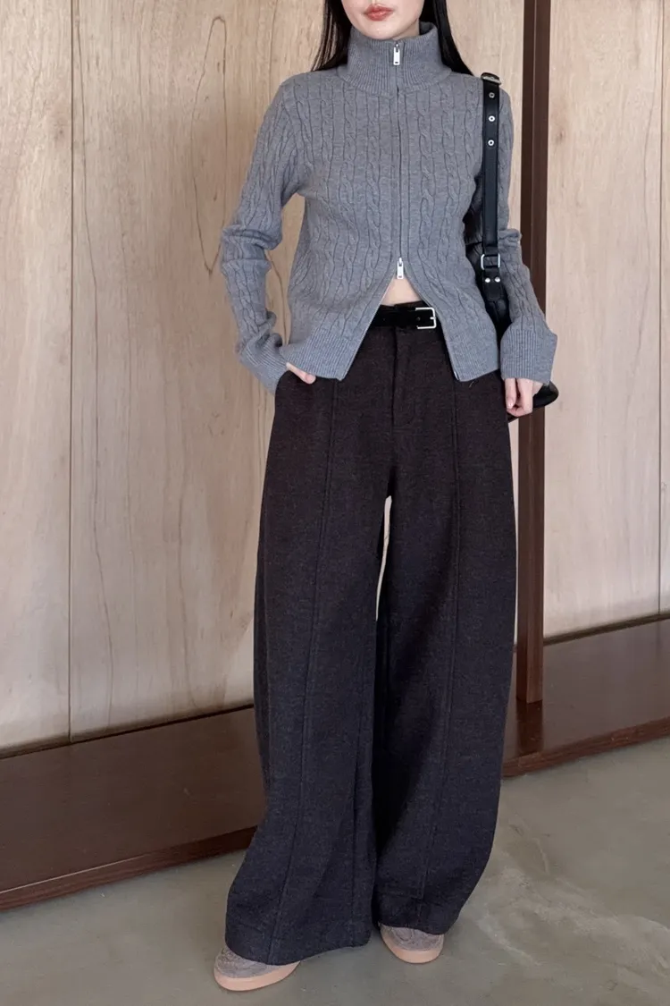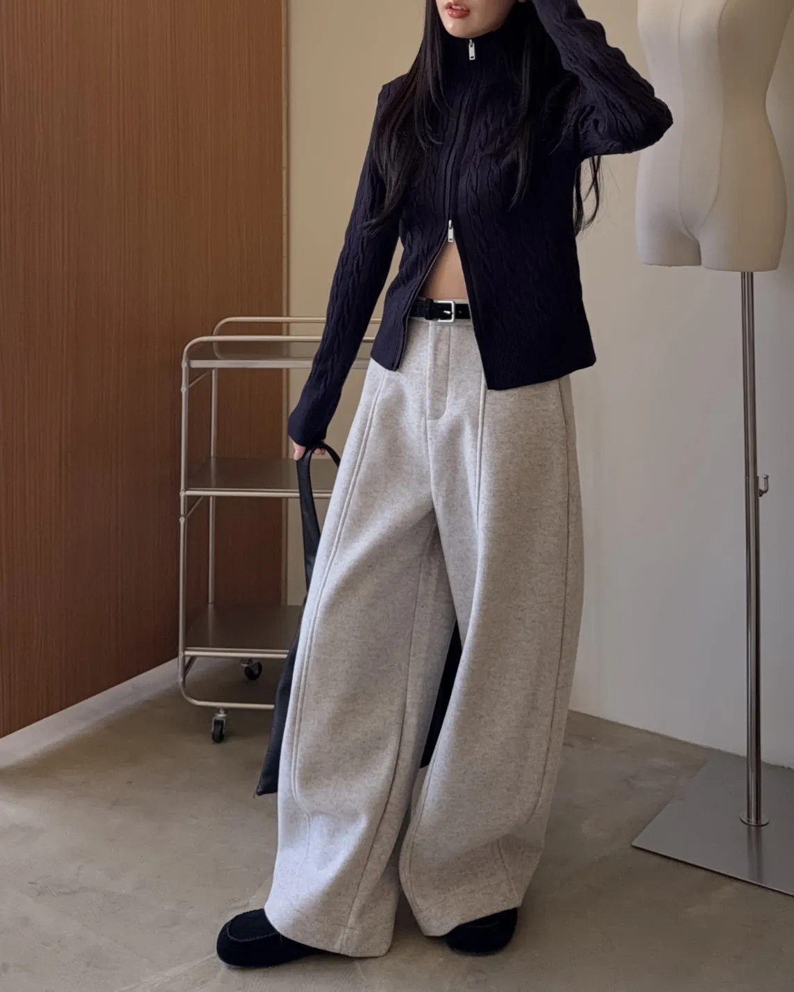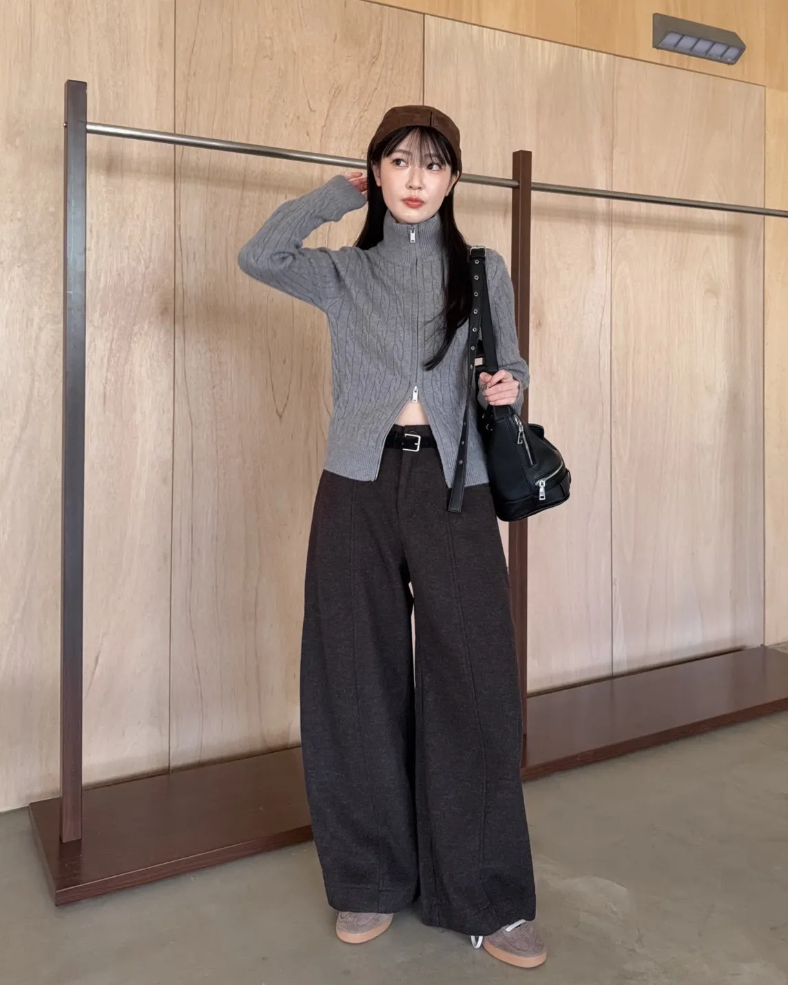 X0031(附絨布皮帶)厚毛呢車線彎刀褲(咖啡/白灰/黑灰)