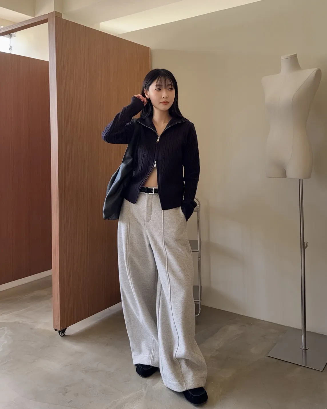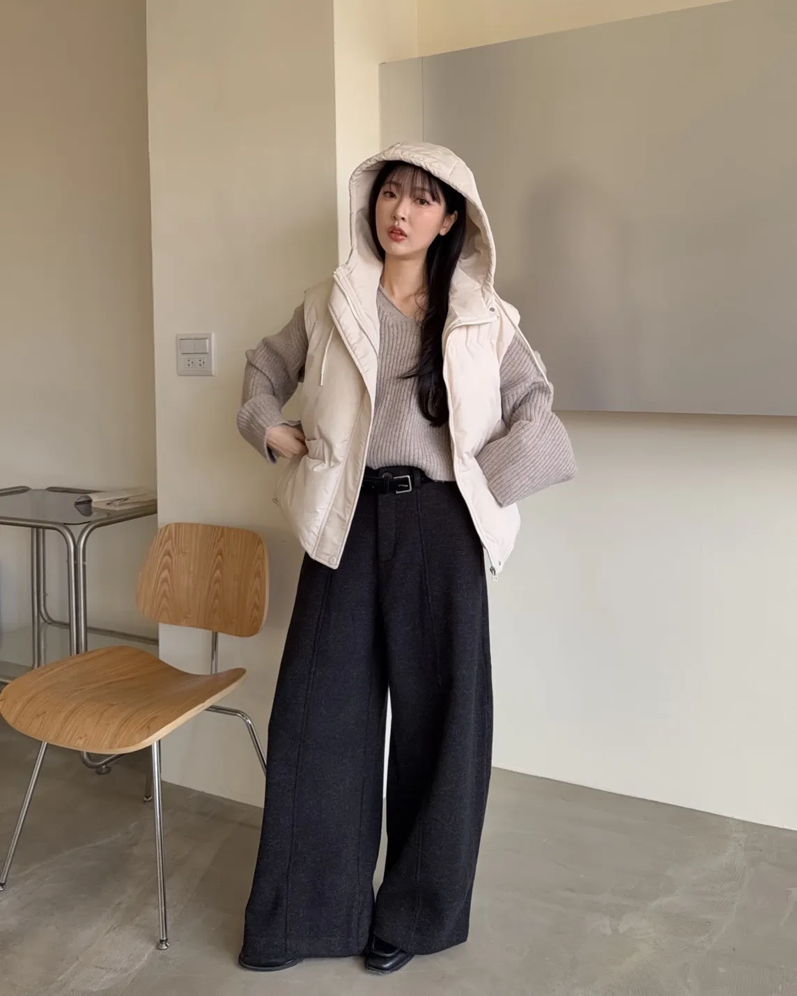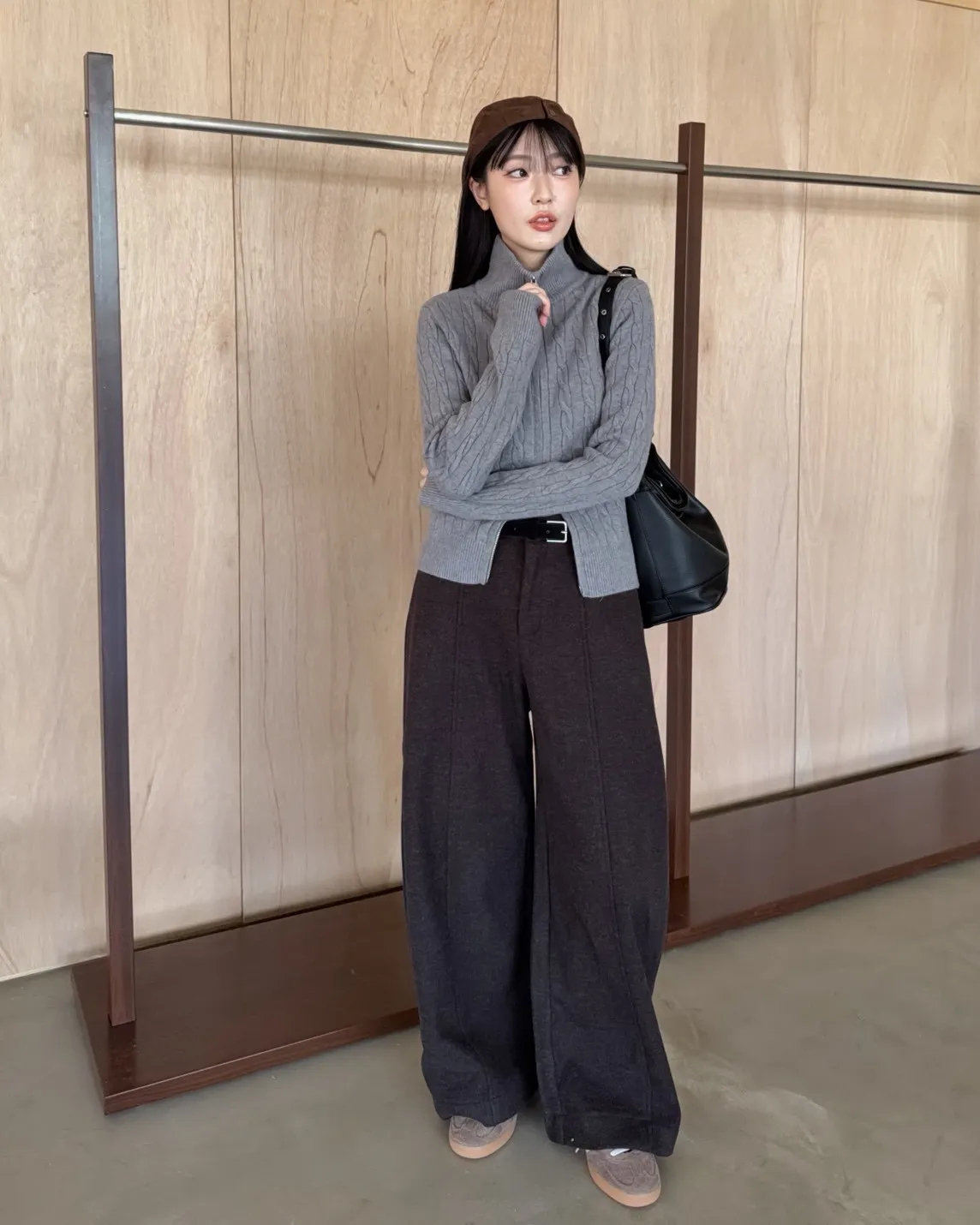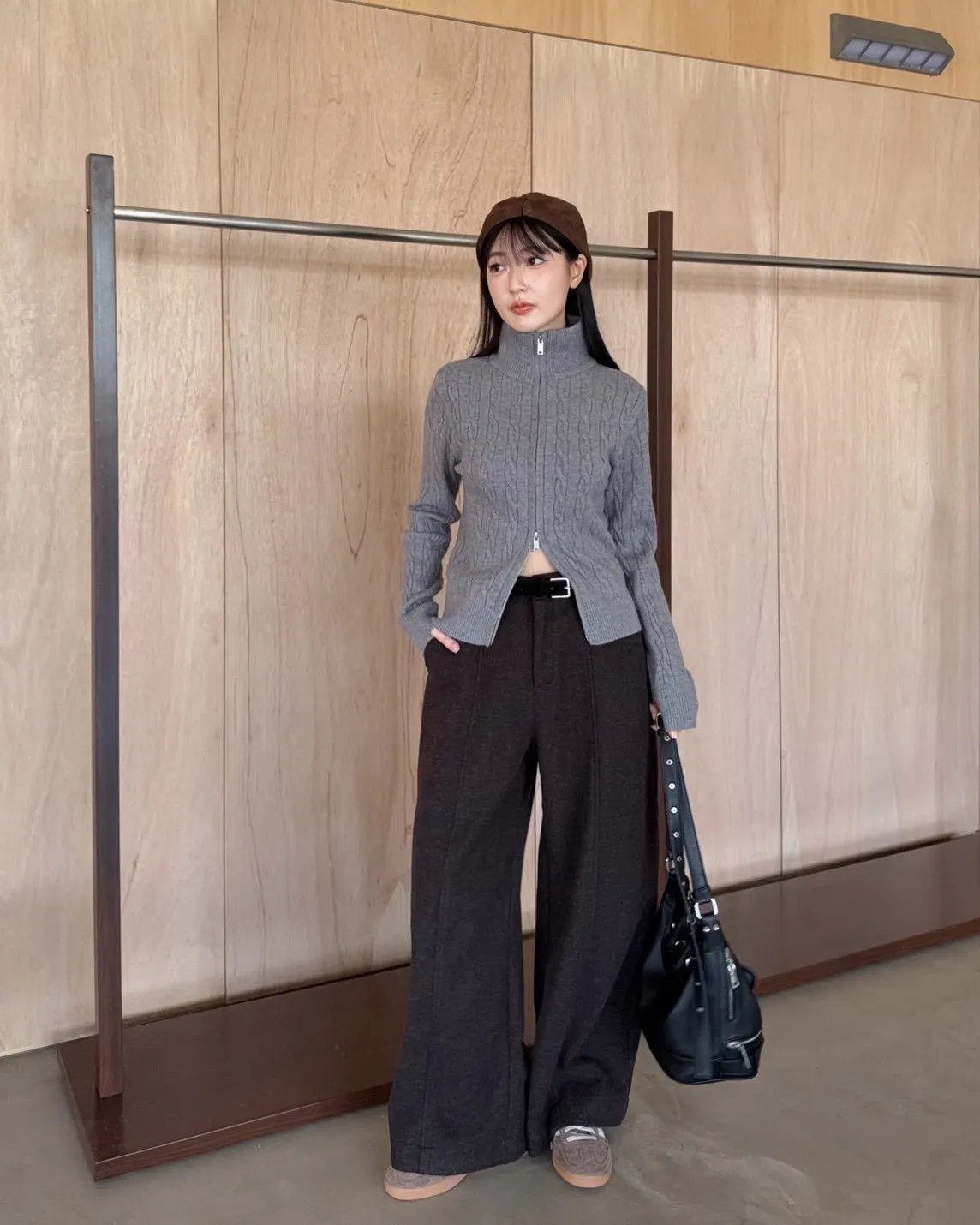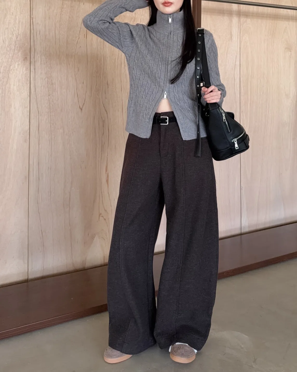 X0031(附絨布皮帶)厚毛呢車線彎刀褲(咖啡/白灰/黑灰)