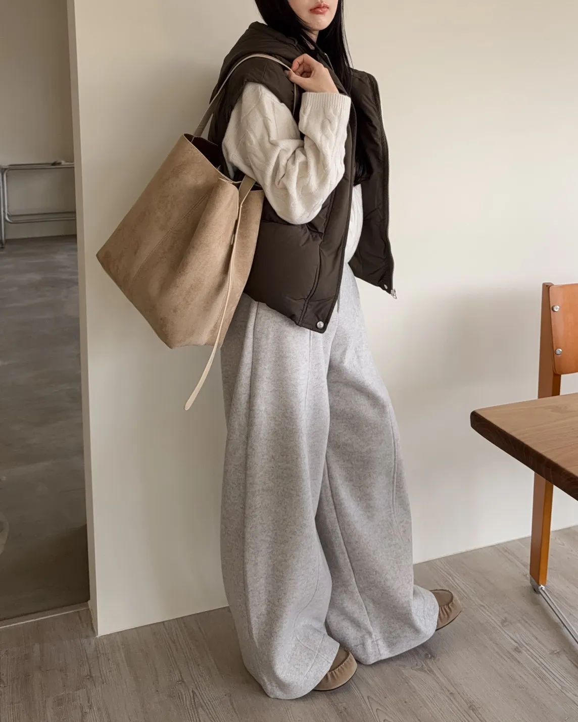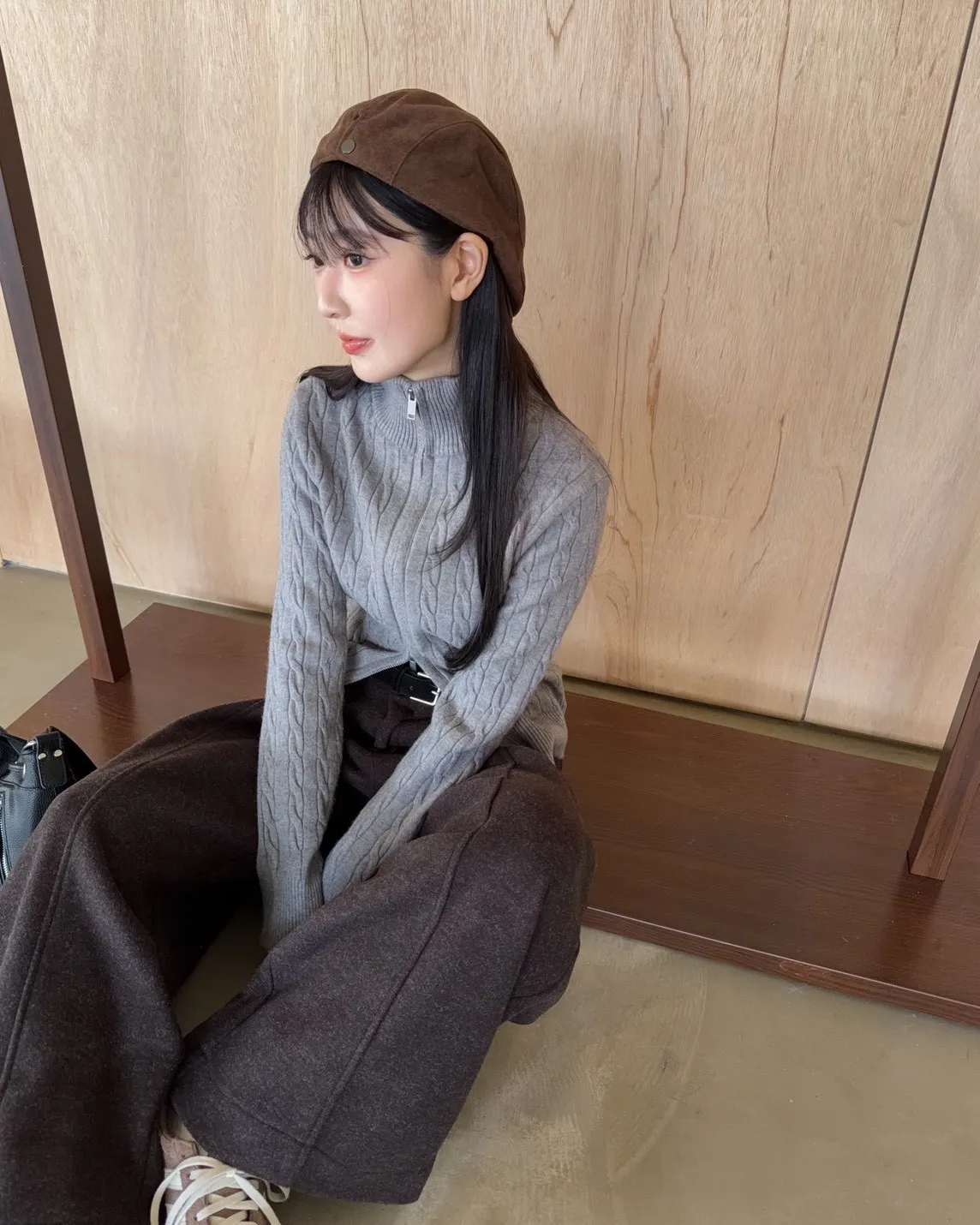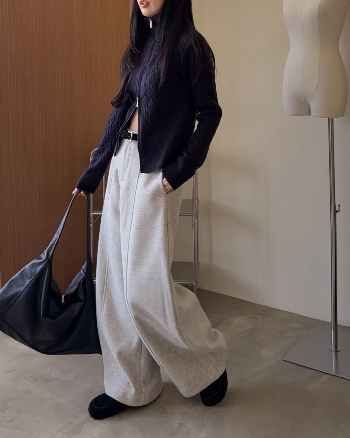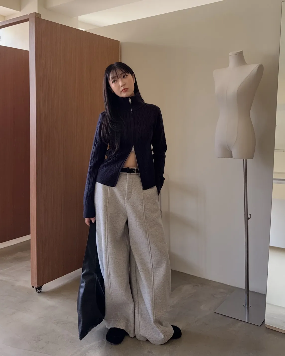 X0031(附絨布皮帶)厚毛呢車線彎刀褲(咖啡/白灰/黑灰)