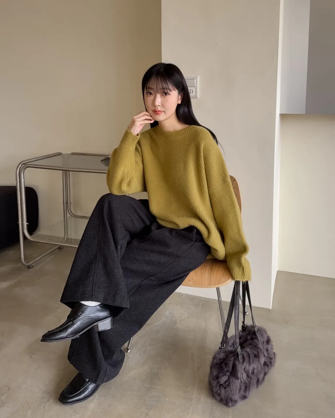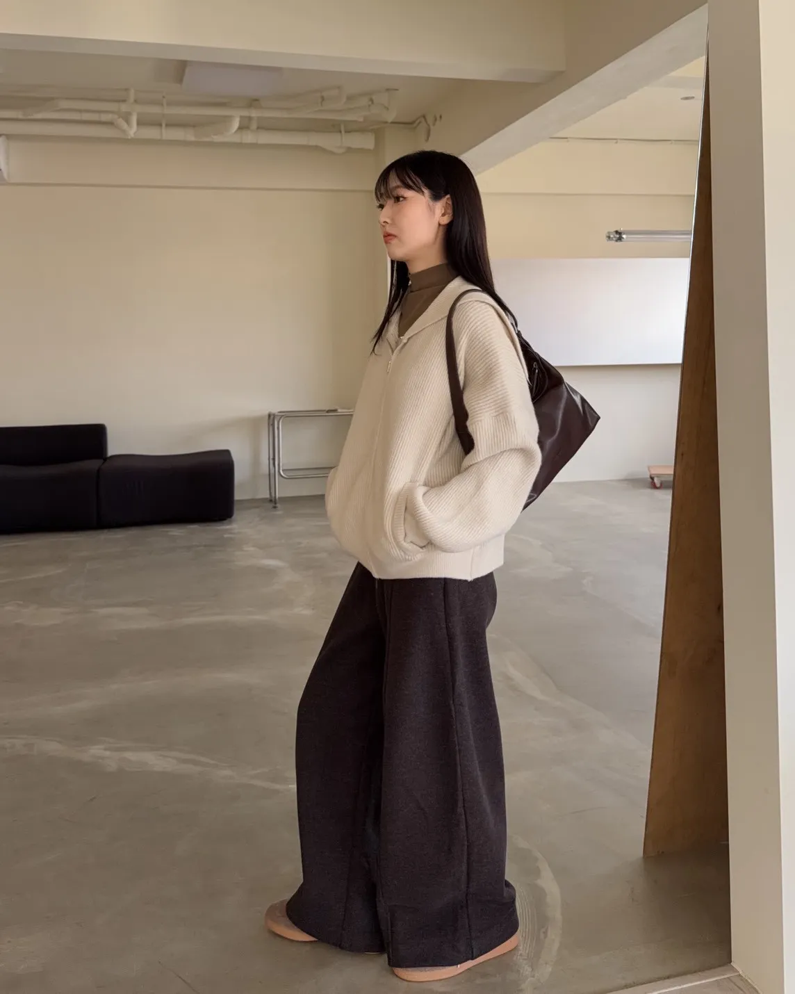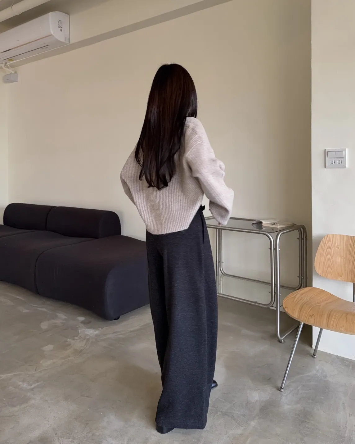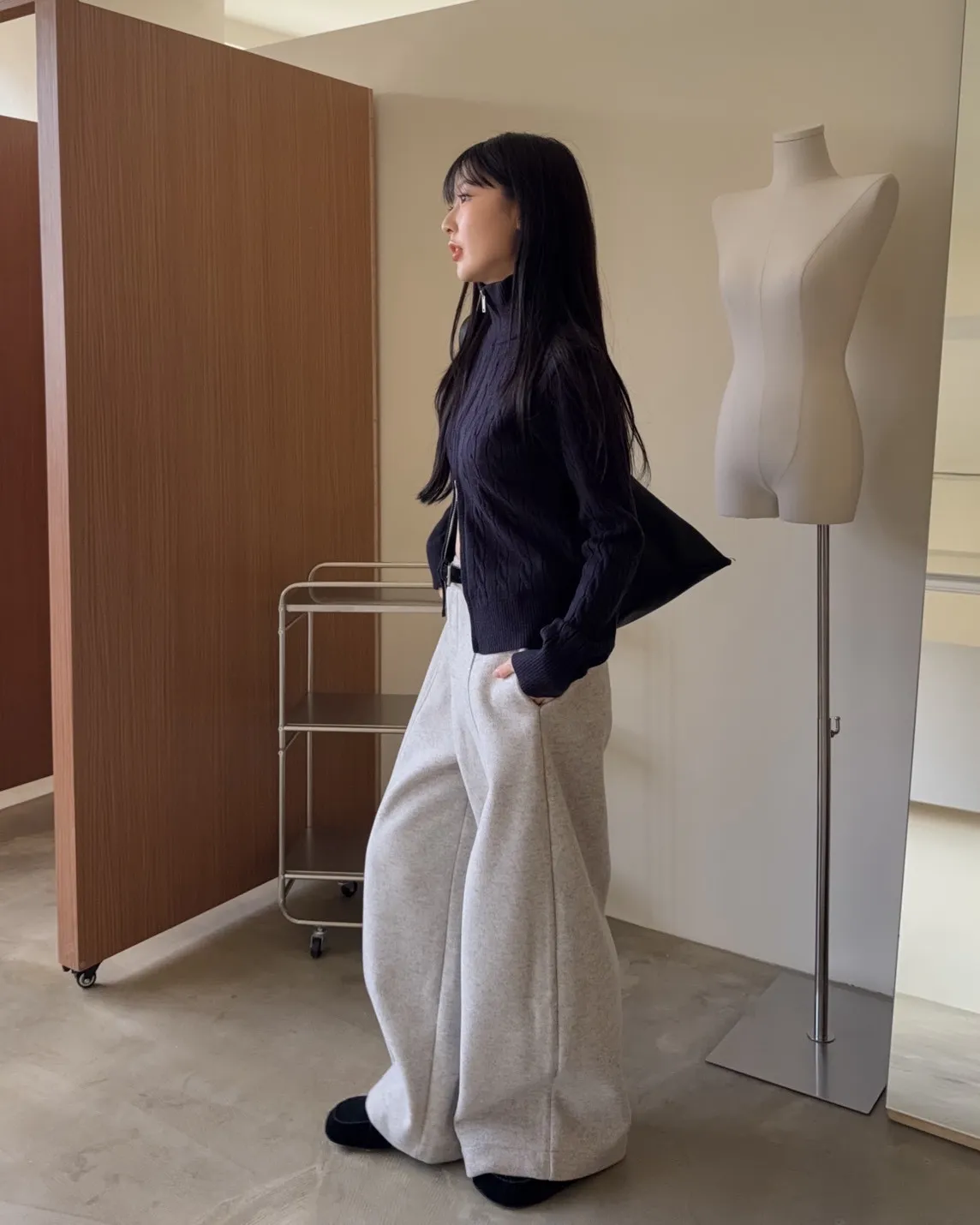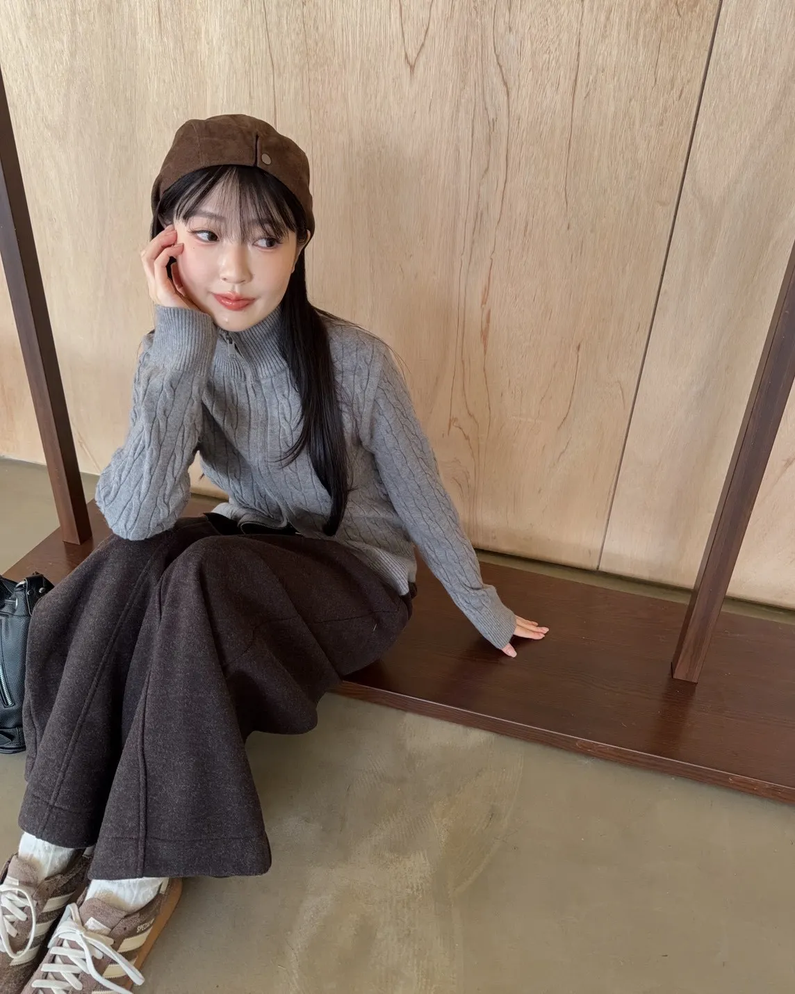 X0031(附絨布皮帶)厚毛呢車線彎刀褲(咖啡/白灰/黑灰)
