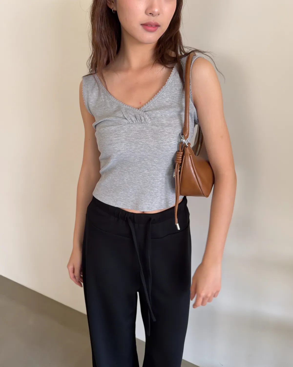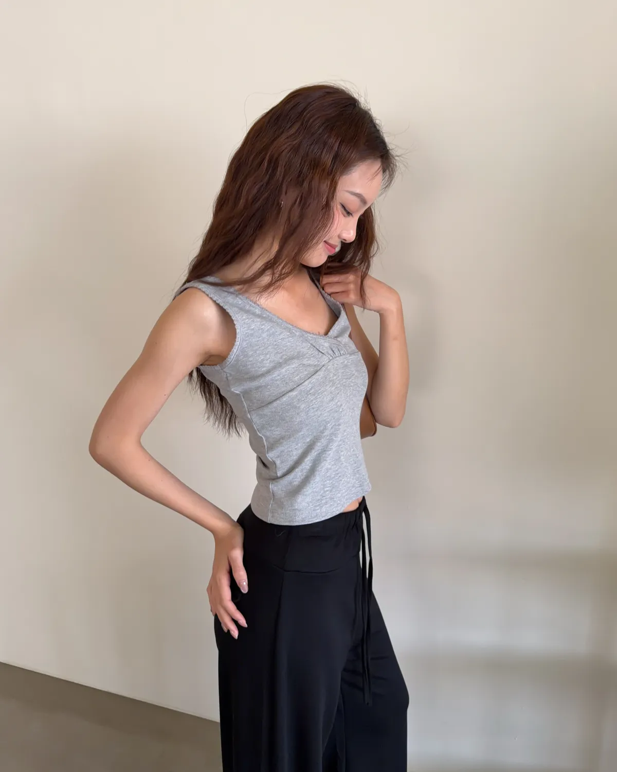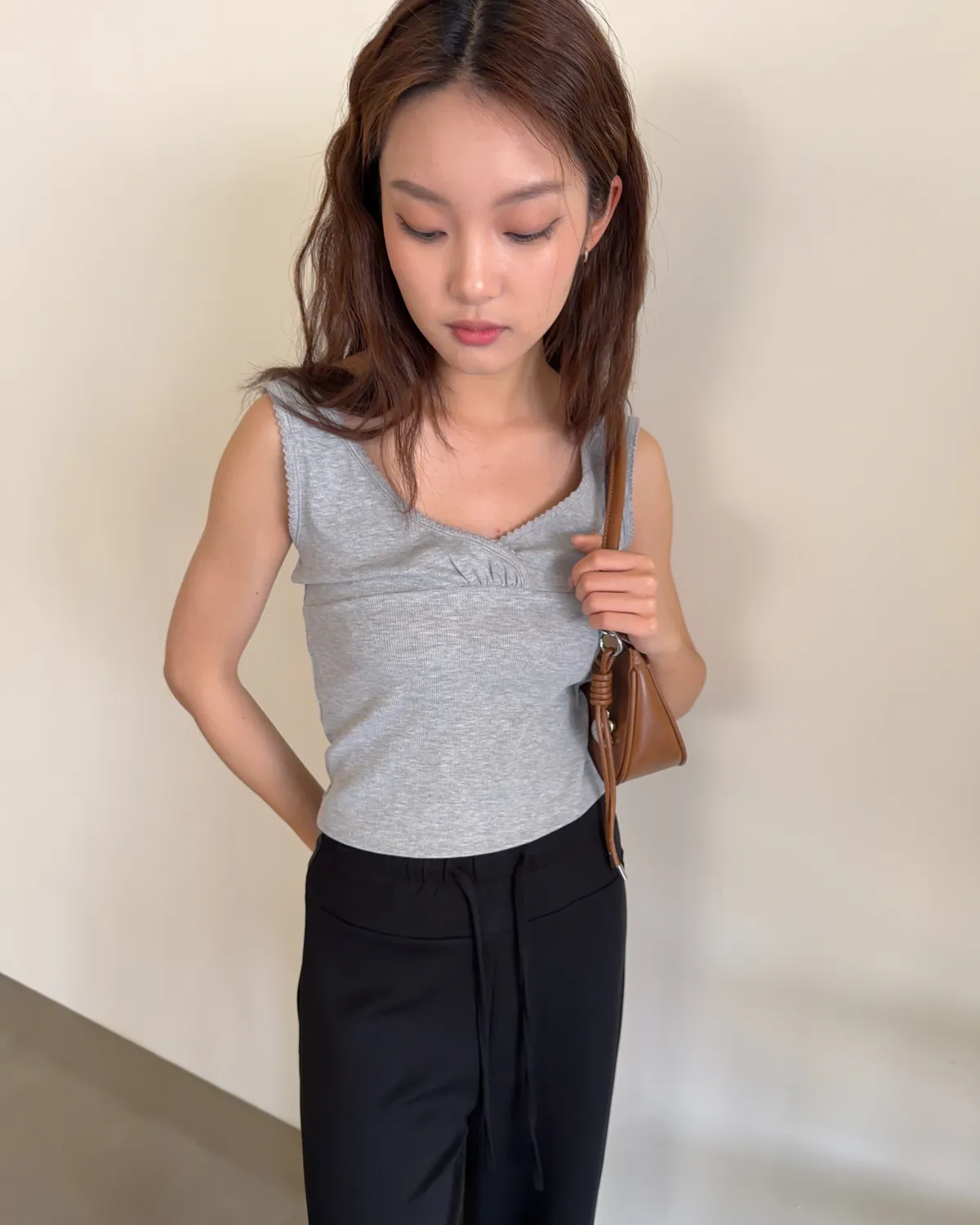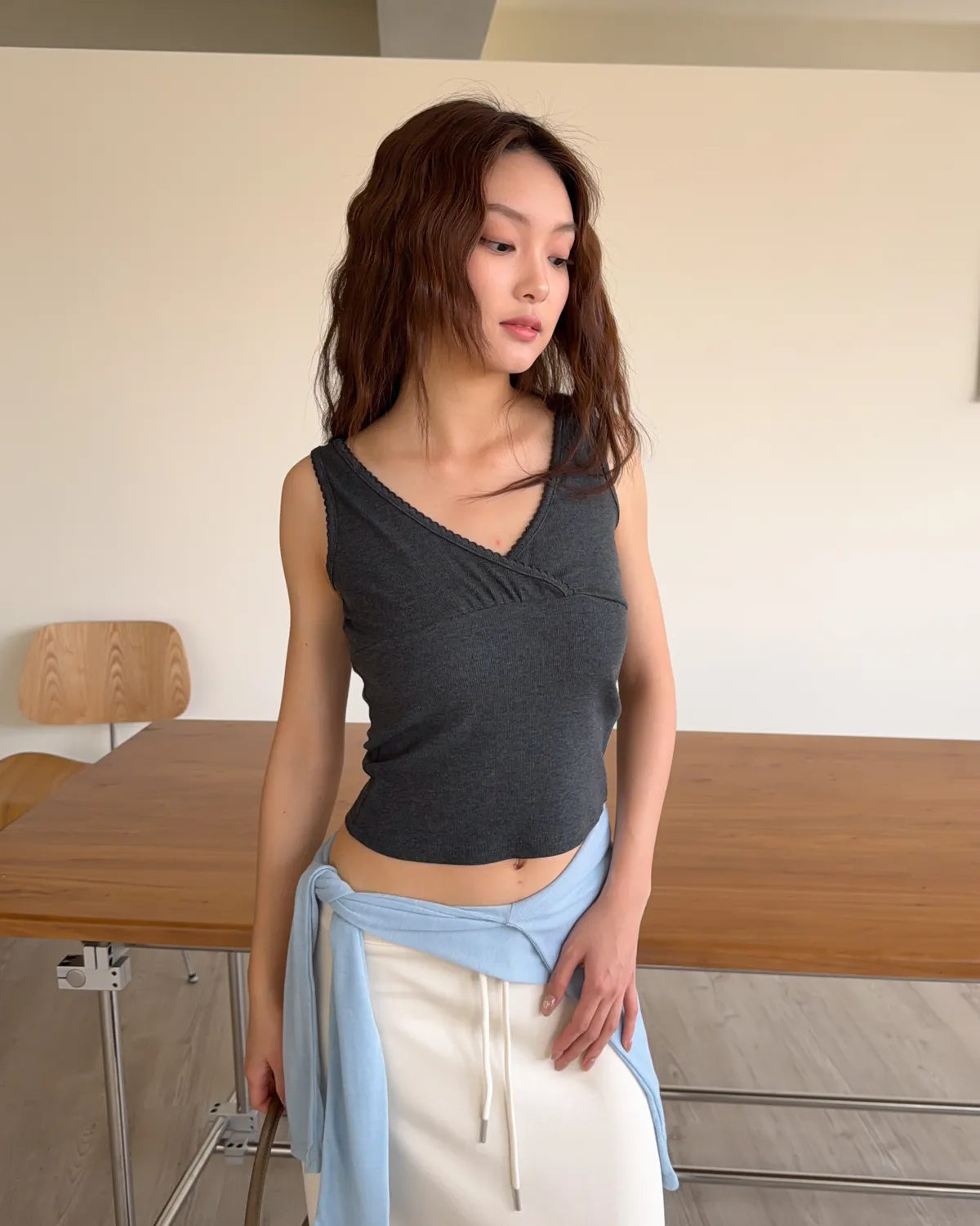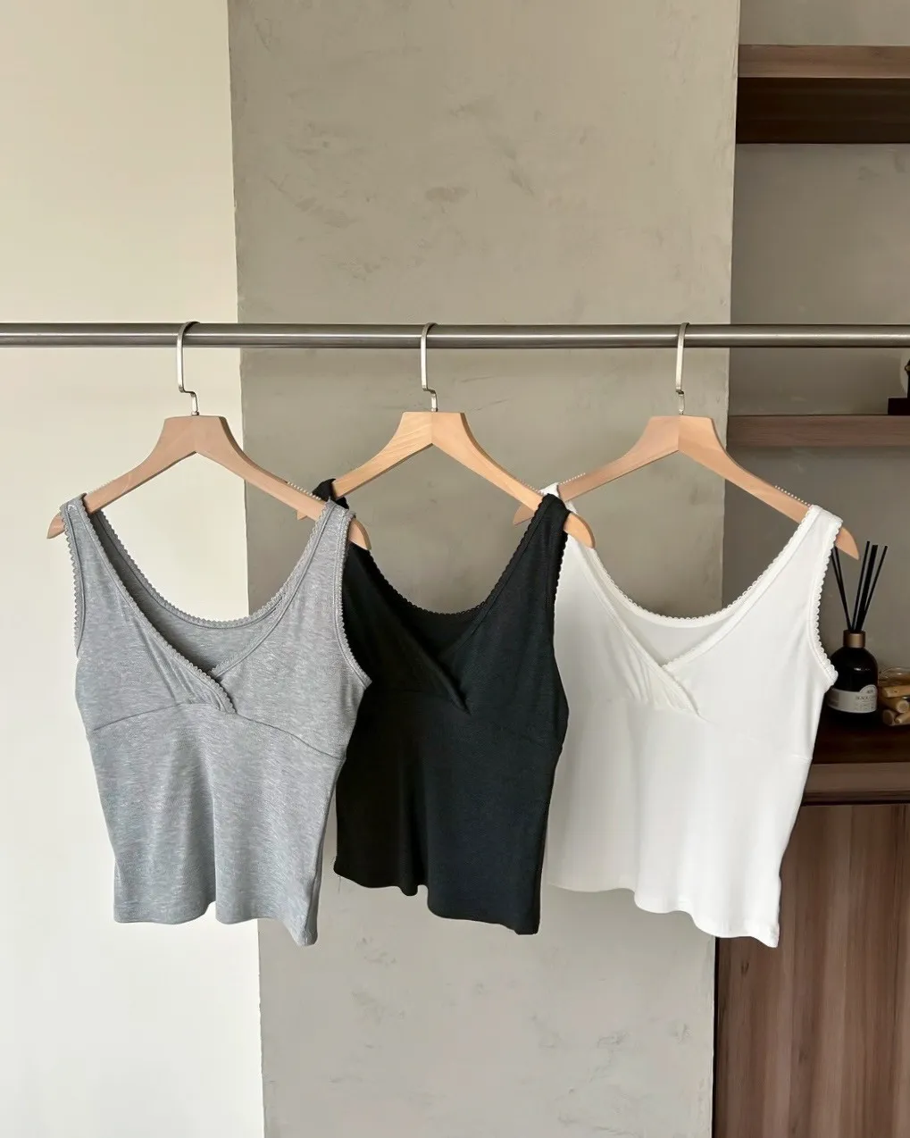 B0033法式花邊坑紋棉背心(白/灰/黑灰)
