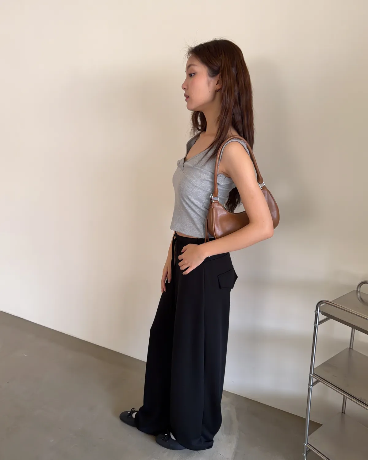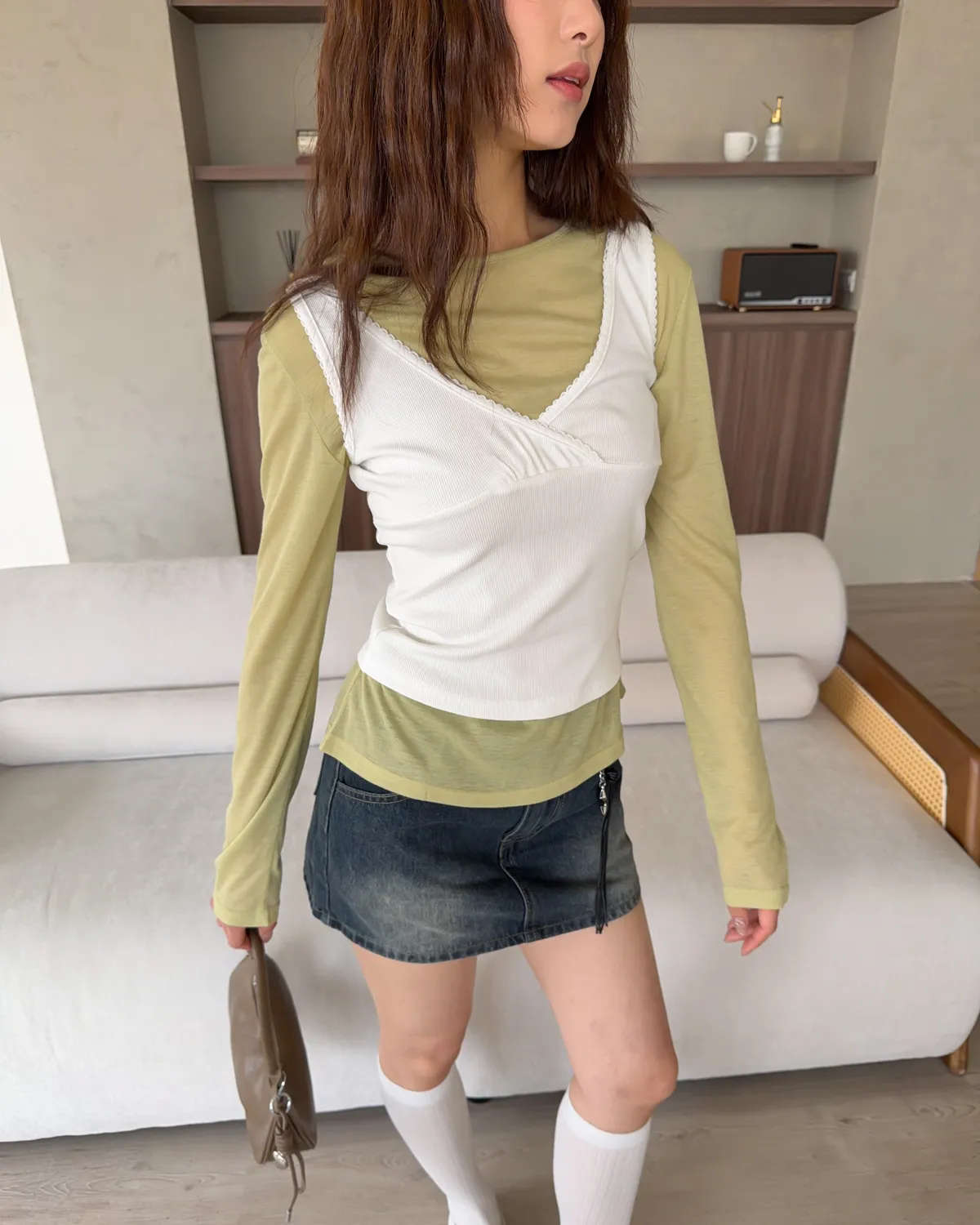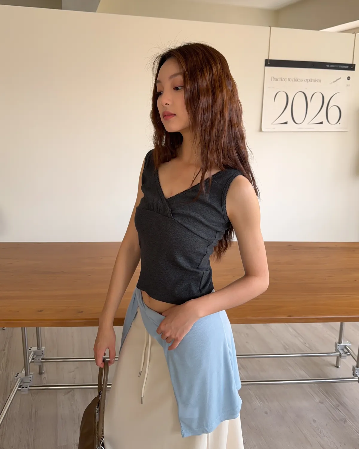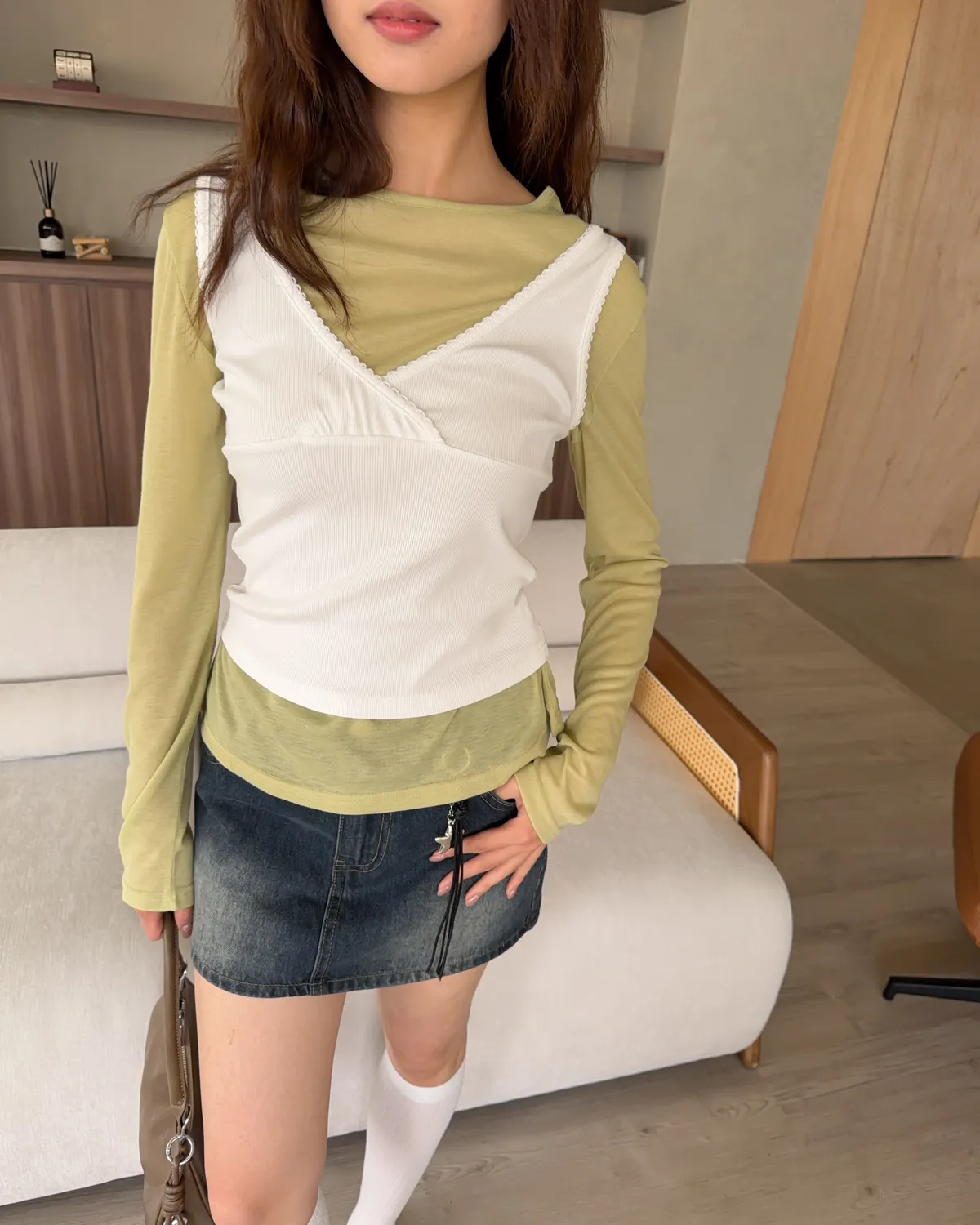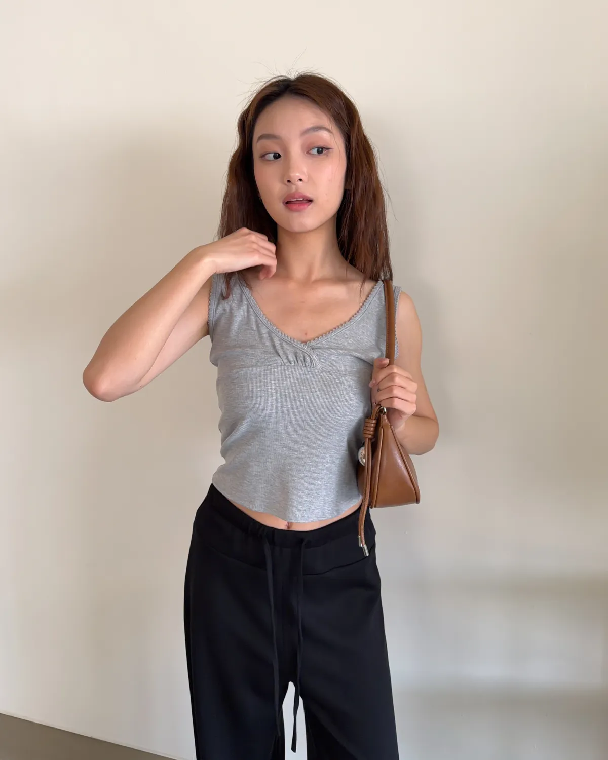 B0033法式花邊坑紋棉背心(白/灰/黑灰)