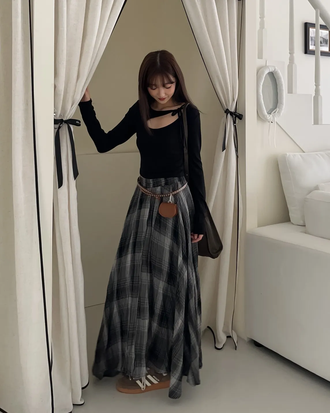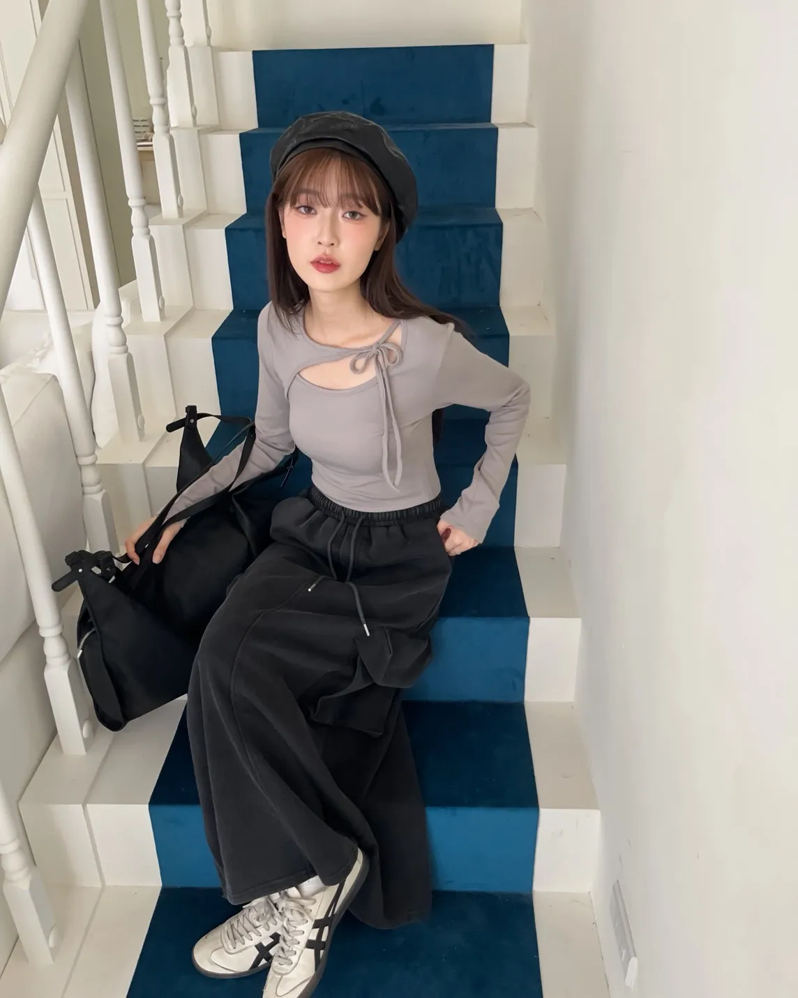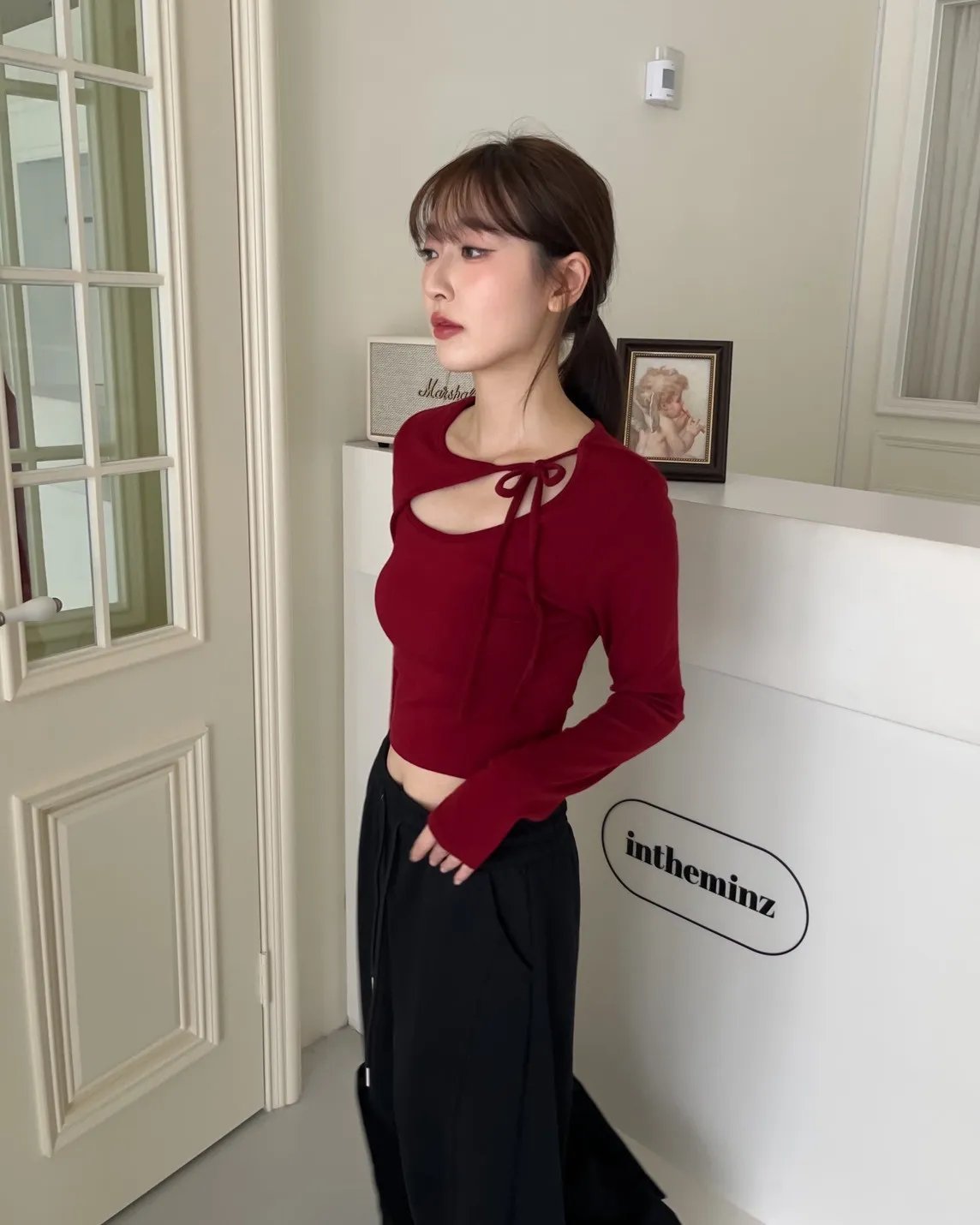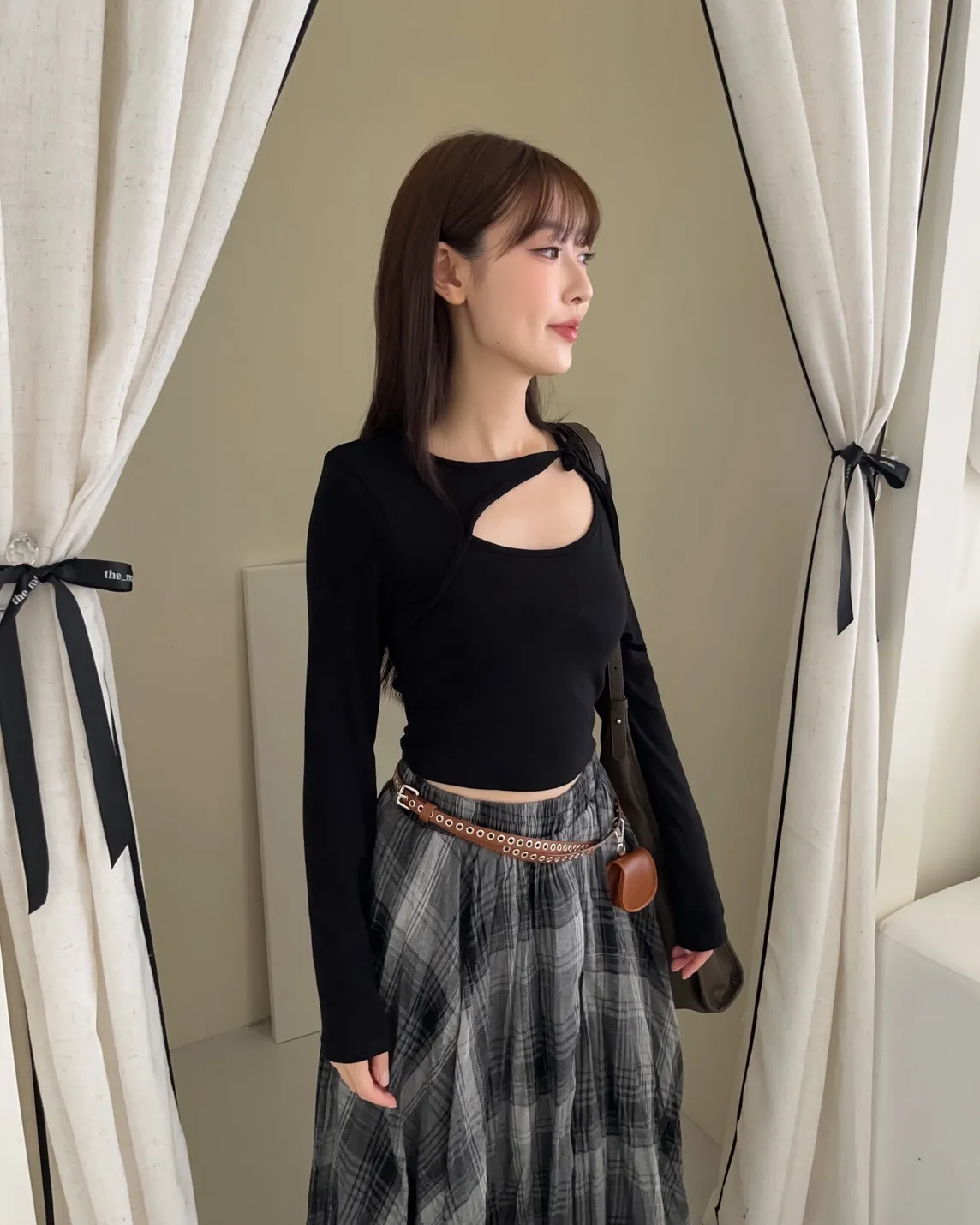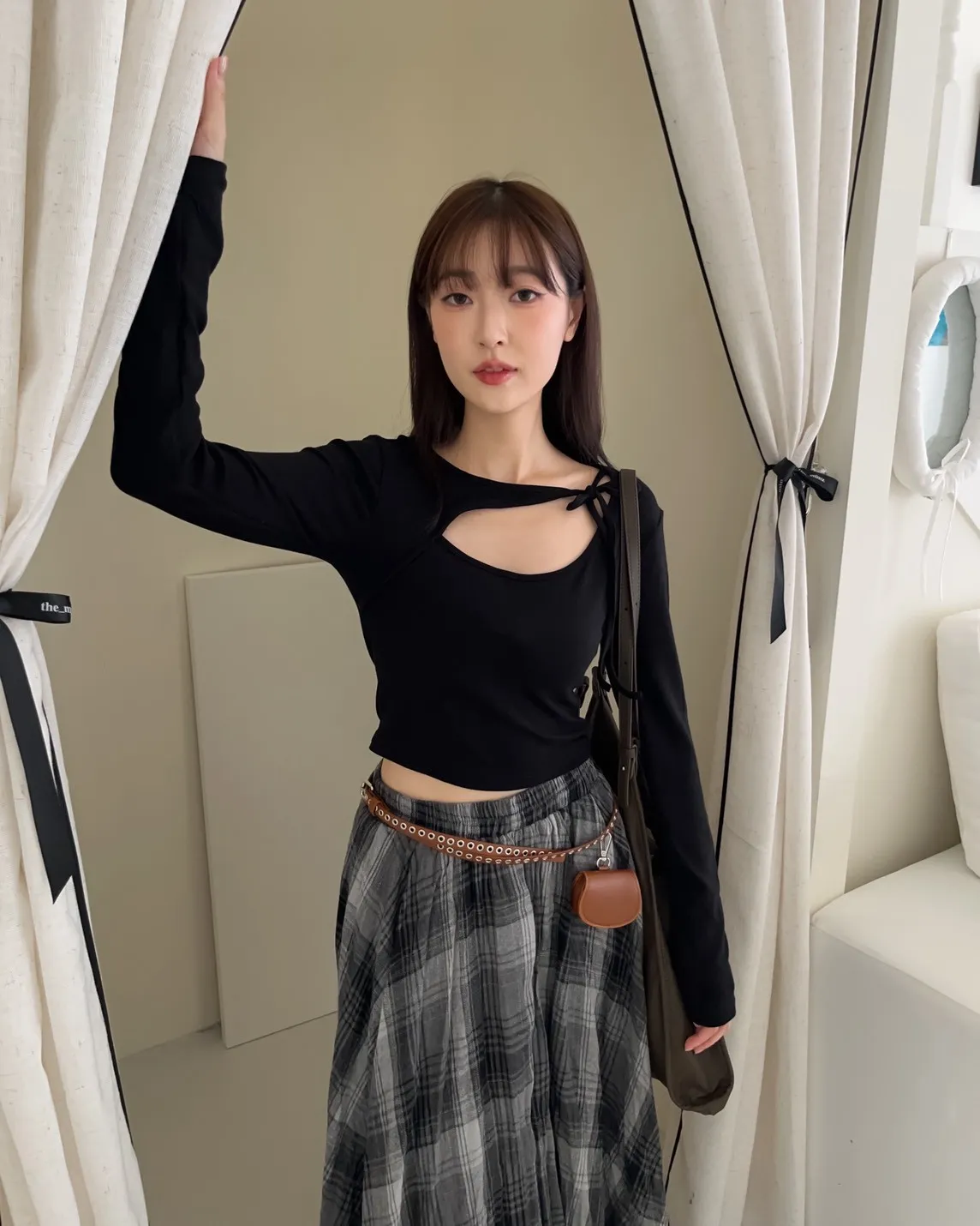 領口挖洞 綁帶造型 棉料親膚彈性好~