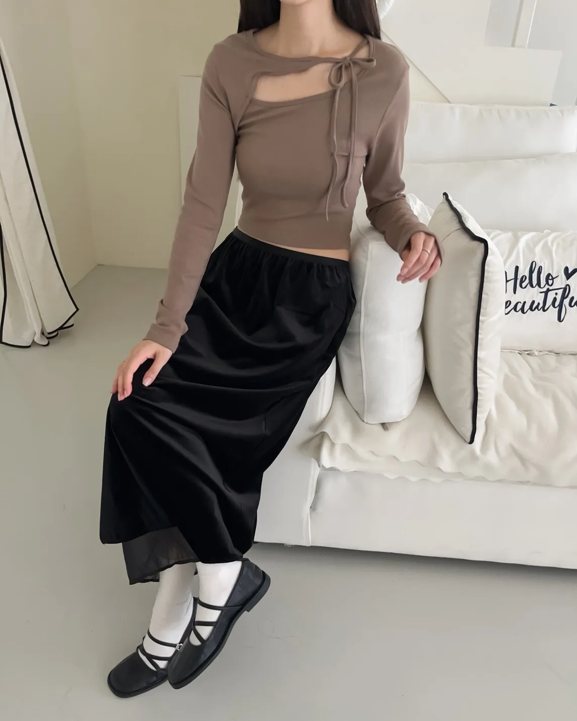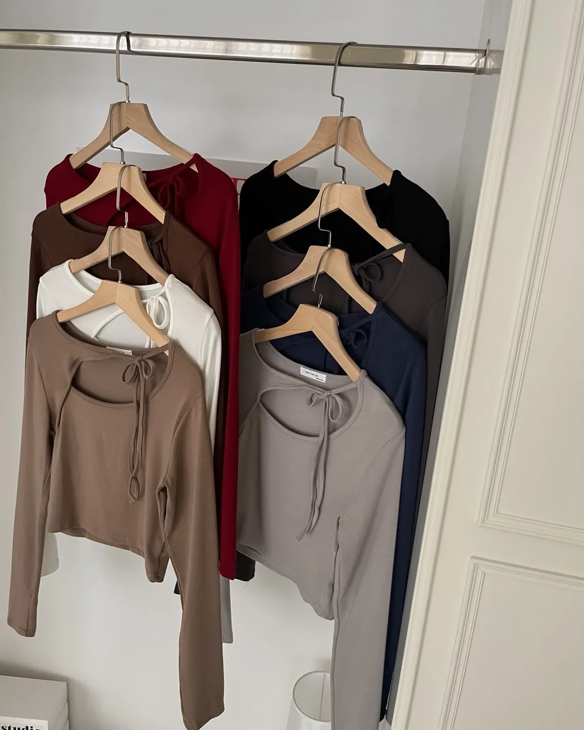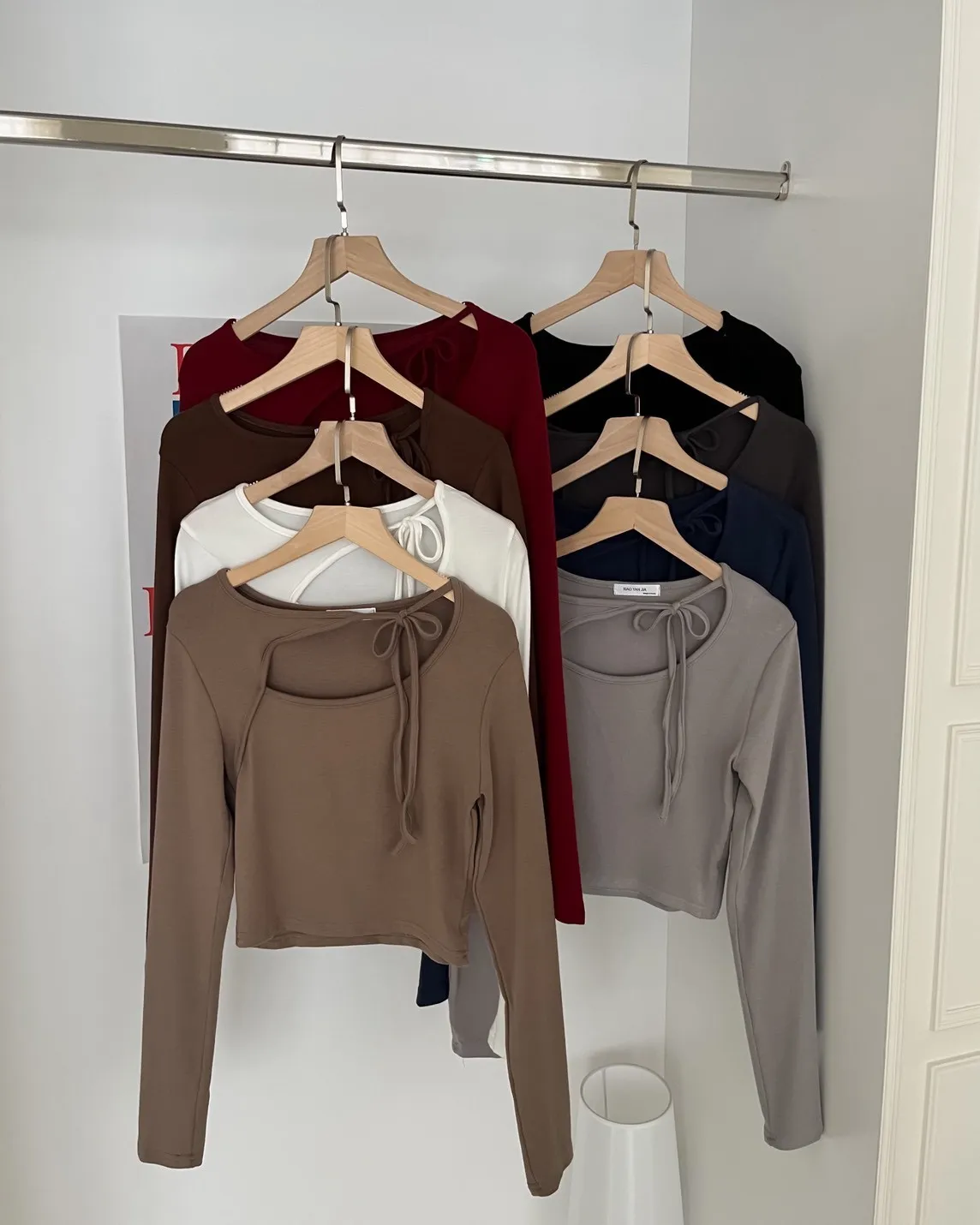 V0013(八色)挖領綁帶彈性麻糬上衣(白/淺咖啡/深咖啡/紅/深藍/淺灰/深灰/黑)