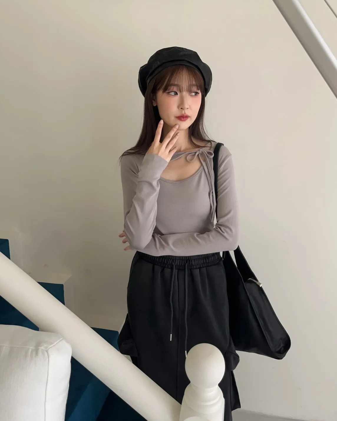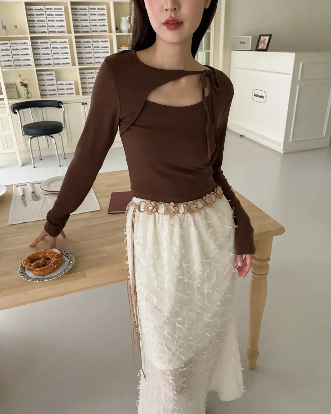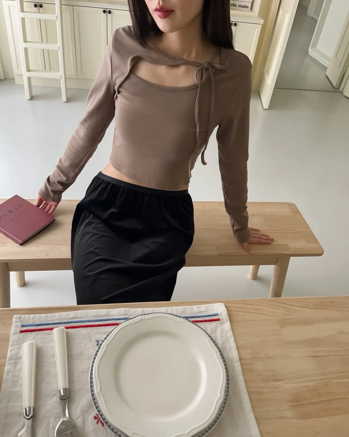 V0013(八色)挖領綁帶彈性麻糬上衣(白/淺咖啡/深咖啡/紅/深藍/淺灰/深灰/黑)