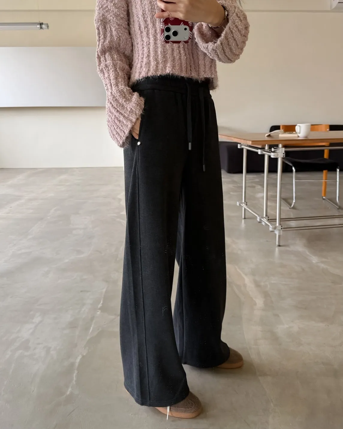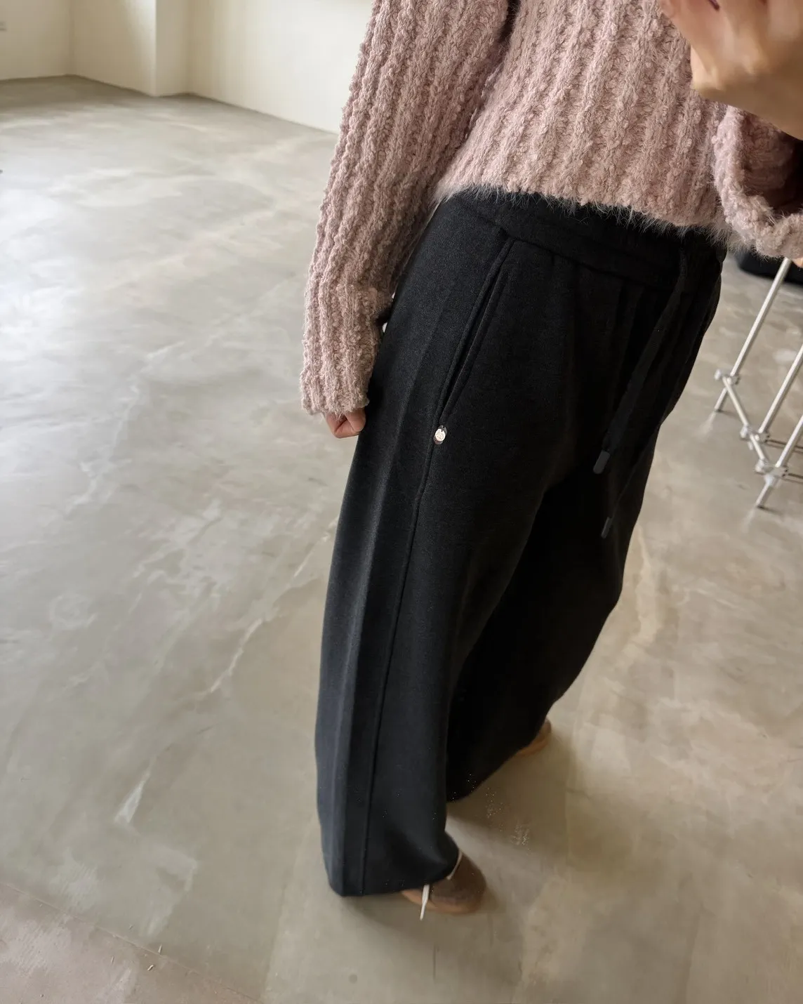 抽繩全鬆緊 建議尺寸S-小L 兩側口袋 後單側口袋 裝飾小鐵牌 內刷親膚寶寶絨