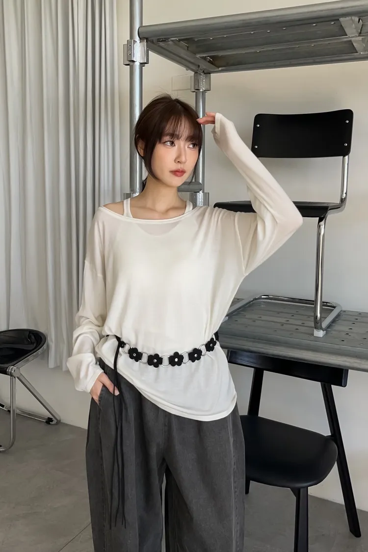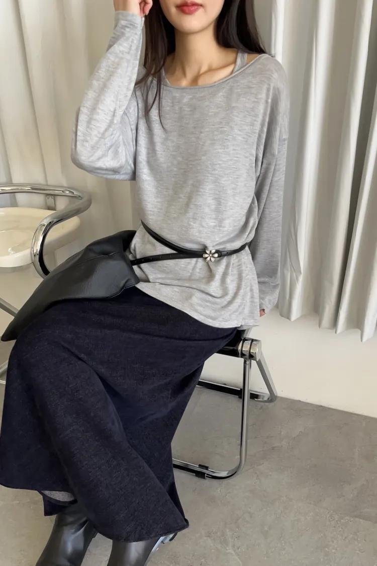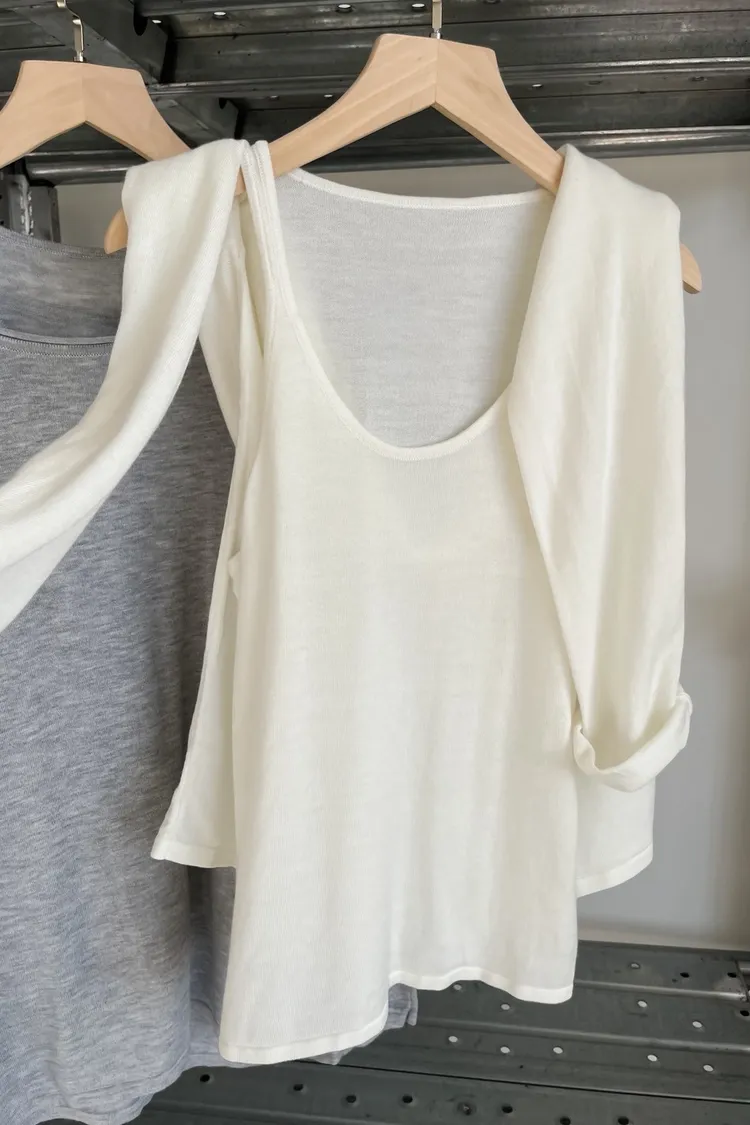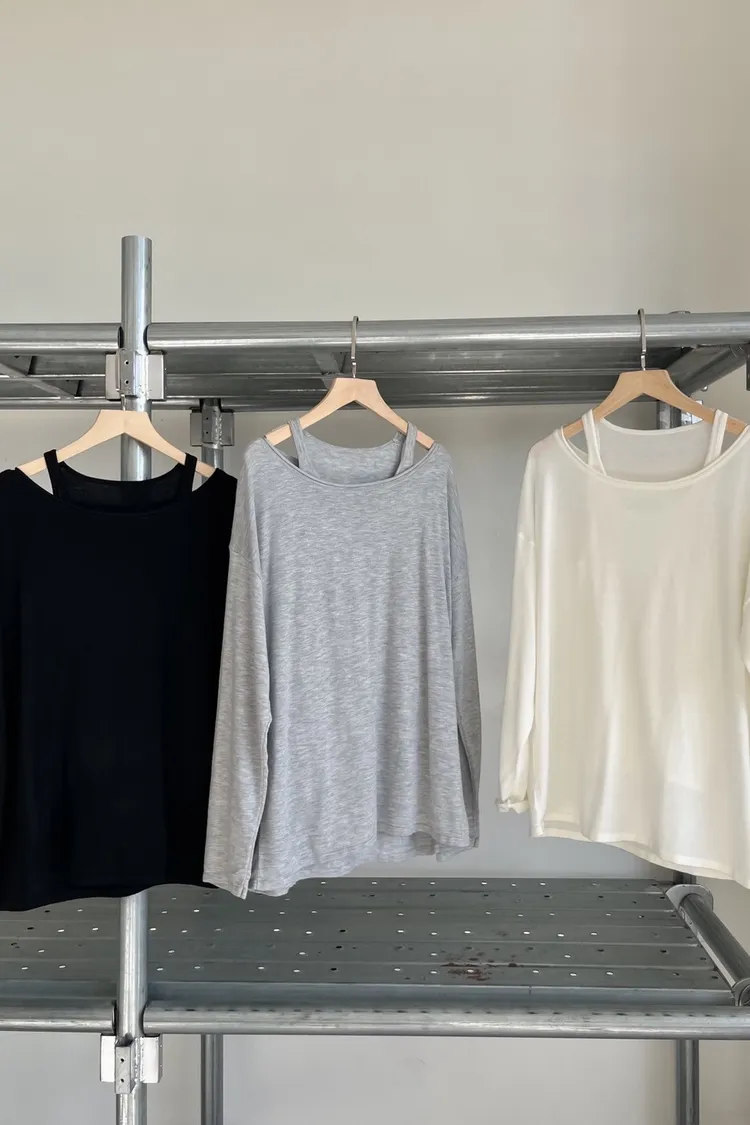 U0059(SET)超級軟小背心+大領口薄長袖(米白/灰/黑)