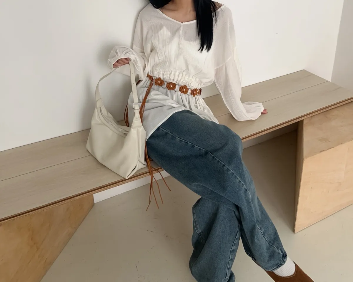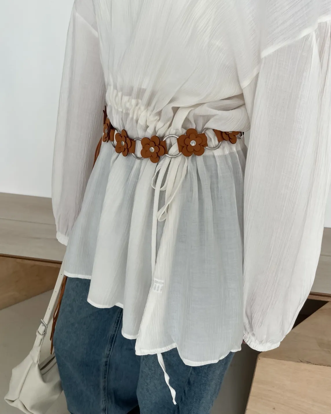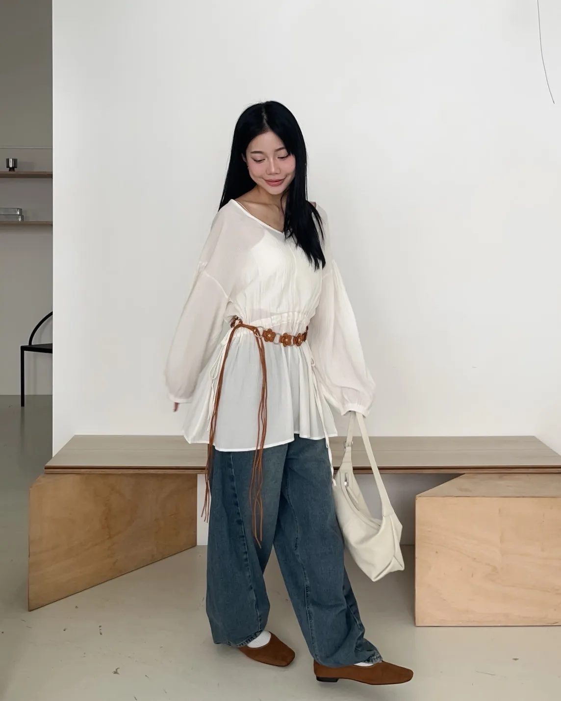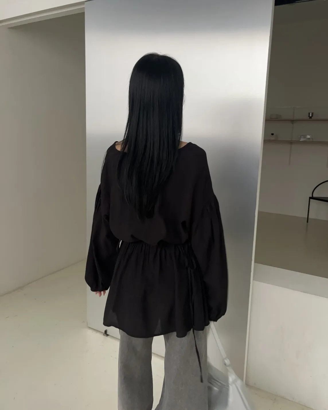 V領 微微透膚 腰部抽繩 裙襬下擺