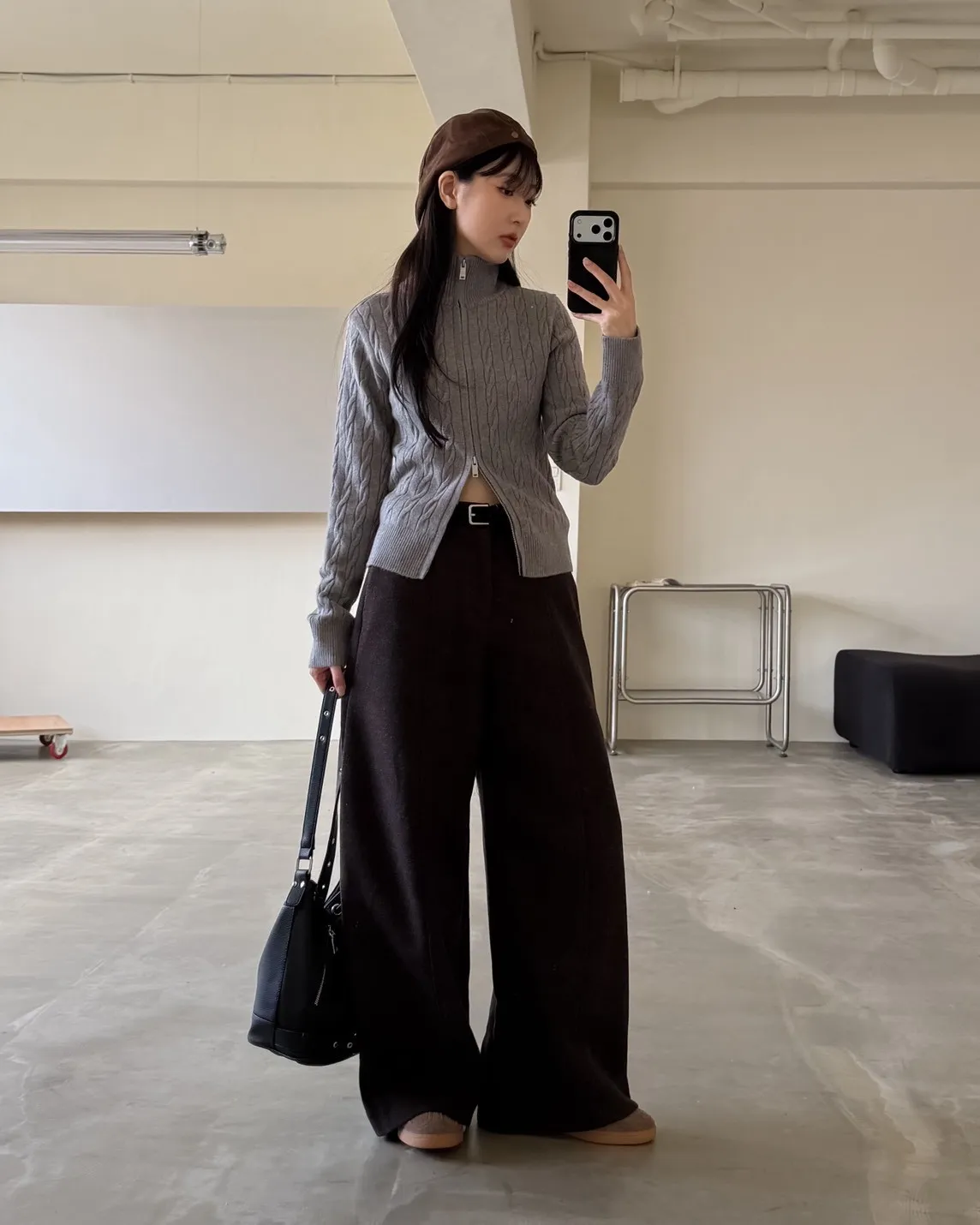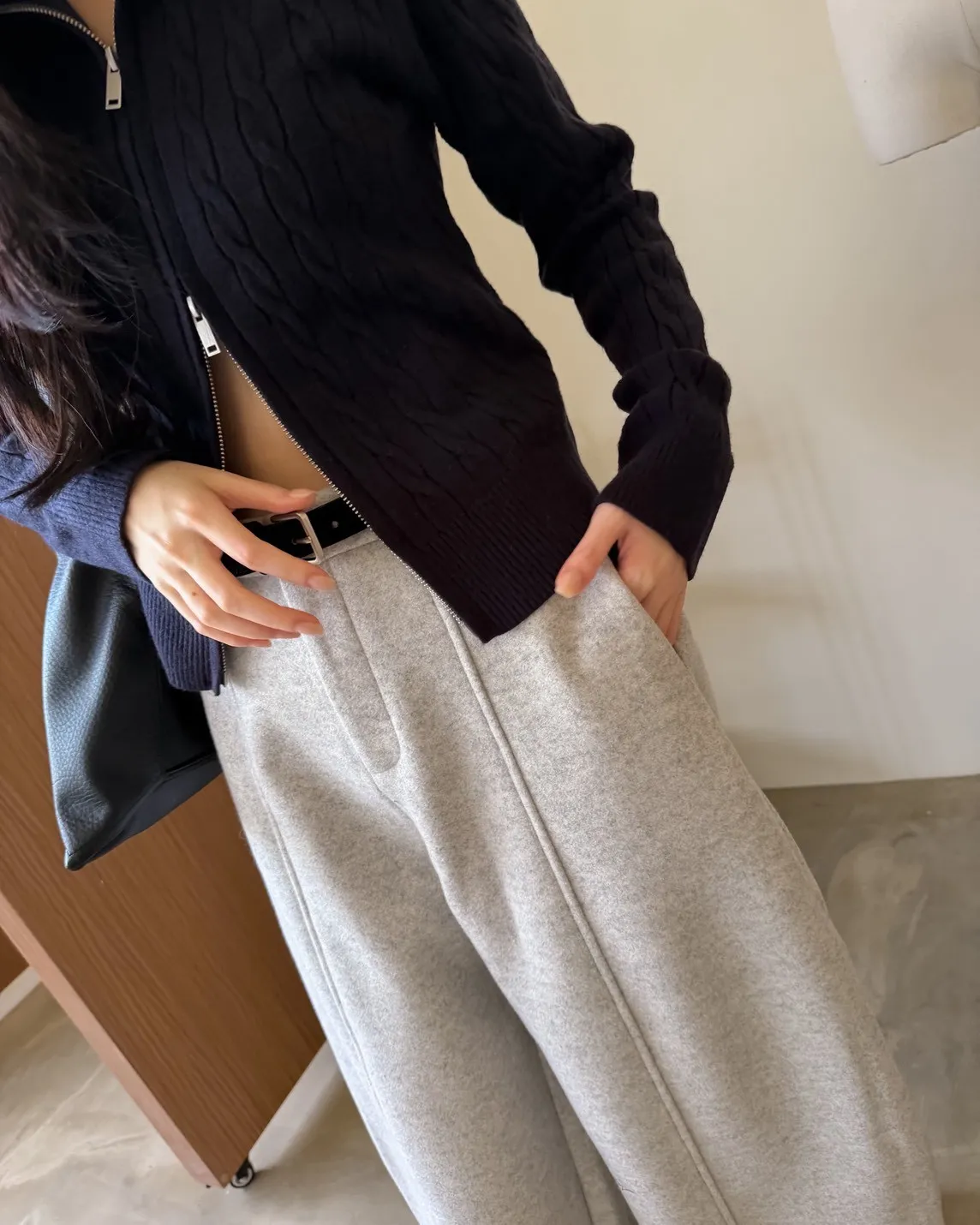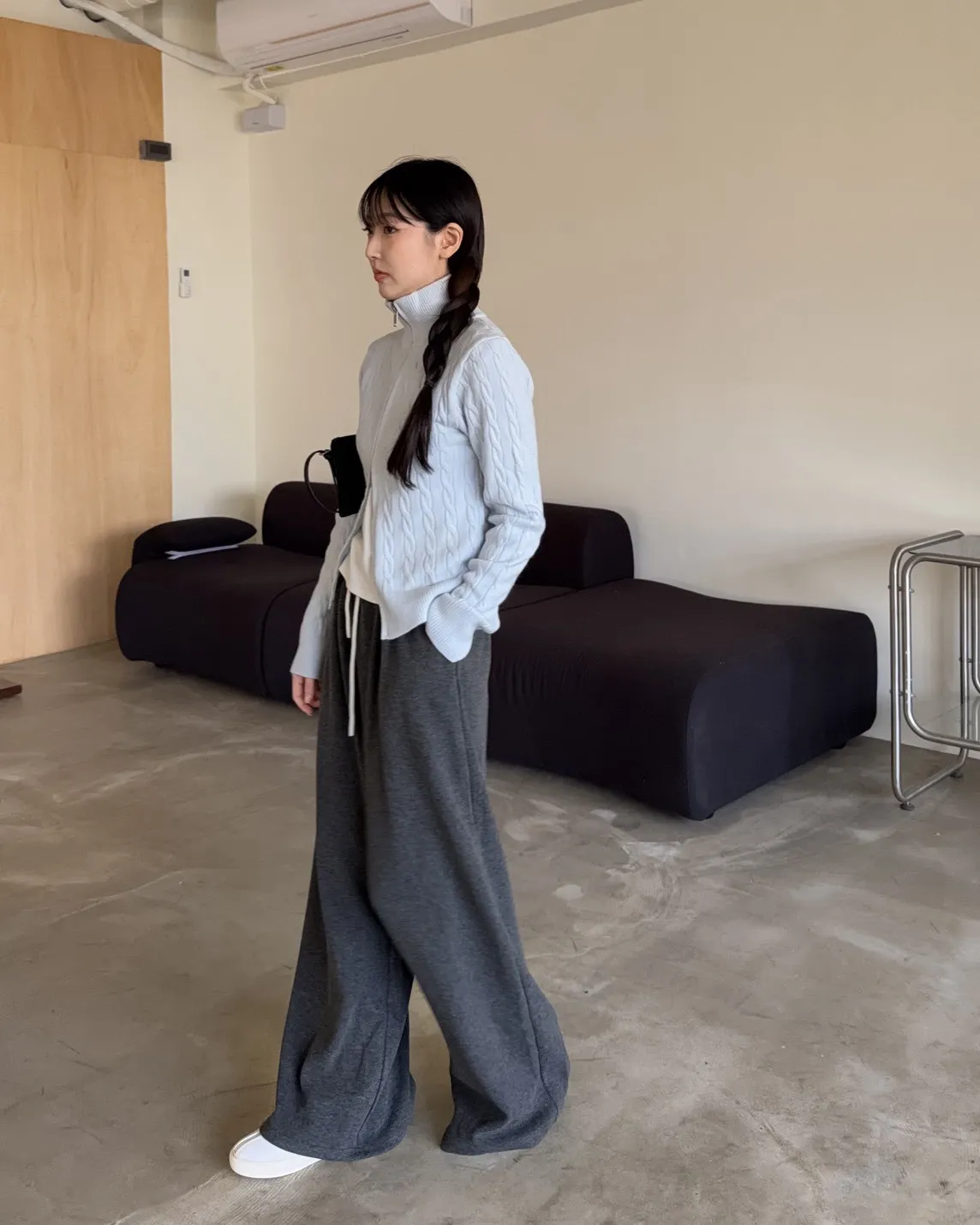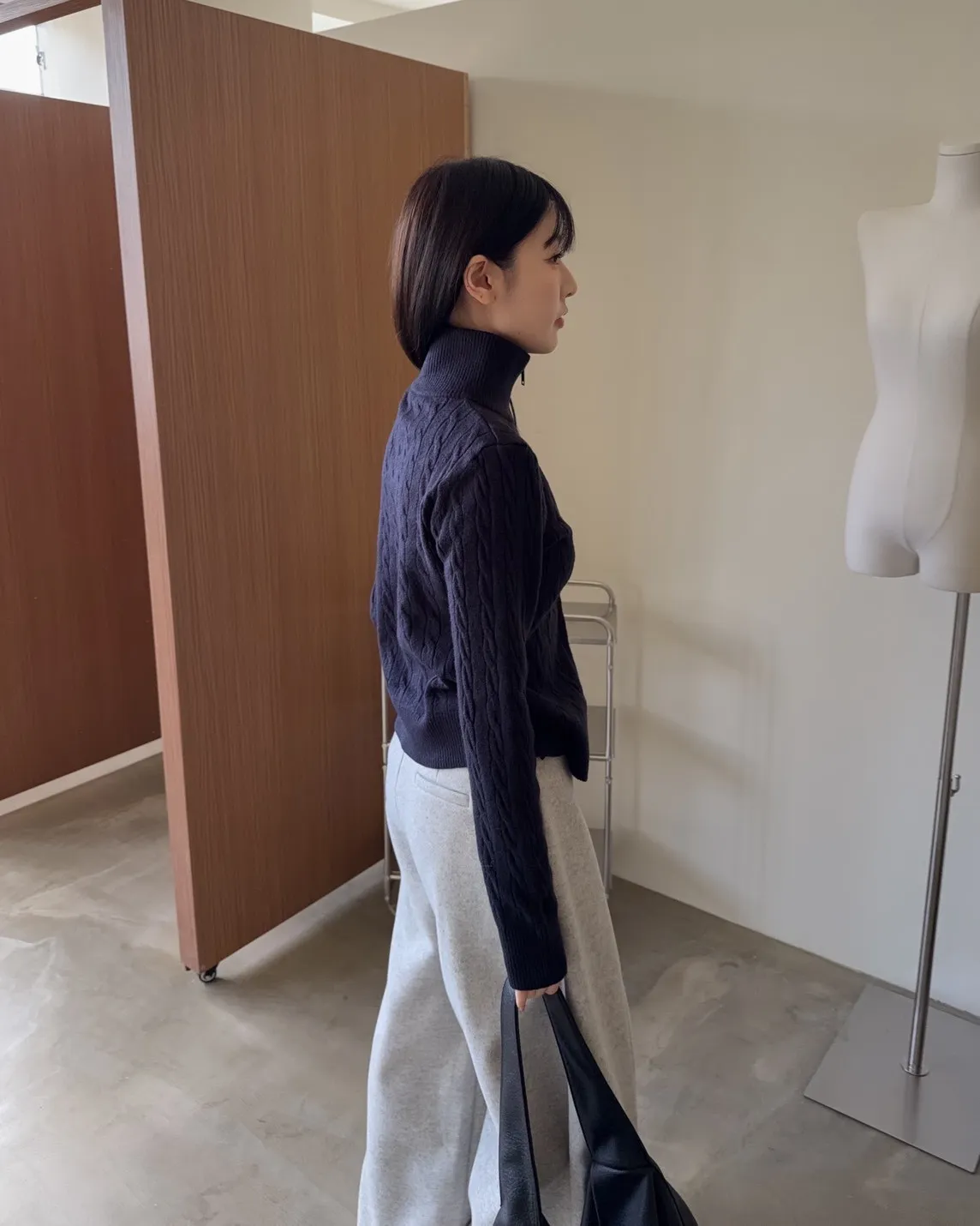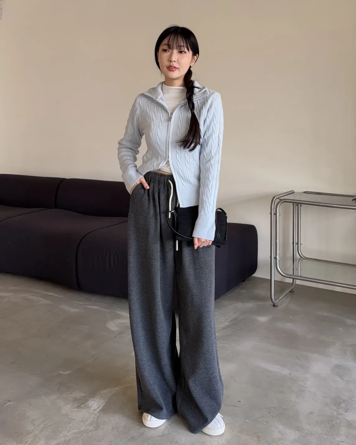 X0024高冷感麻花立領雙拉鍊毛衣(米白/淺藍/深藍/灰)