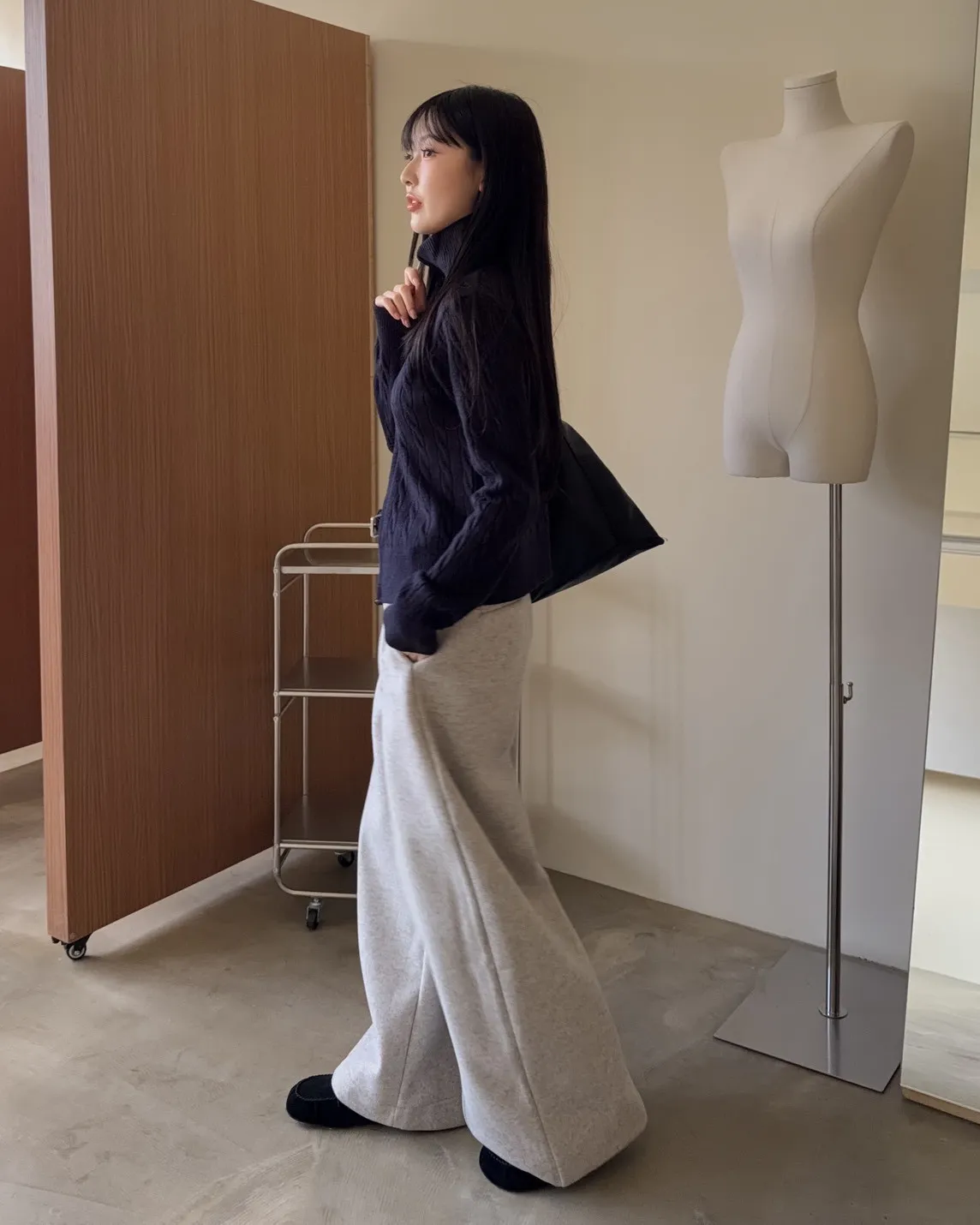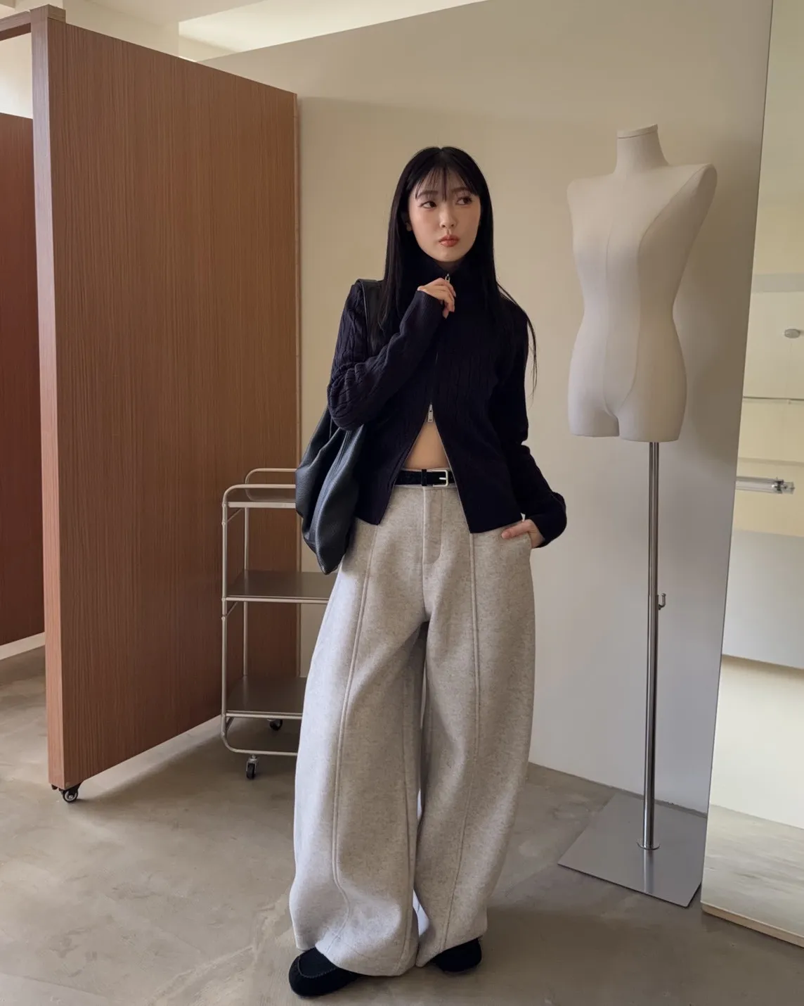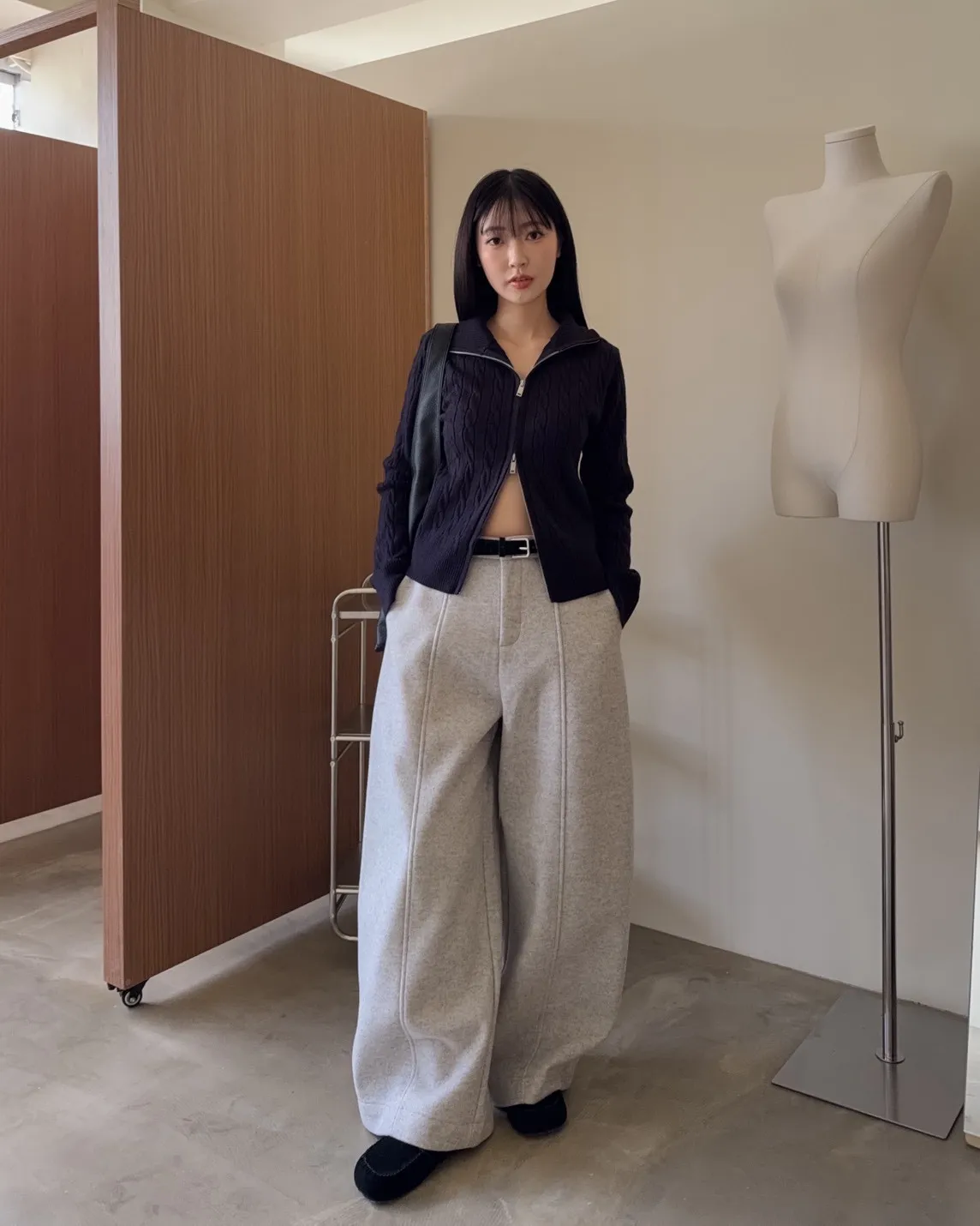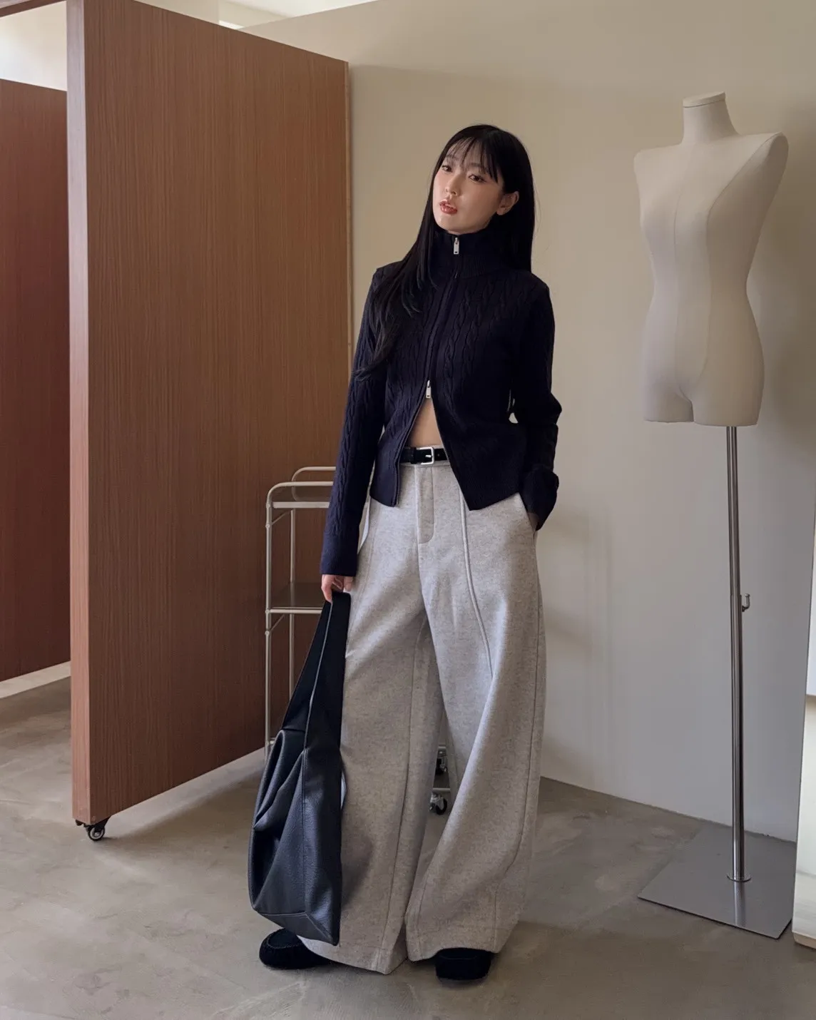 X0024高冷感麻花立領雙拉鍊毛衣(米白/淺藍/深藍/灰)