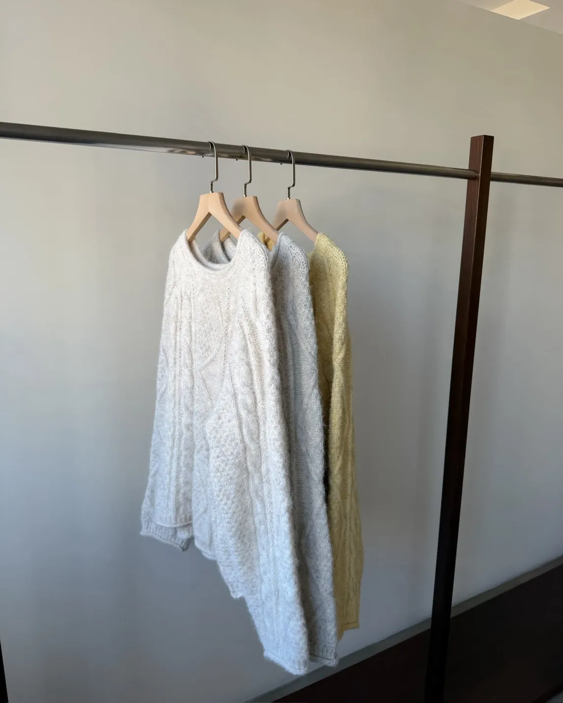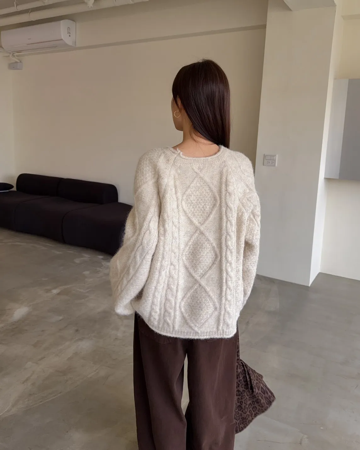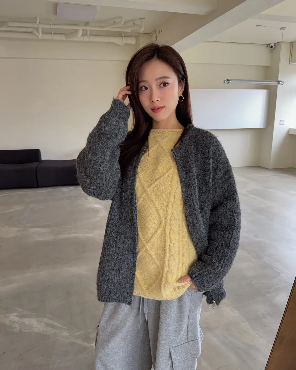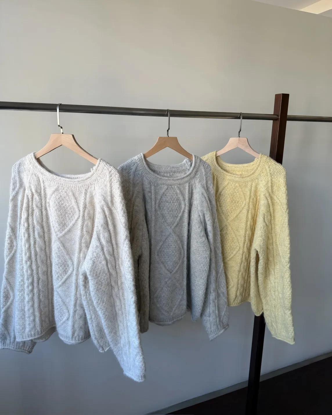 X0044大菱格麻花混毛毛衣(燕麥/黃/灰)