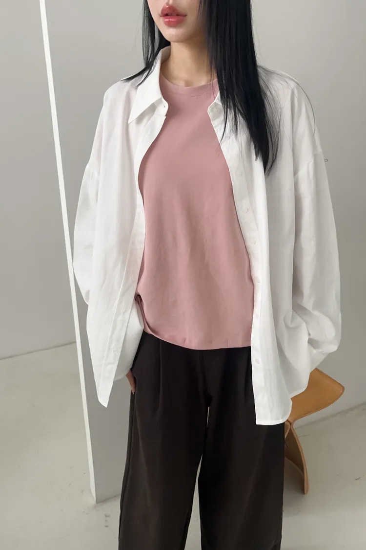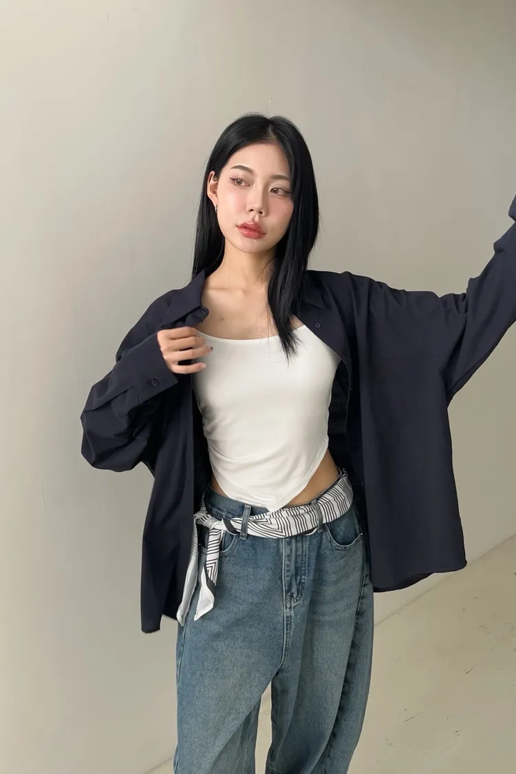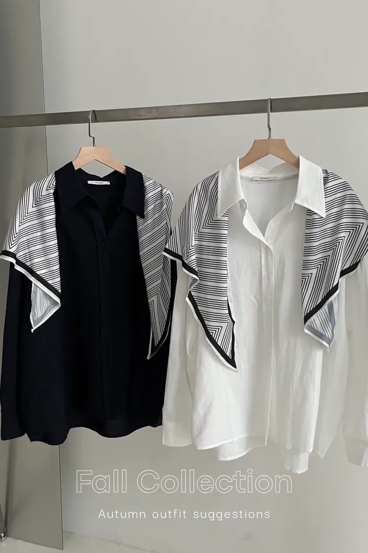 U0036(附三角巾)鹽系女孩尖領棉麻襯衫(白/深藍)