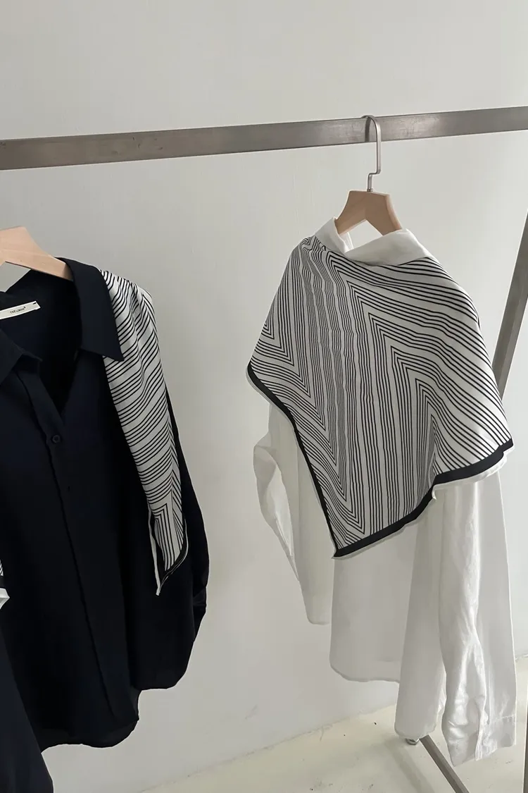 附條紋三角巾(可當披肩/頭巾/繫在褲頭當裝飾...等) 同色系鈕扣 前短後長 棉麻布料無彈性