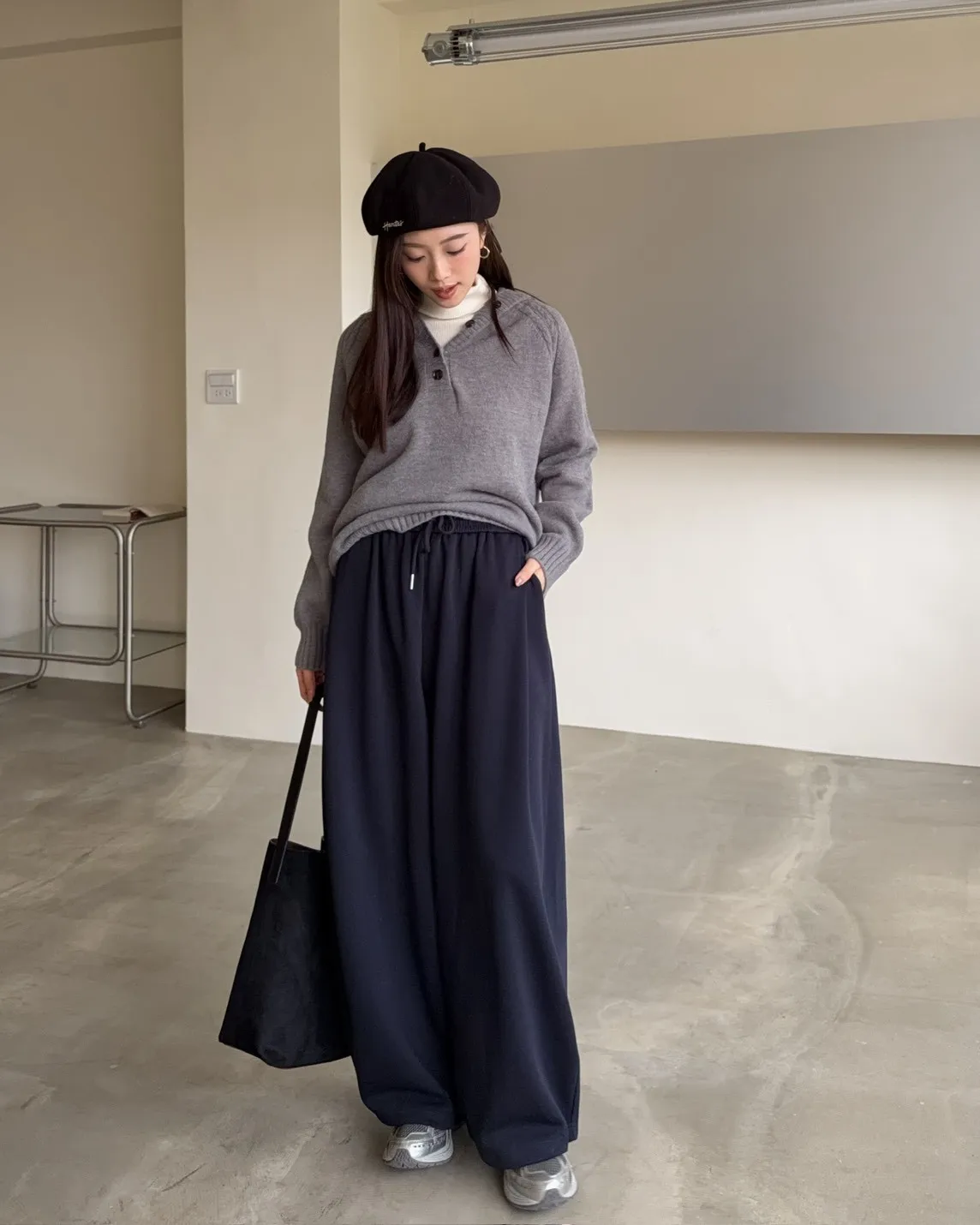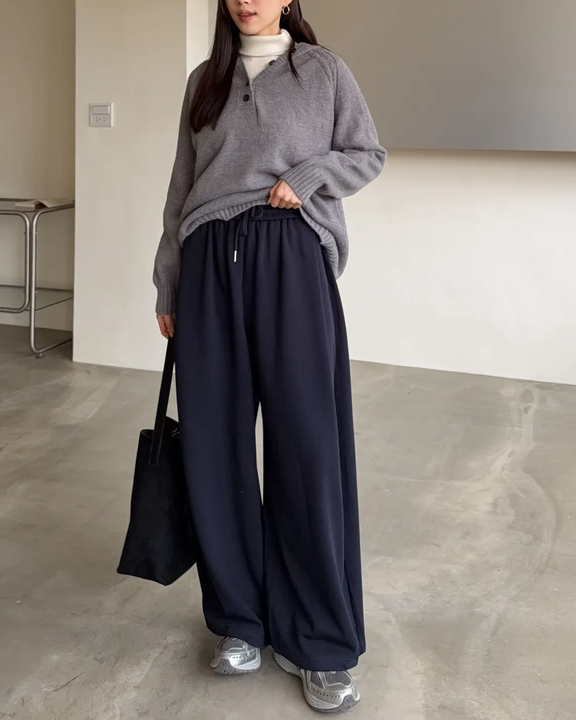 X0043最舒服那種~超寬版藏肉棉褲(灰/深藍)