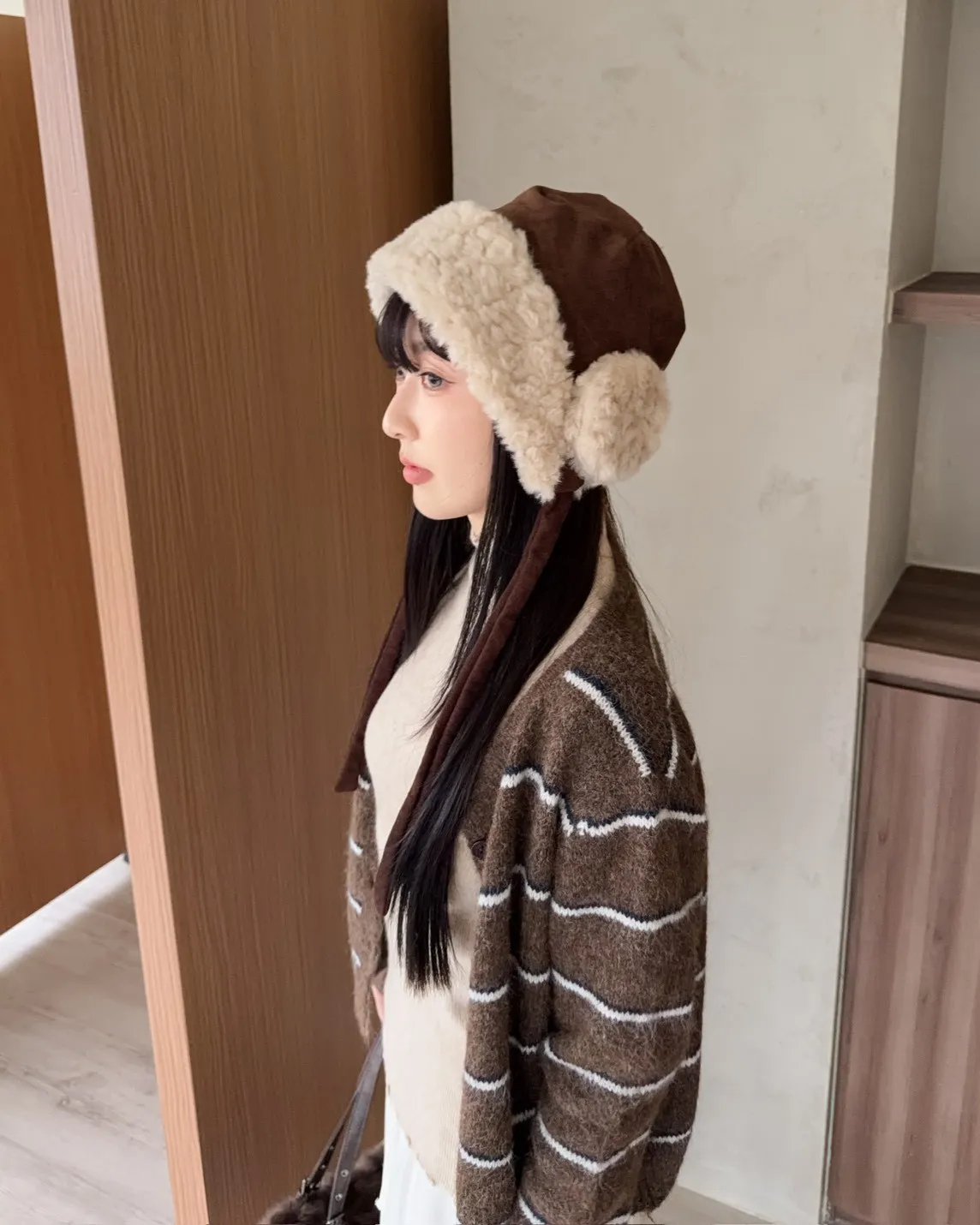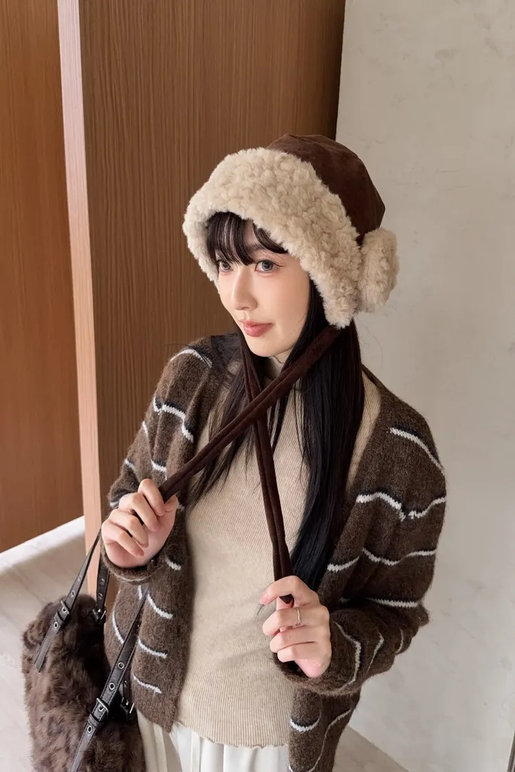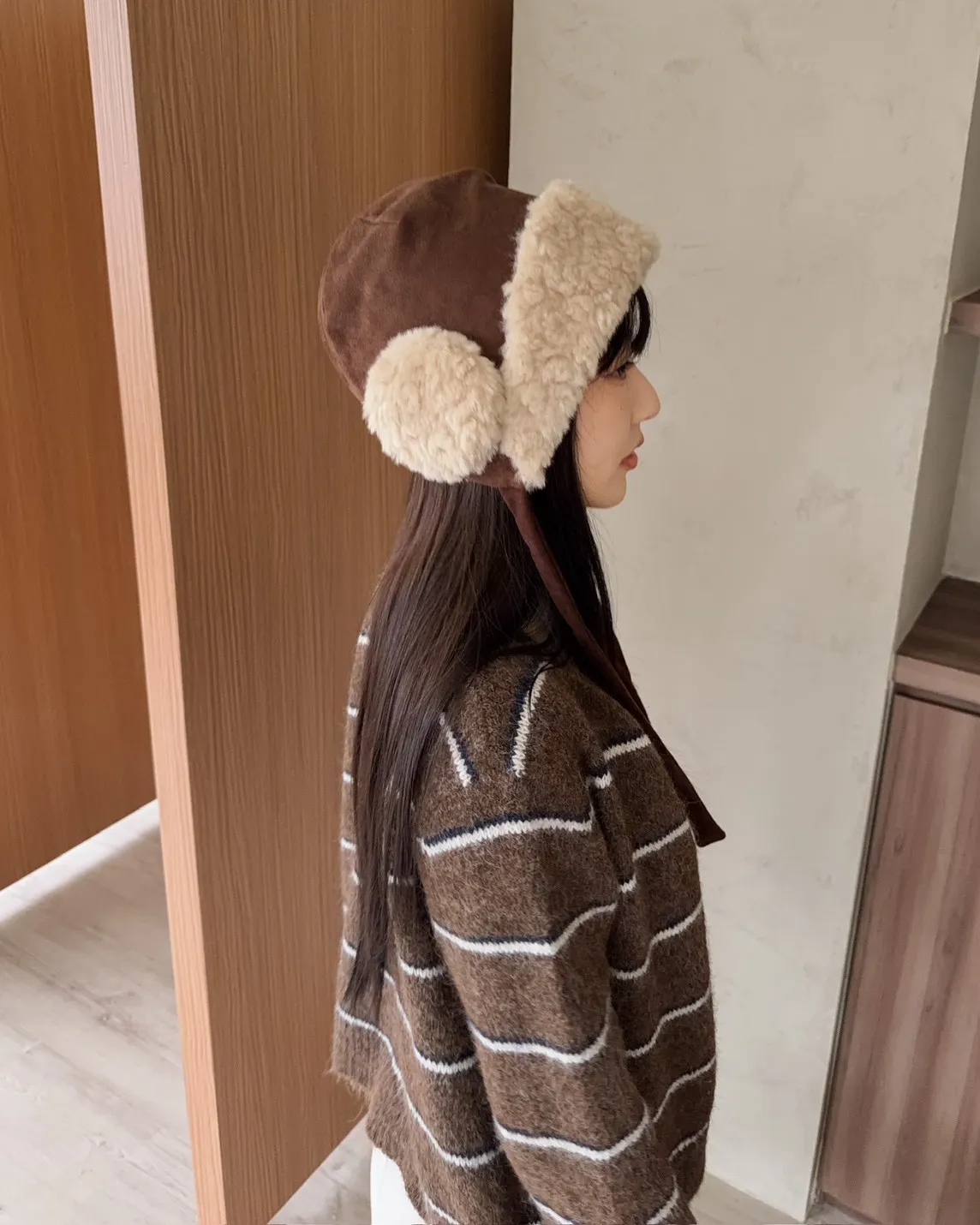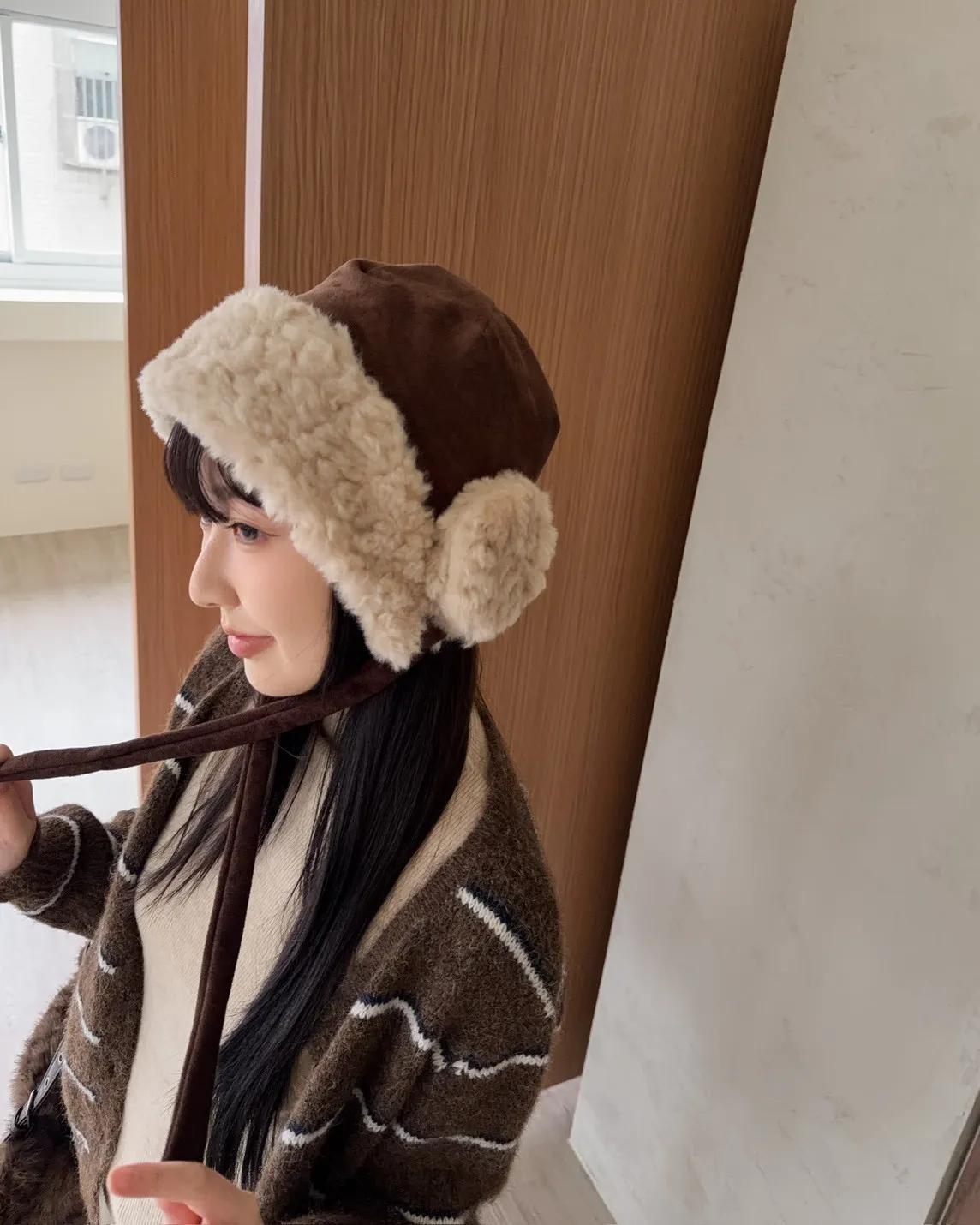 Y0019飛行員QQ毛護耳帽(焦糖/咖啡/黑)