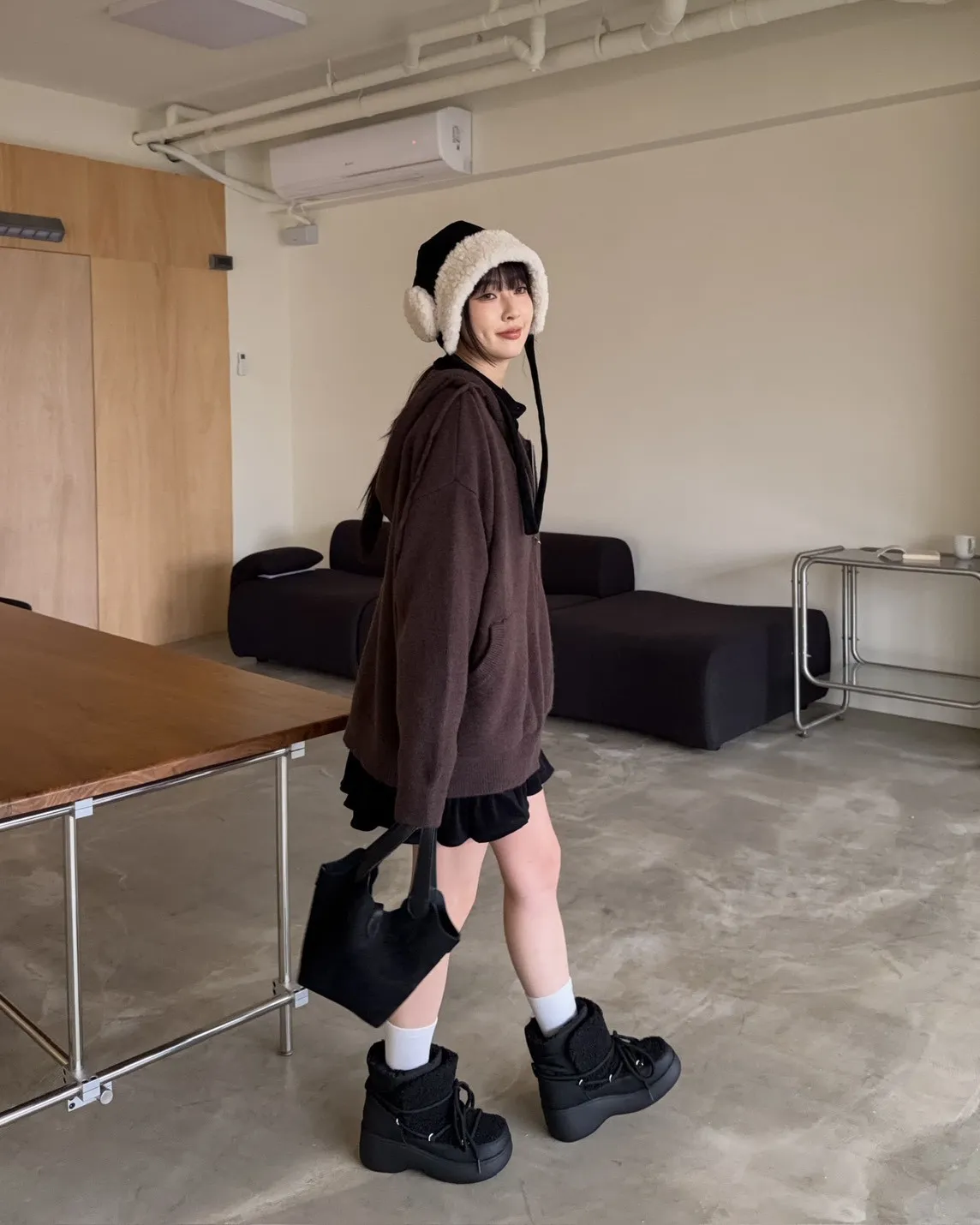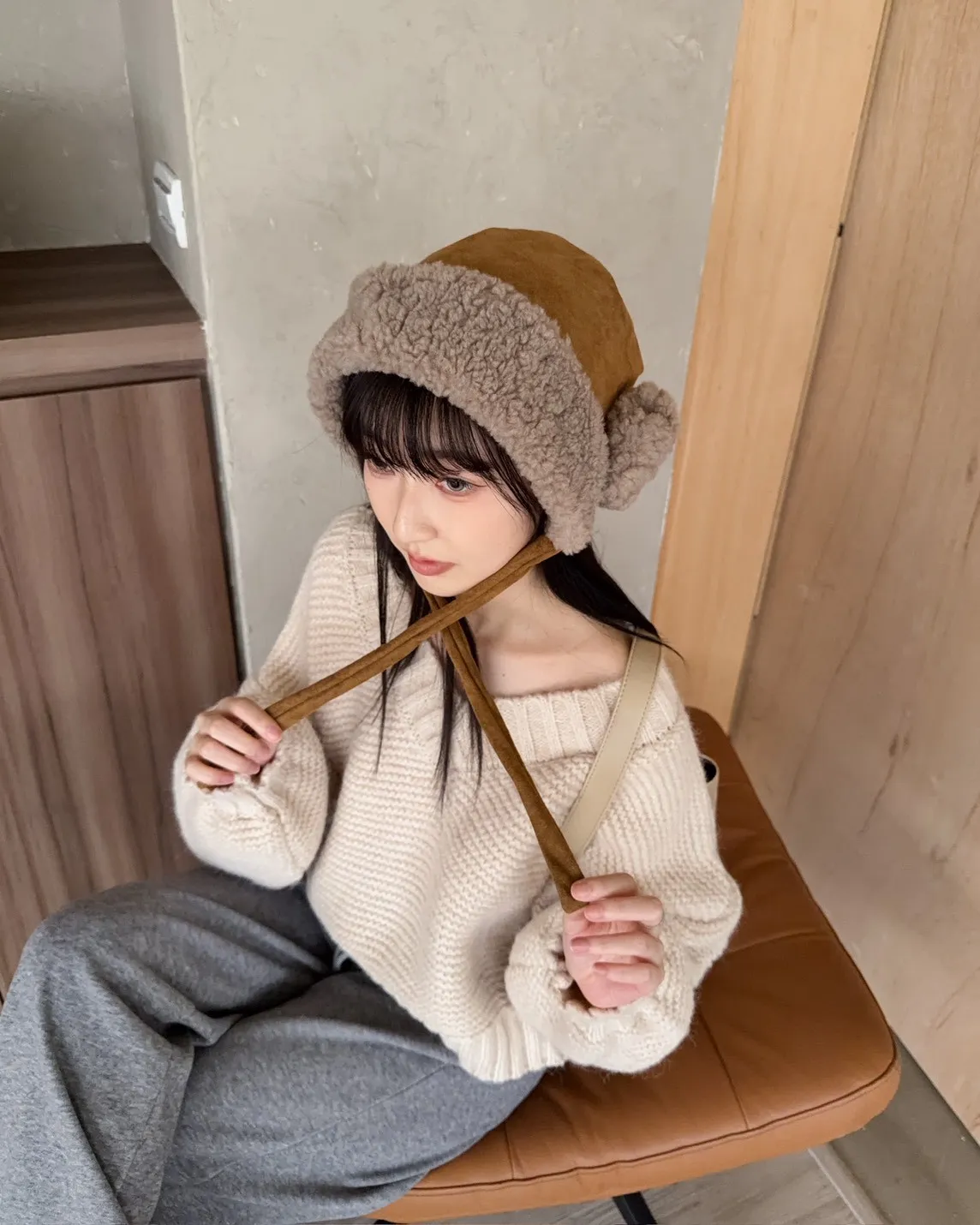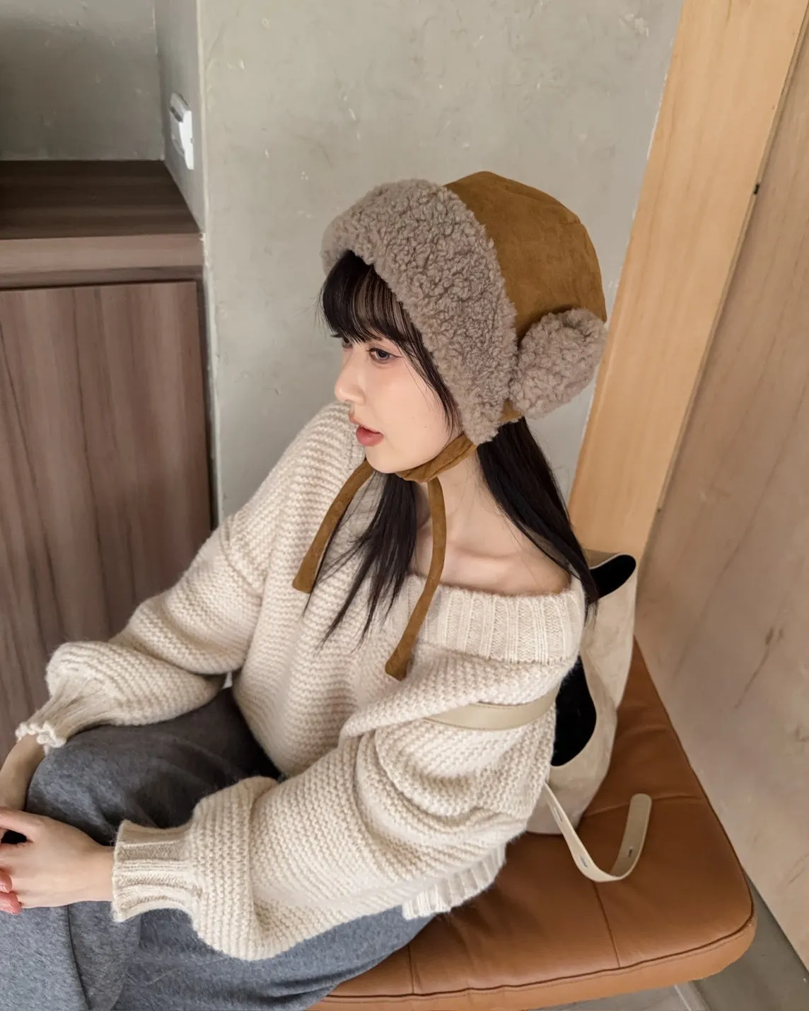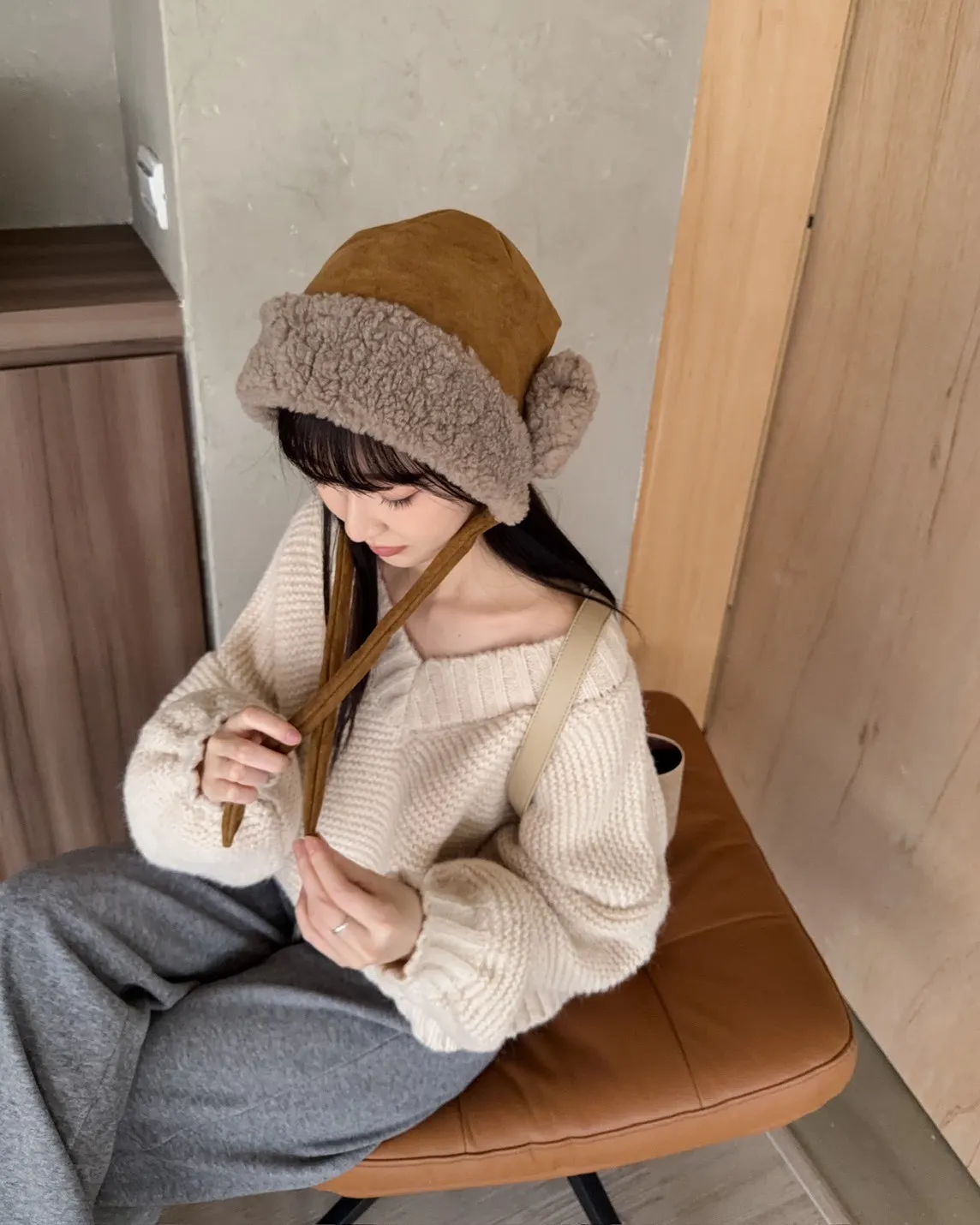Y0019飛行員QQ毛護耳帽(焦糖/咖啡/黑)
