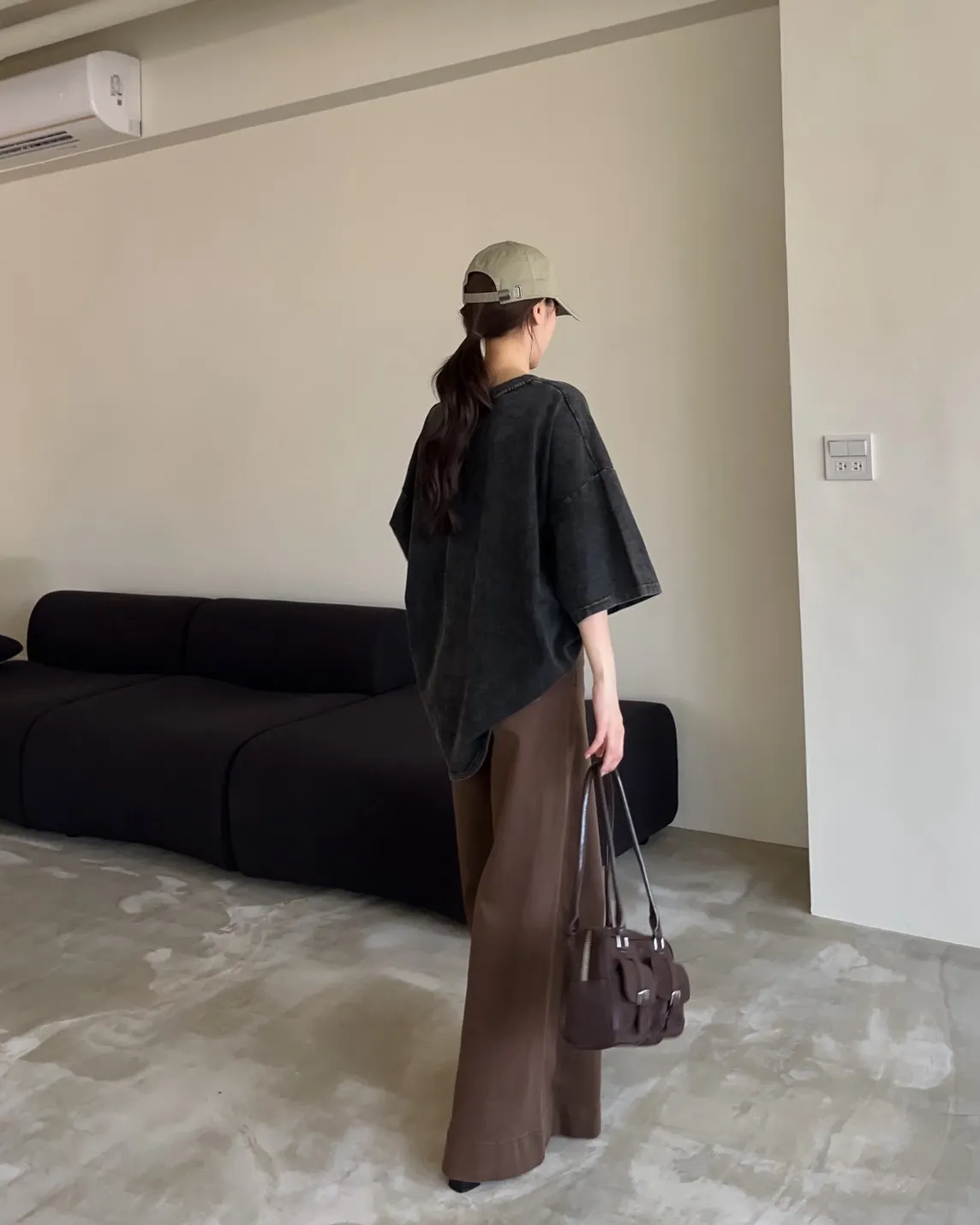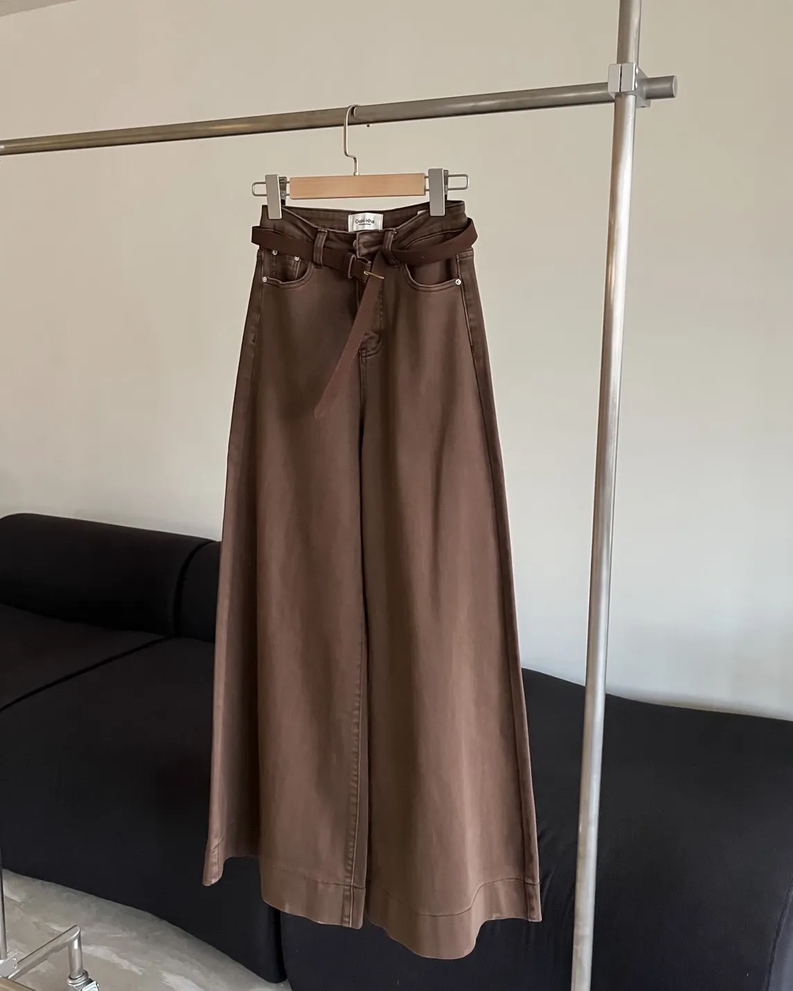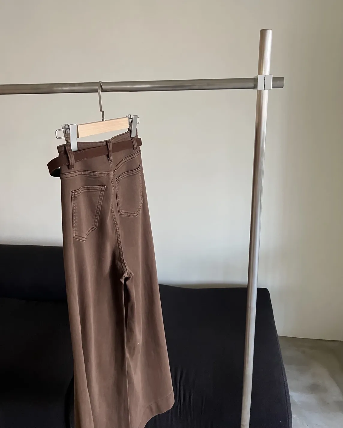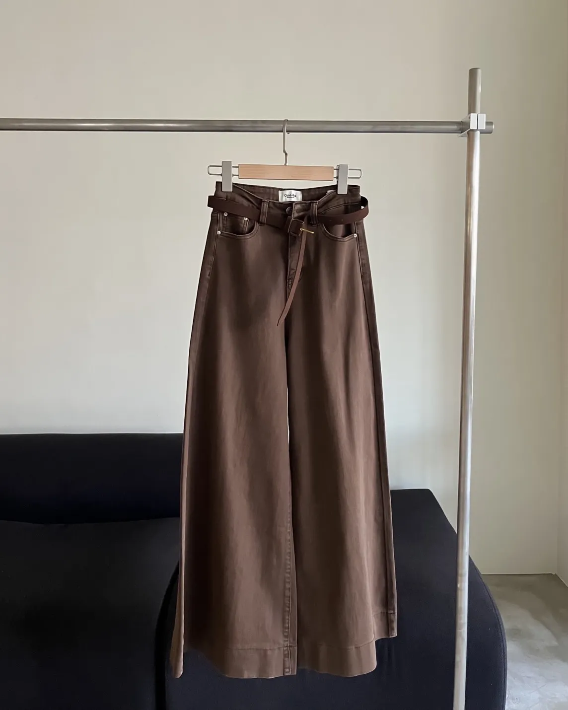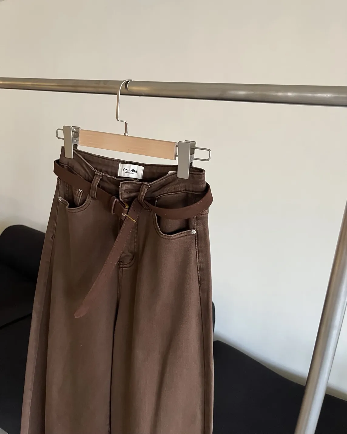 V0040(附麂皮帶)苦甜可可帥氣寬直筒褲