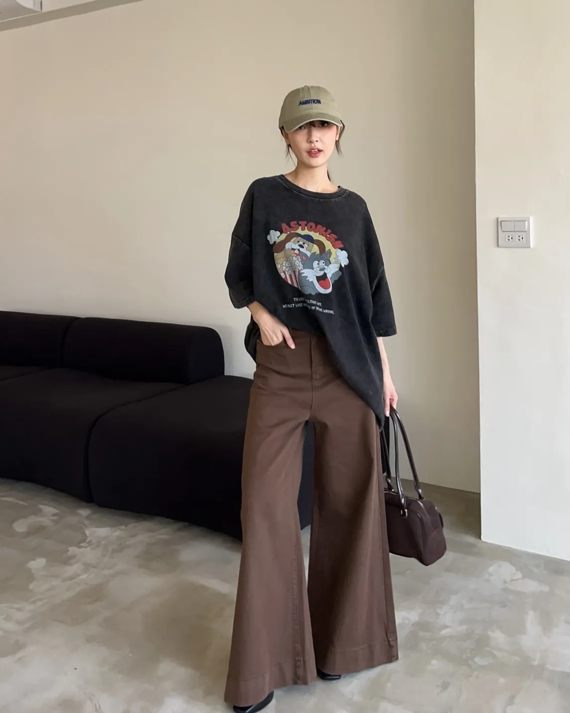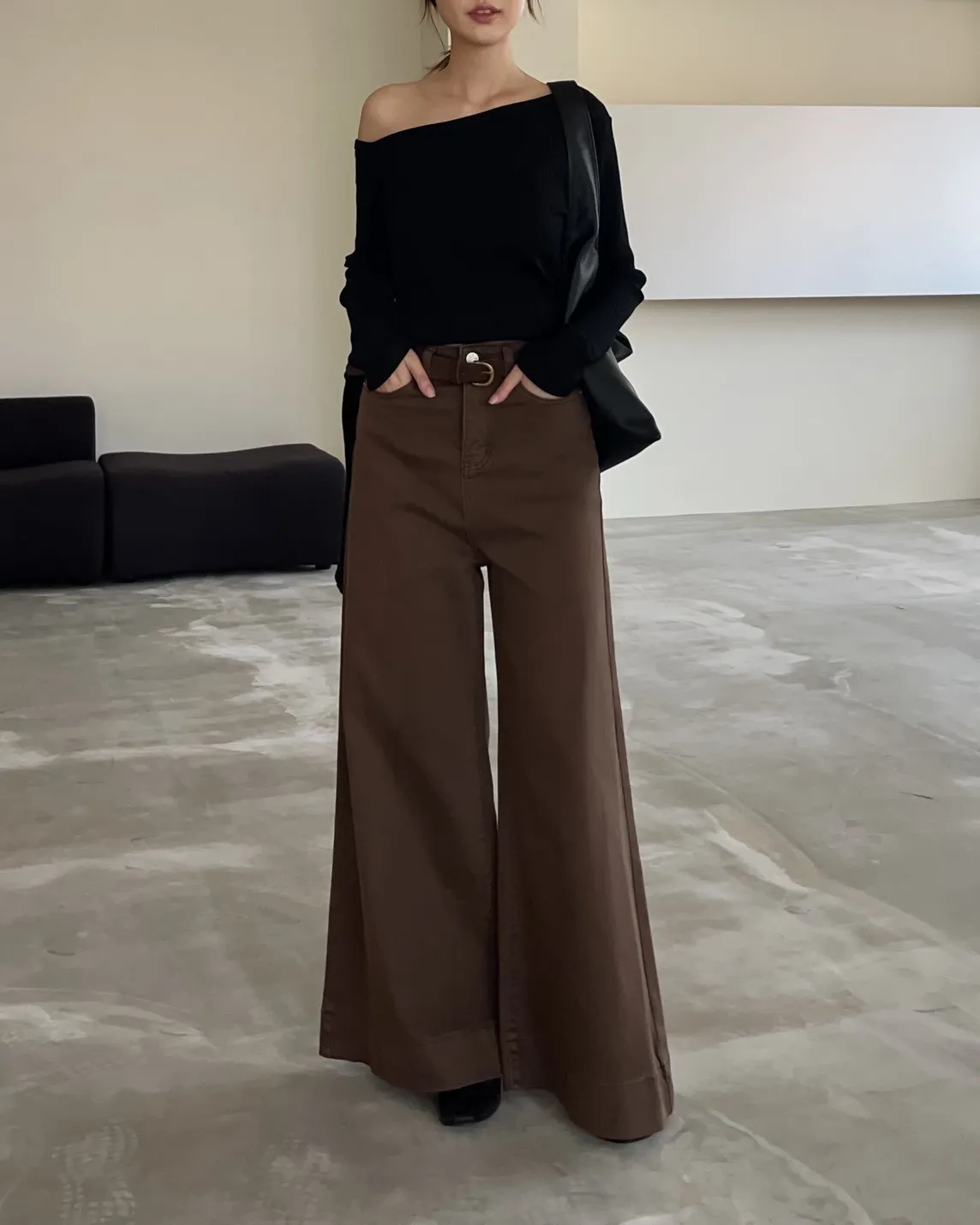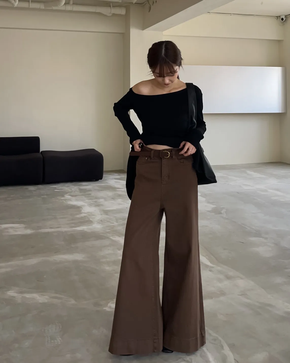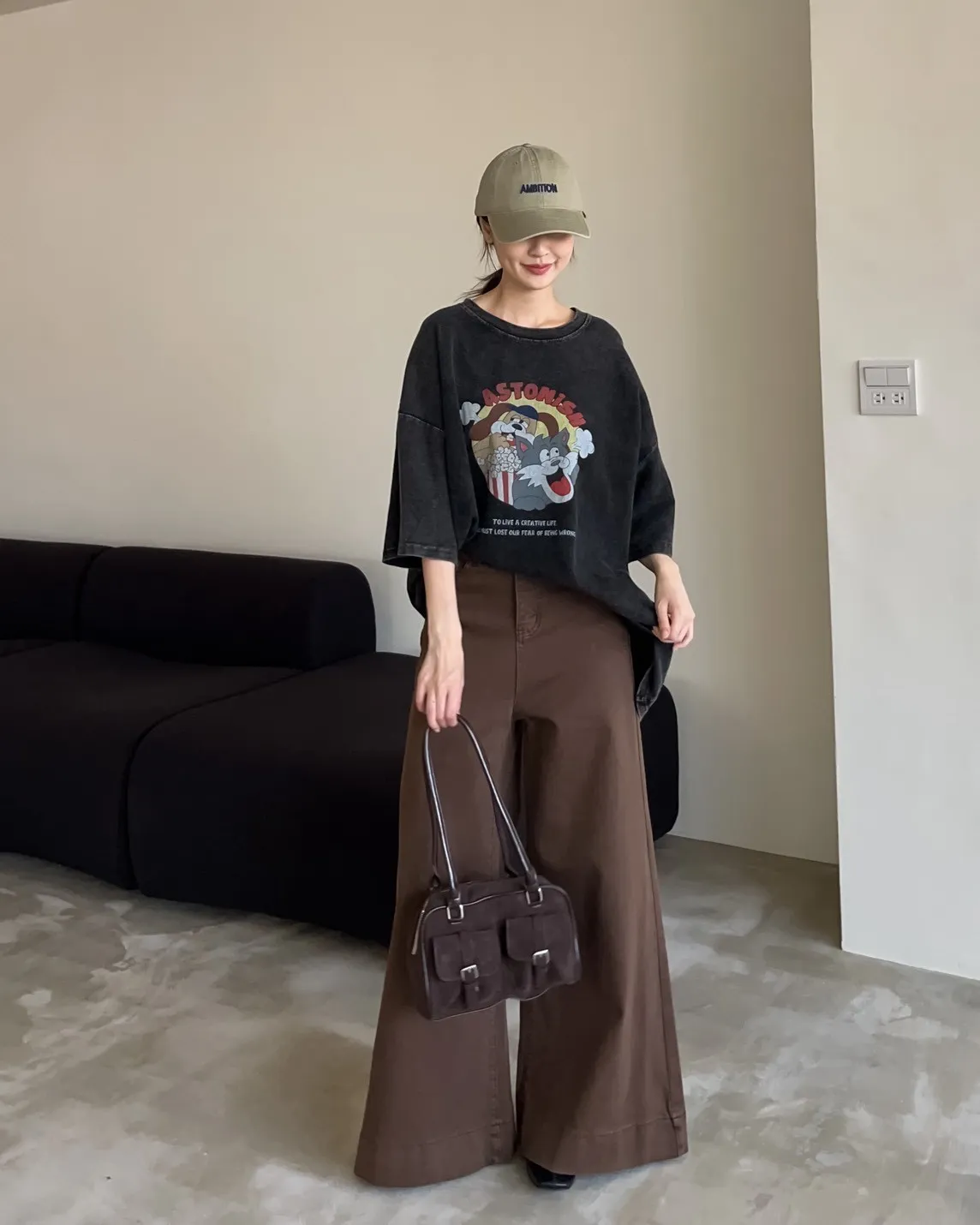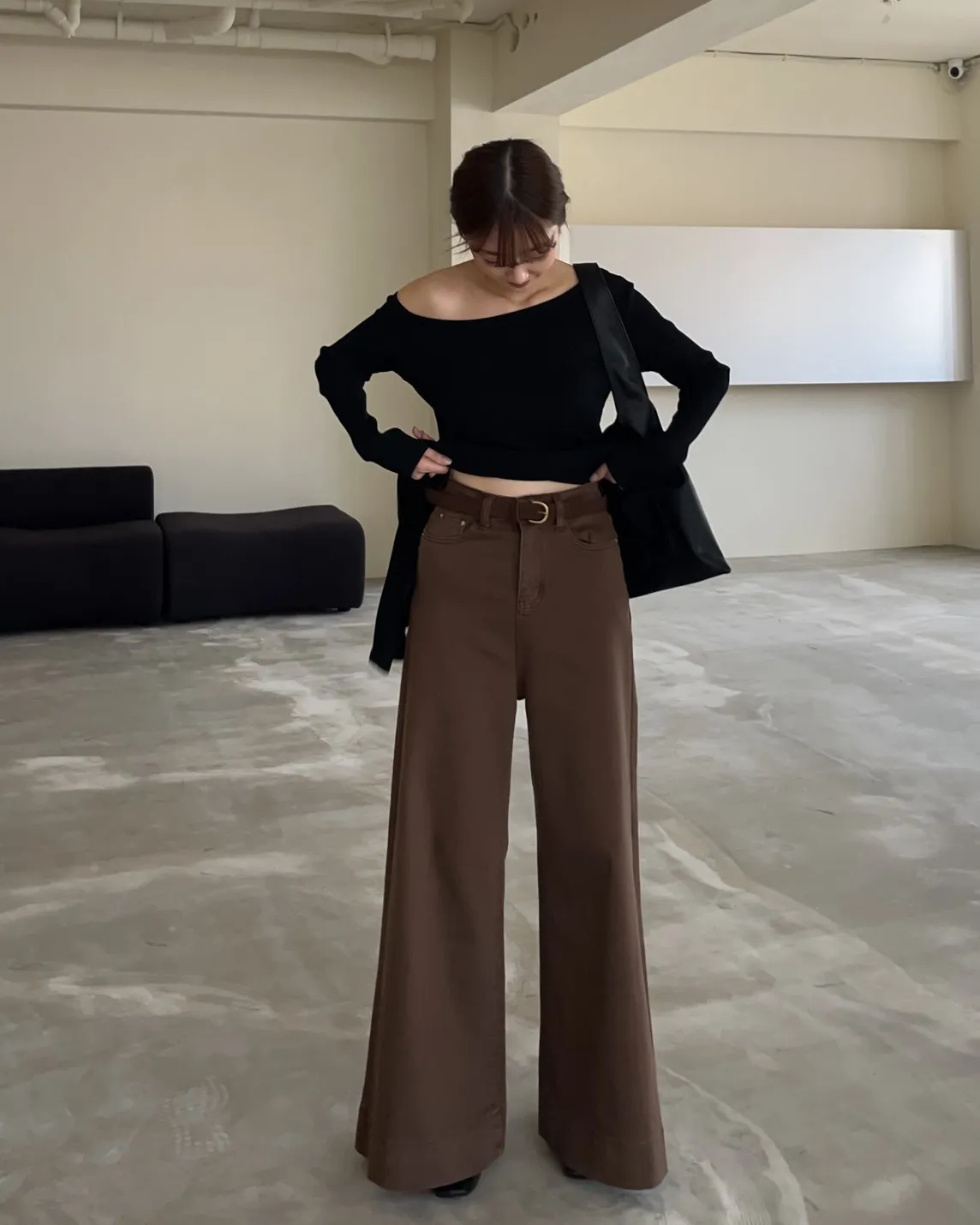 V0040(附麂皮帶)苦甜可可帥氣寬直筒褲