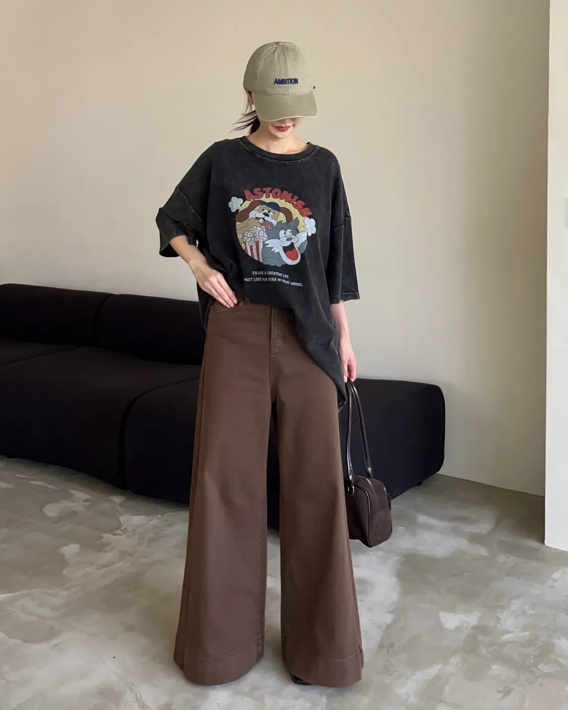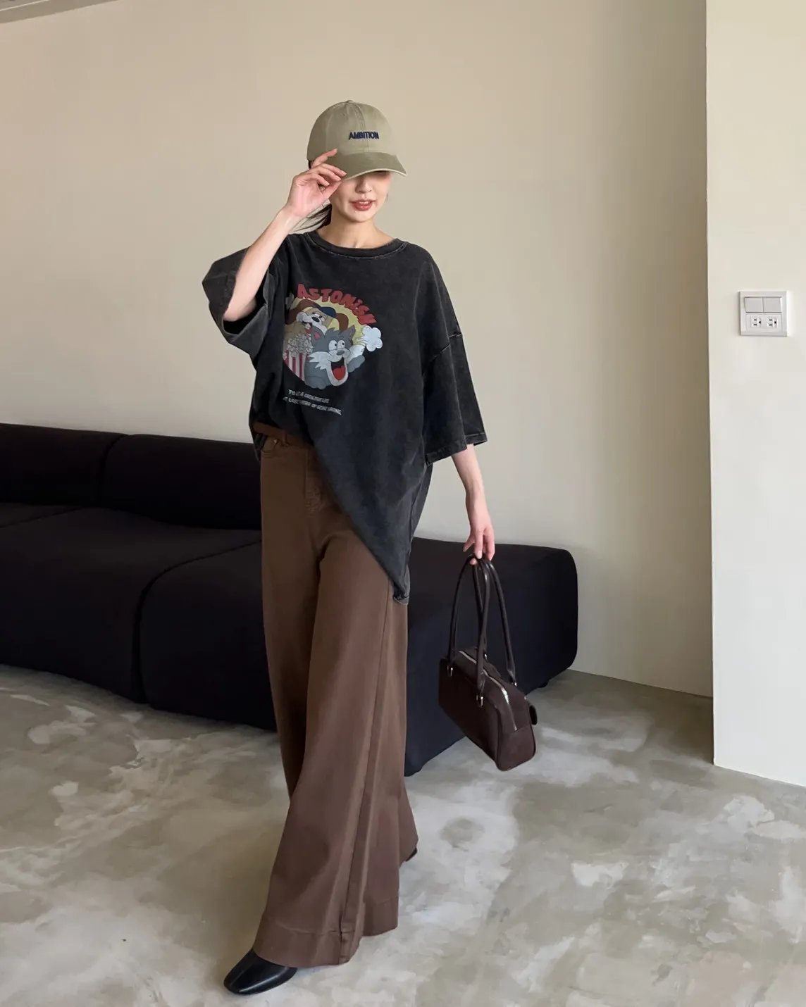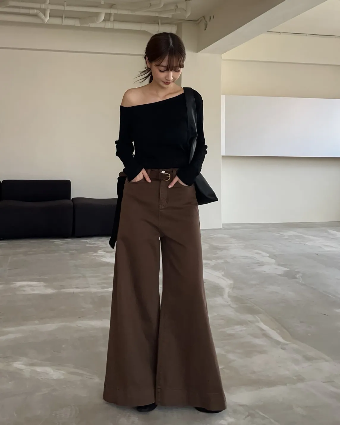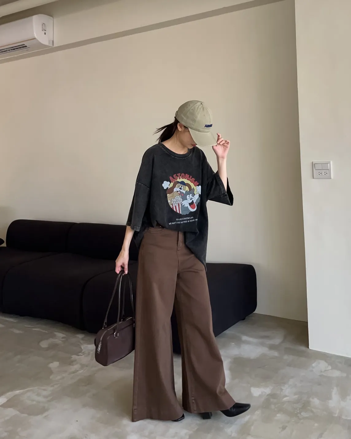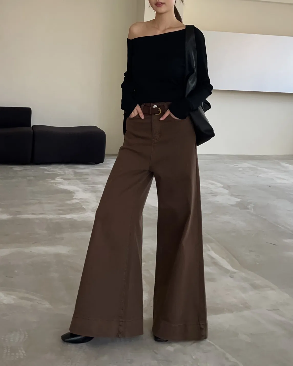 V0040(附麂皮帶)苦甜可可帥氣寬直筒褲
