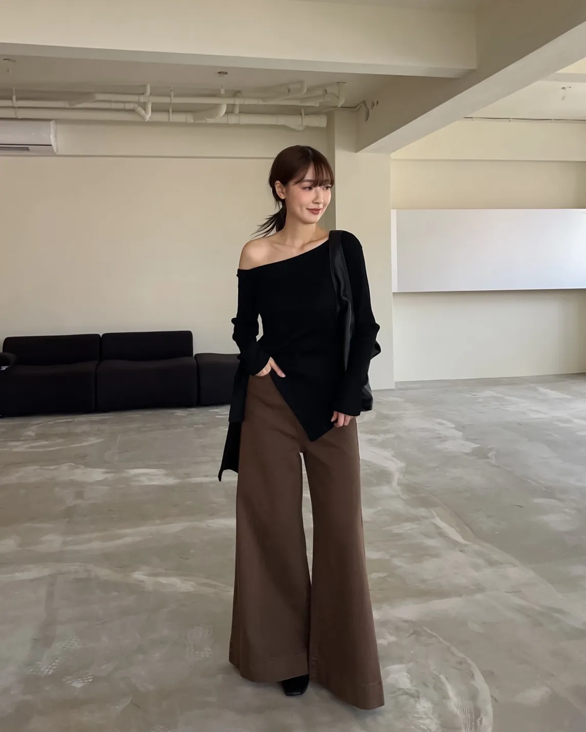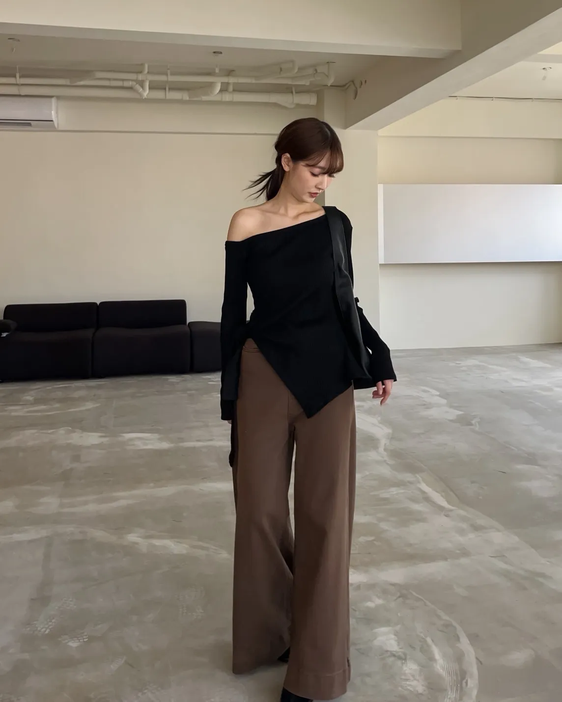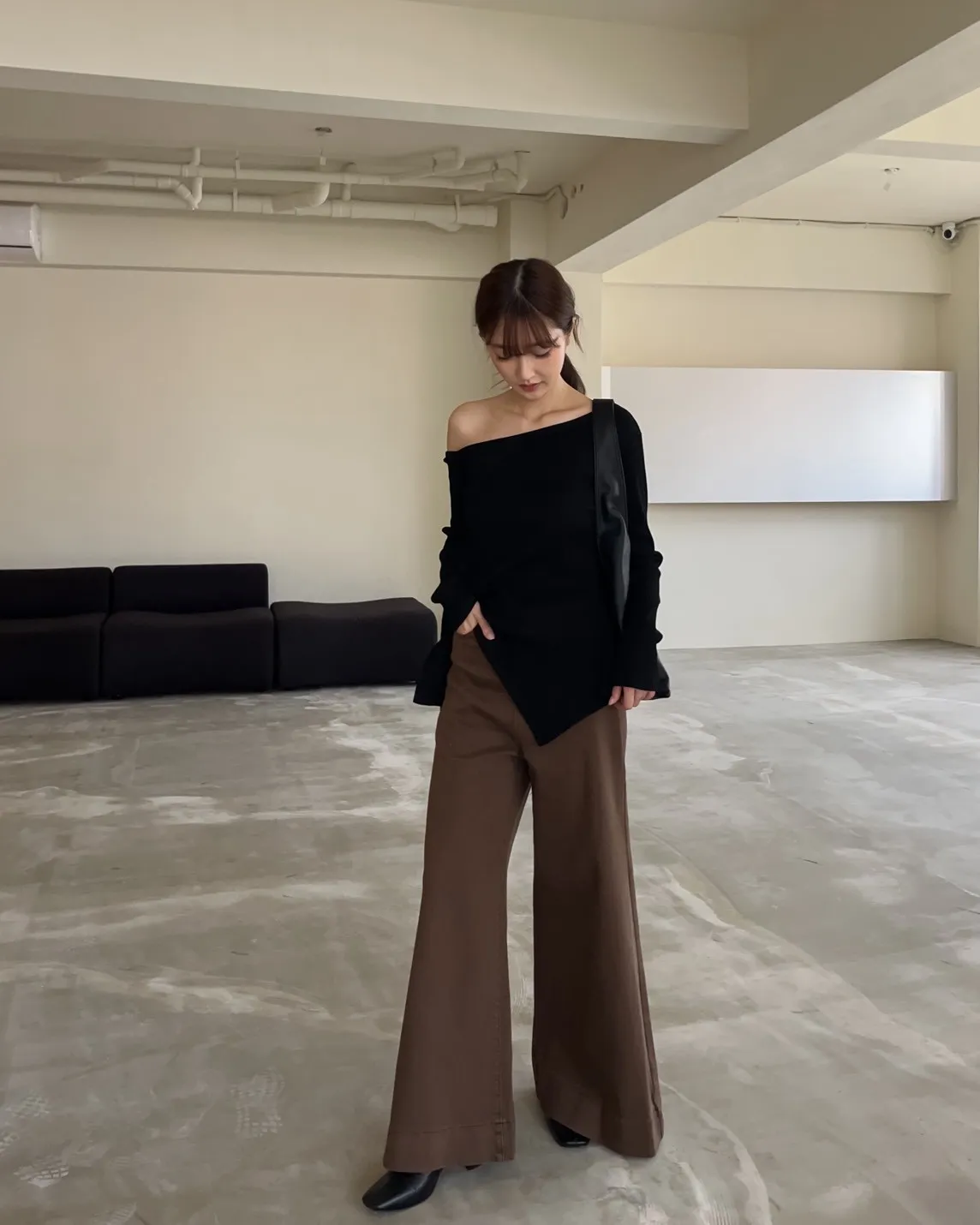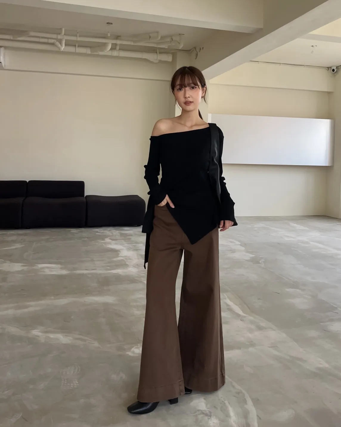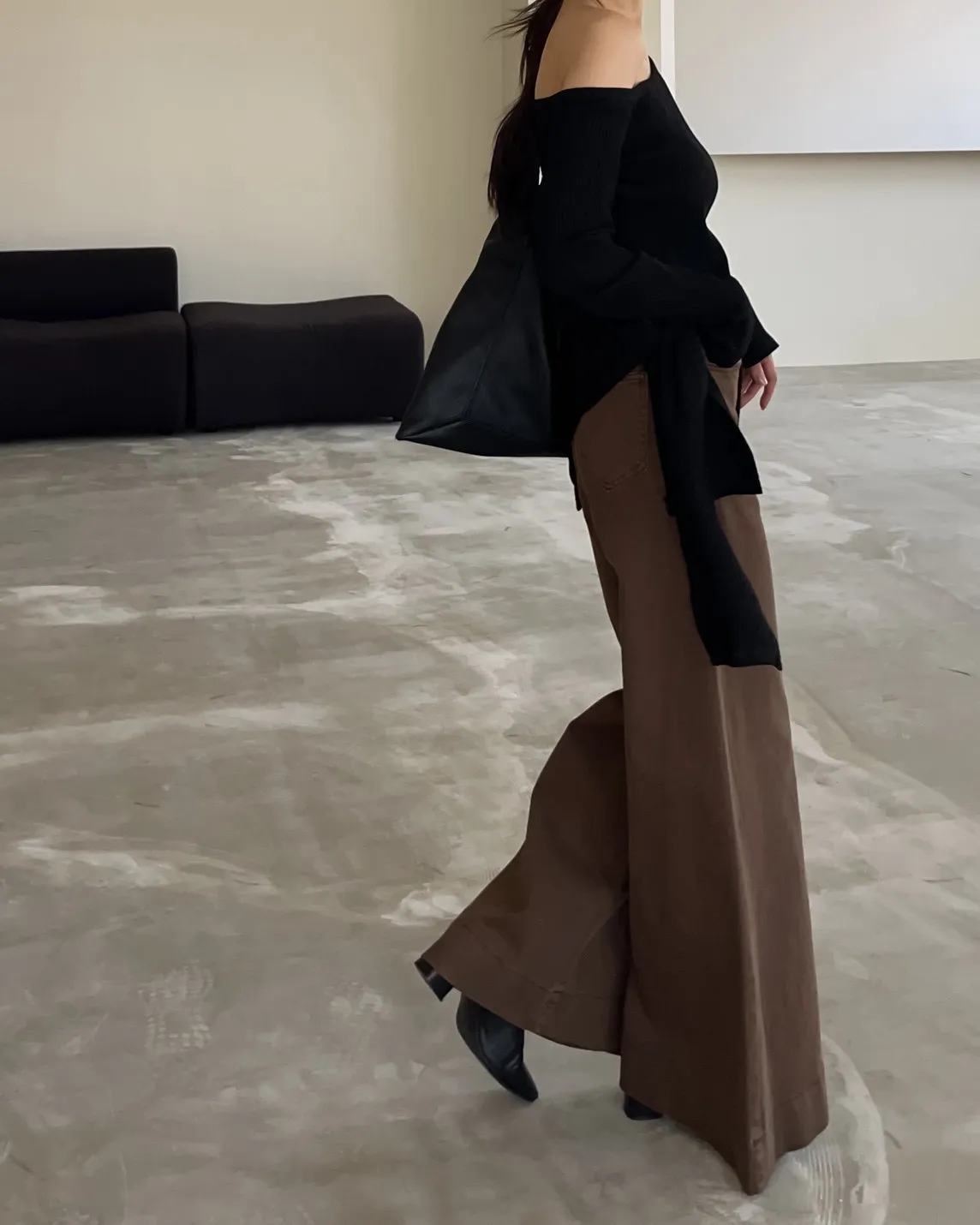 V0040(附麂皮帶)苦甜可可帥氣寬直筒褲