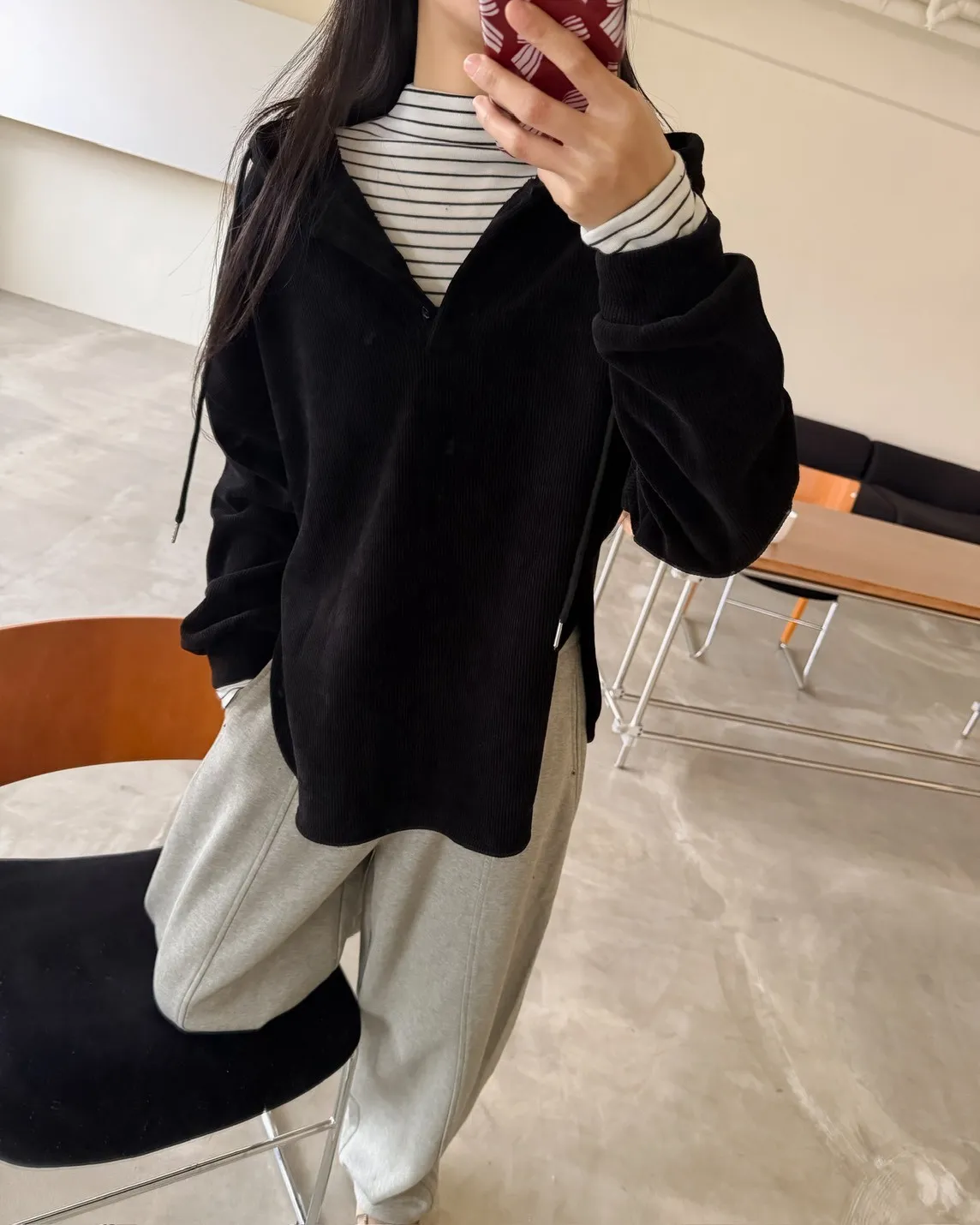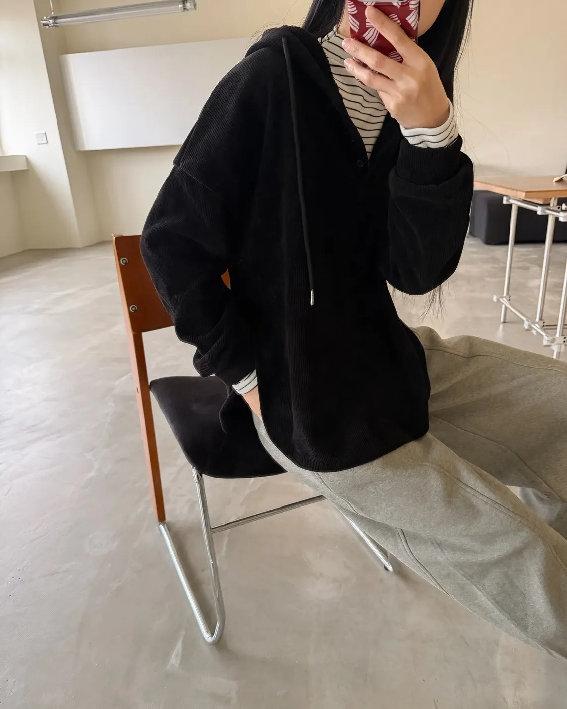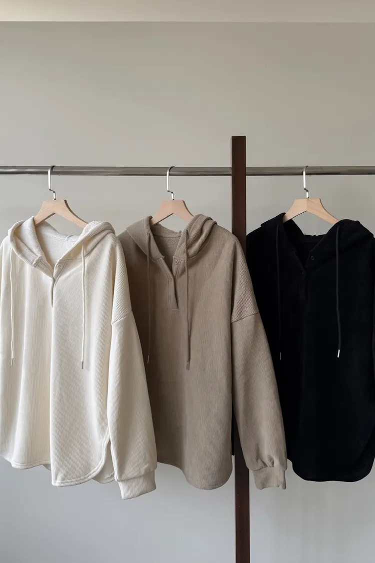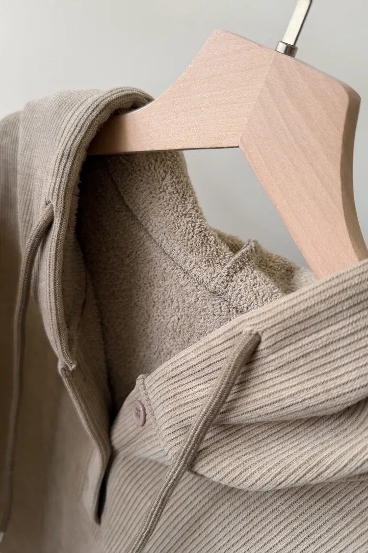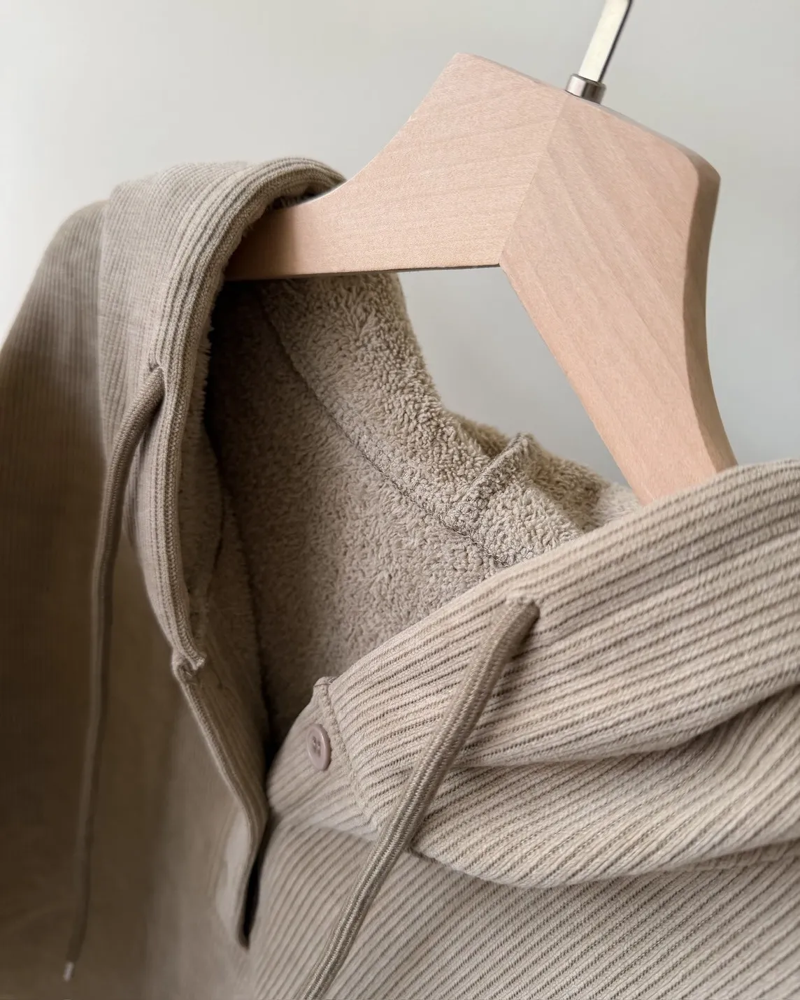 抽繩連帽 小鈕扣 可開 下擺圓弧 兩側開衩 內刷毛 外層燈心絨