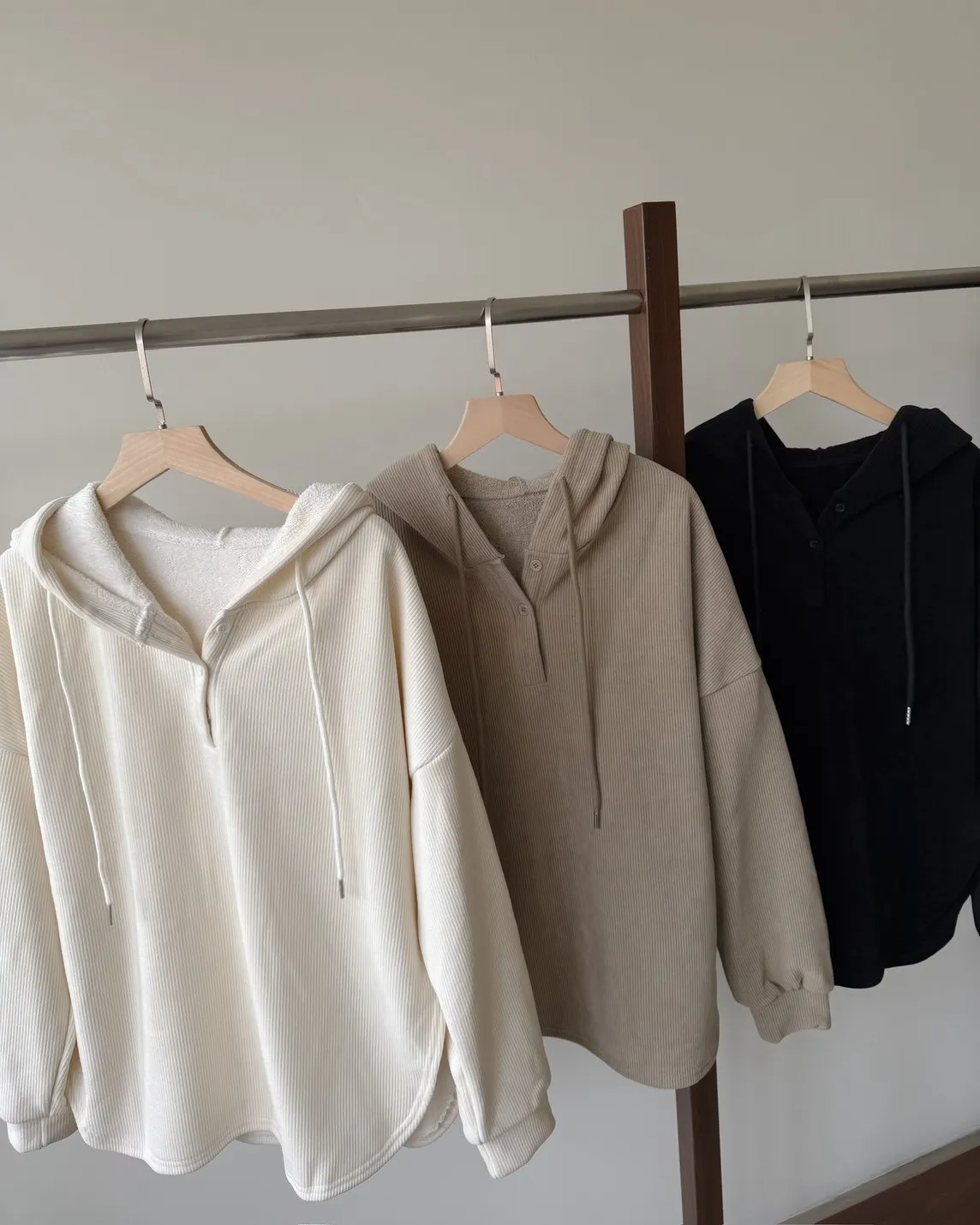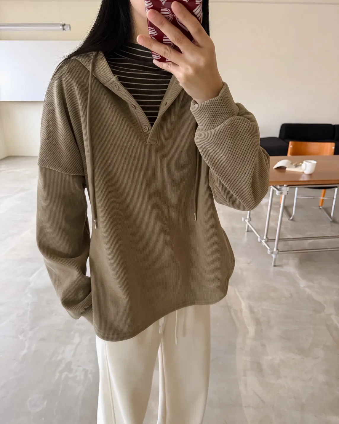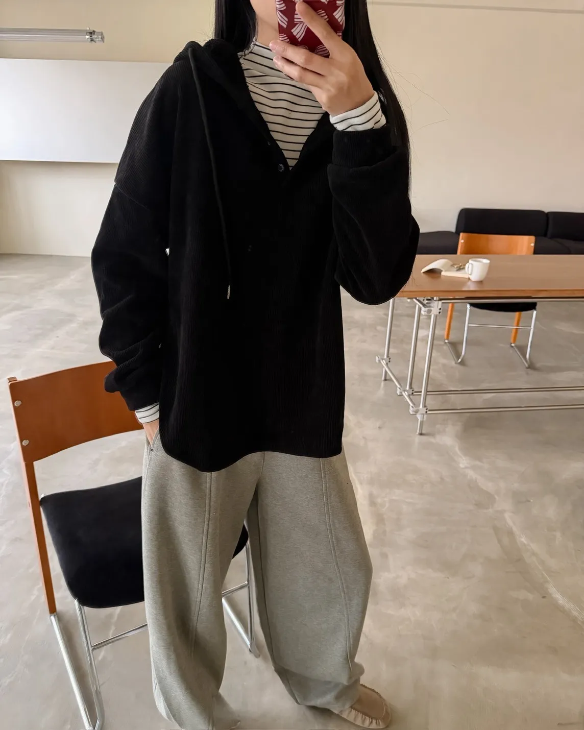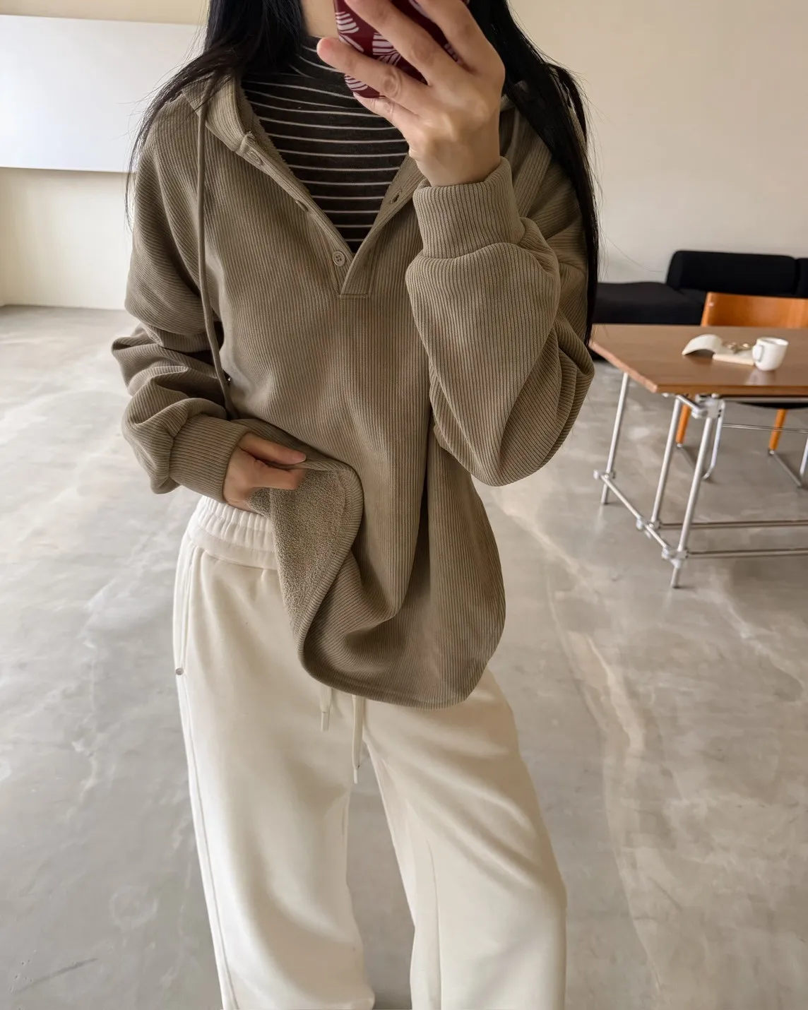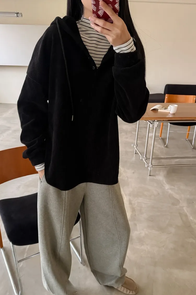 抽繩連帽 小鈕扣 可開 下擺圓弧 兩側開衩 內刷毛 外層燈心絨