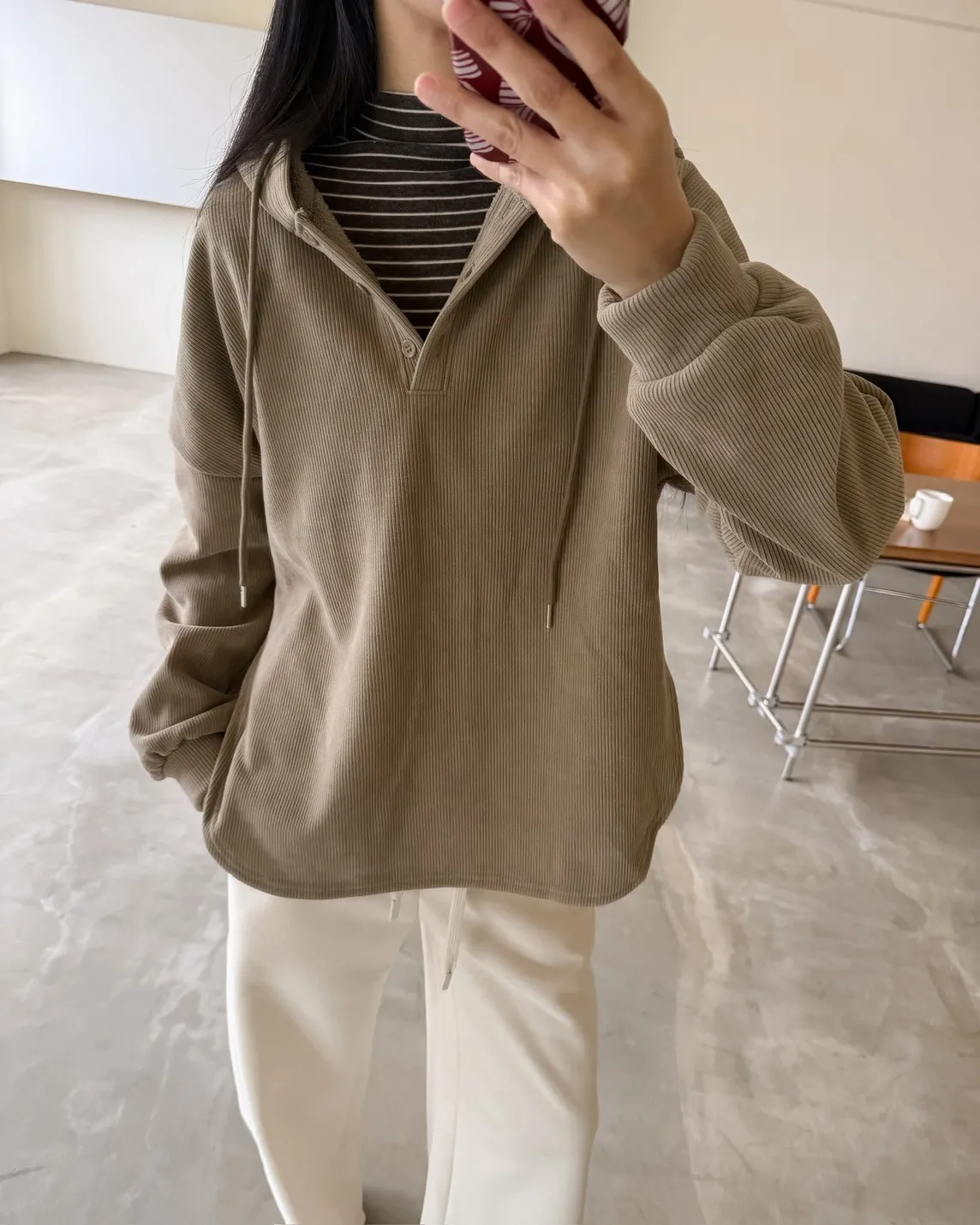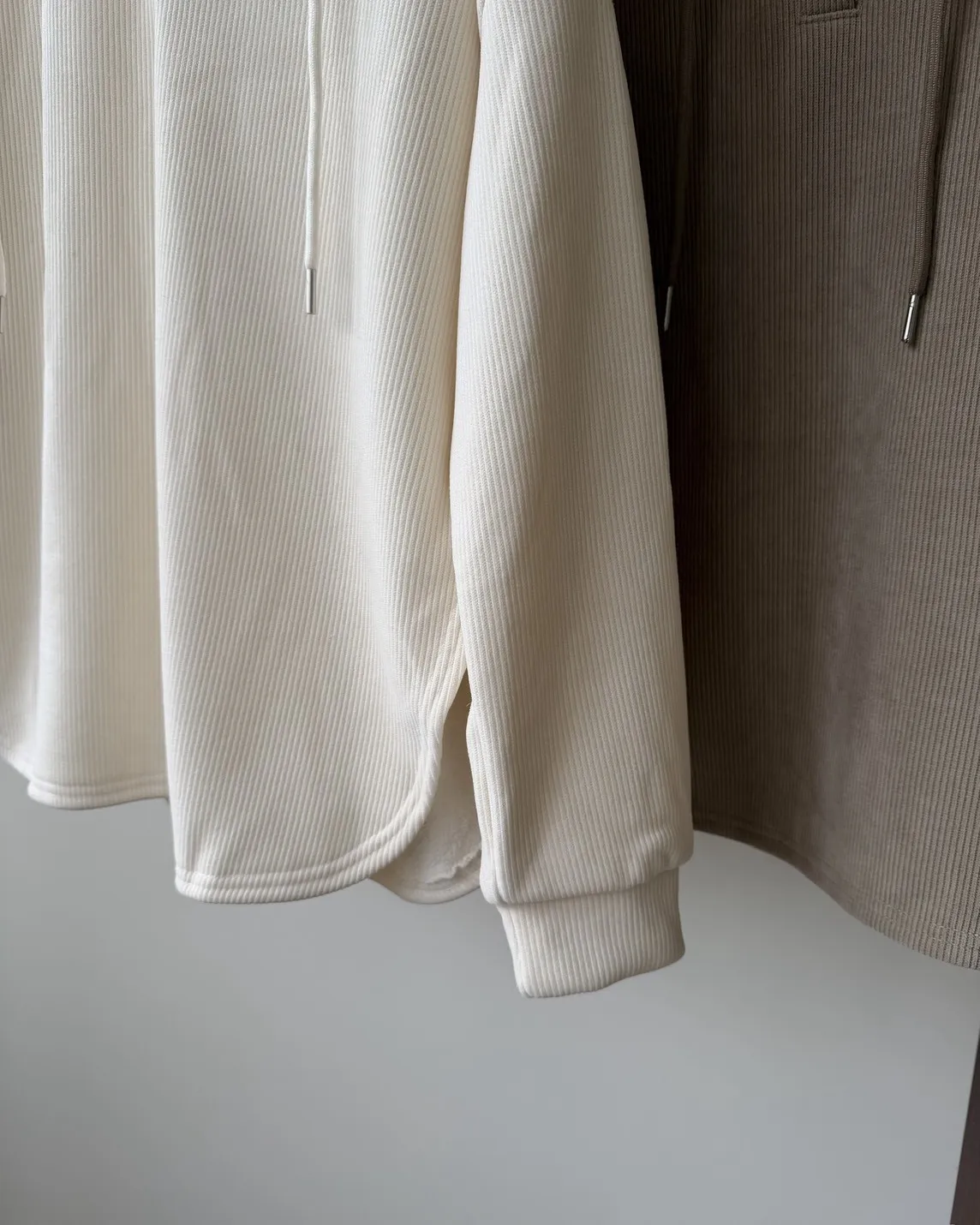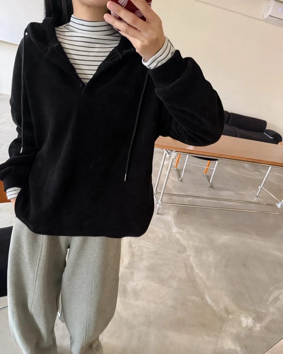 Y0026可愛圓弧~鋪絨毛連帽燈芯絨上衣(米白/奶茶/黑)