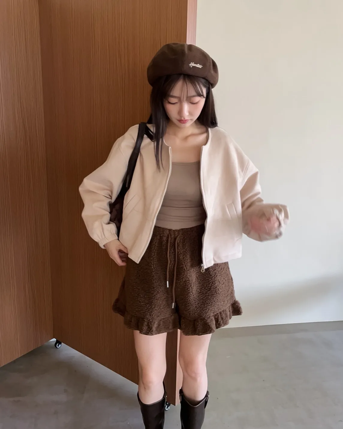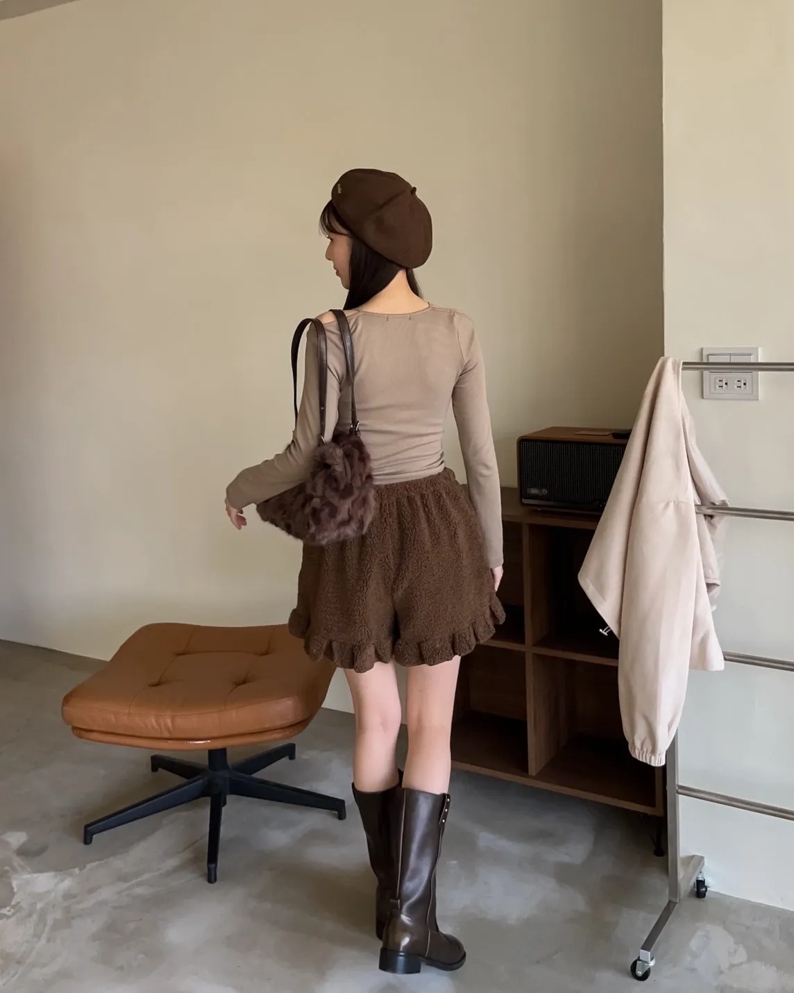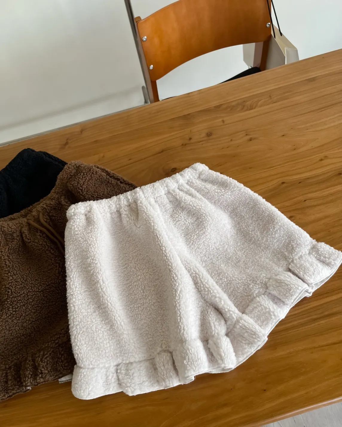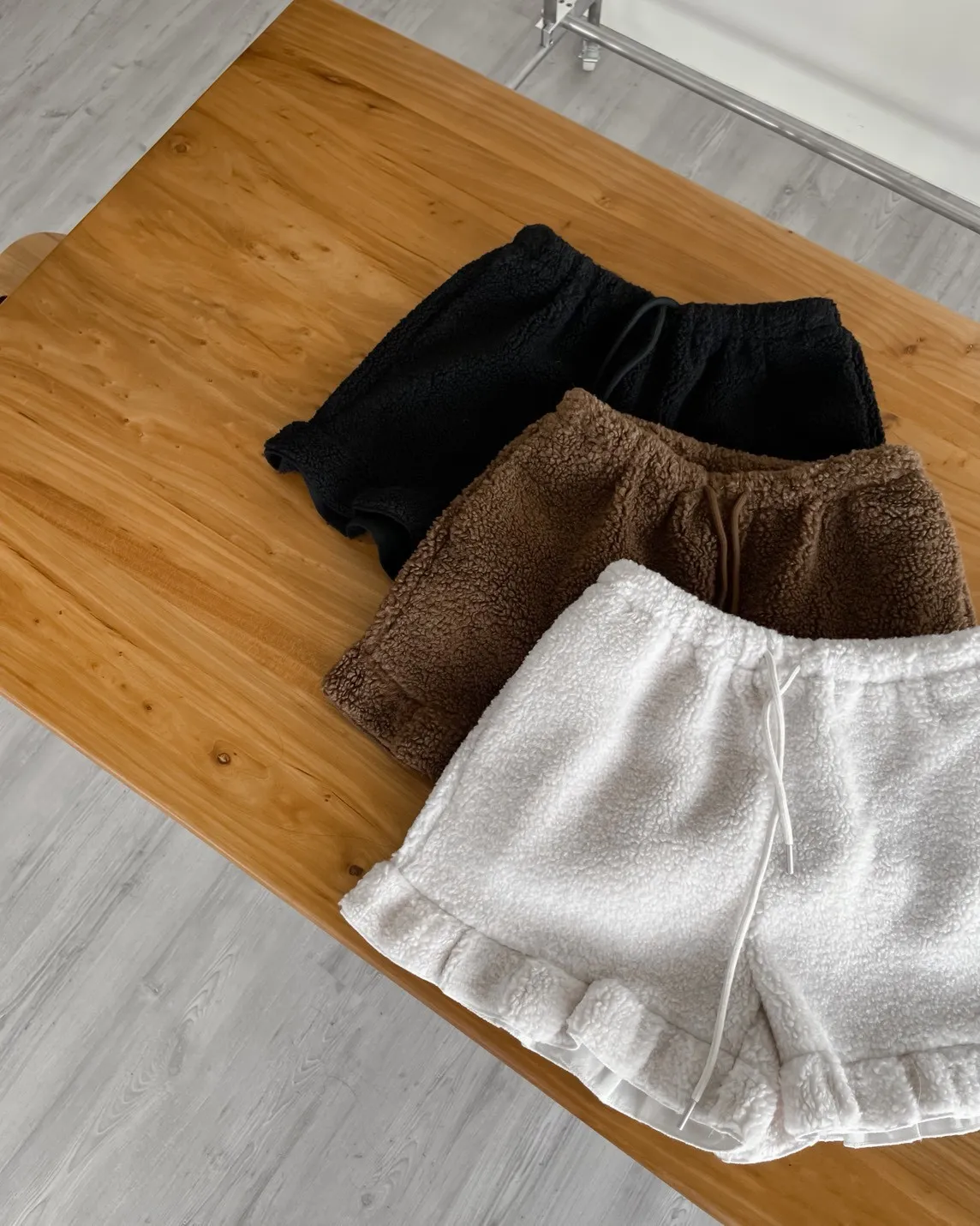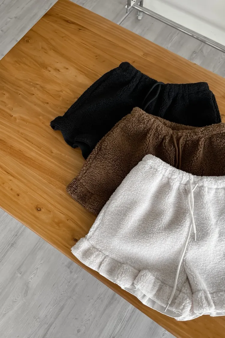 W0015熊寶寶荷葉QQ短褲(杏/咖啡/黑)