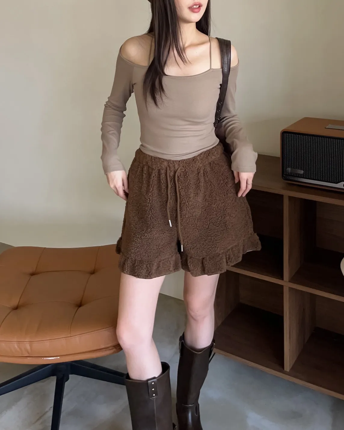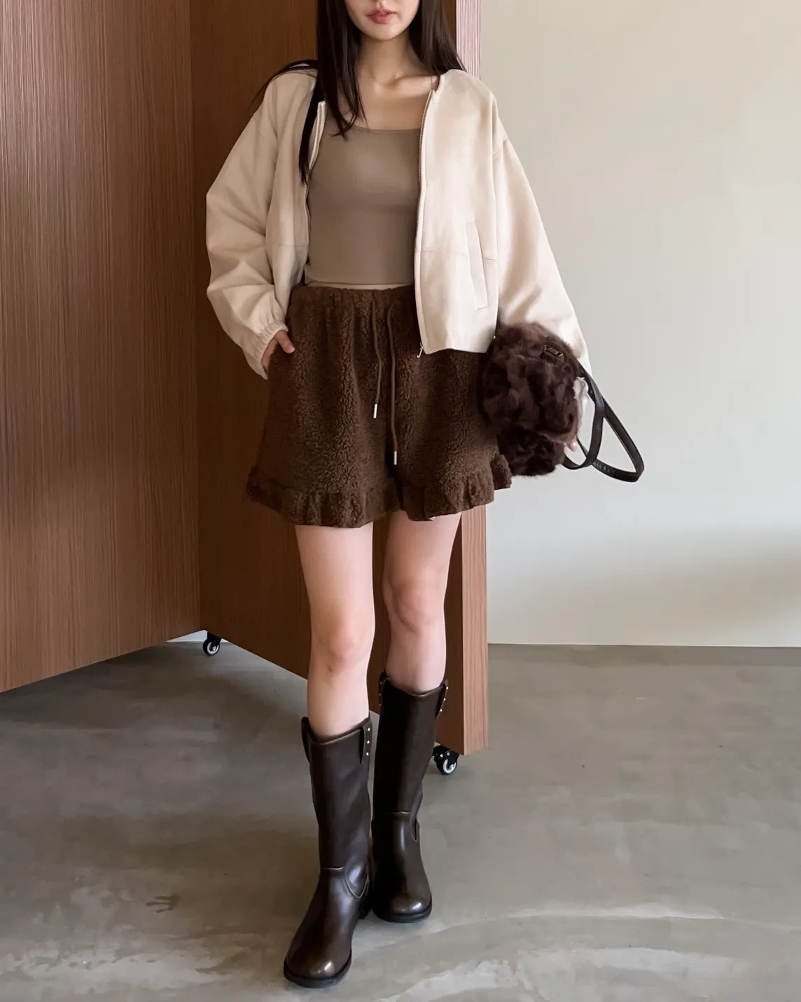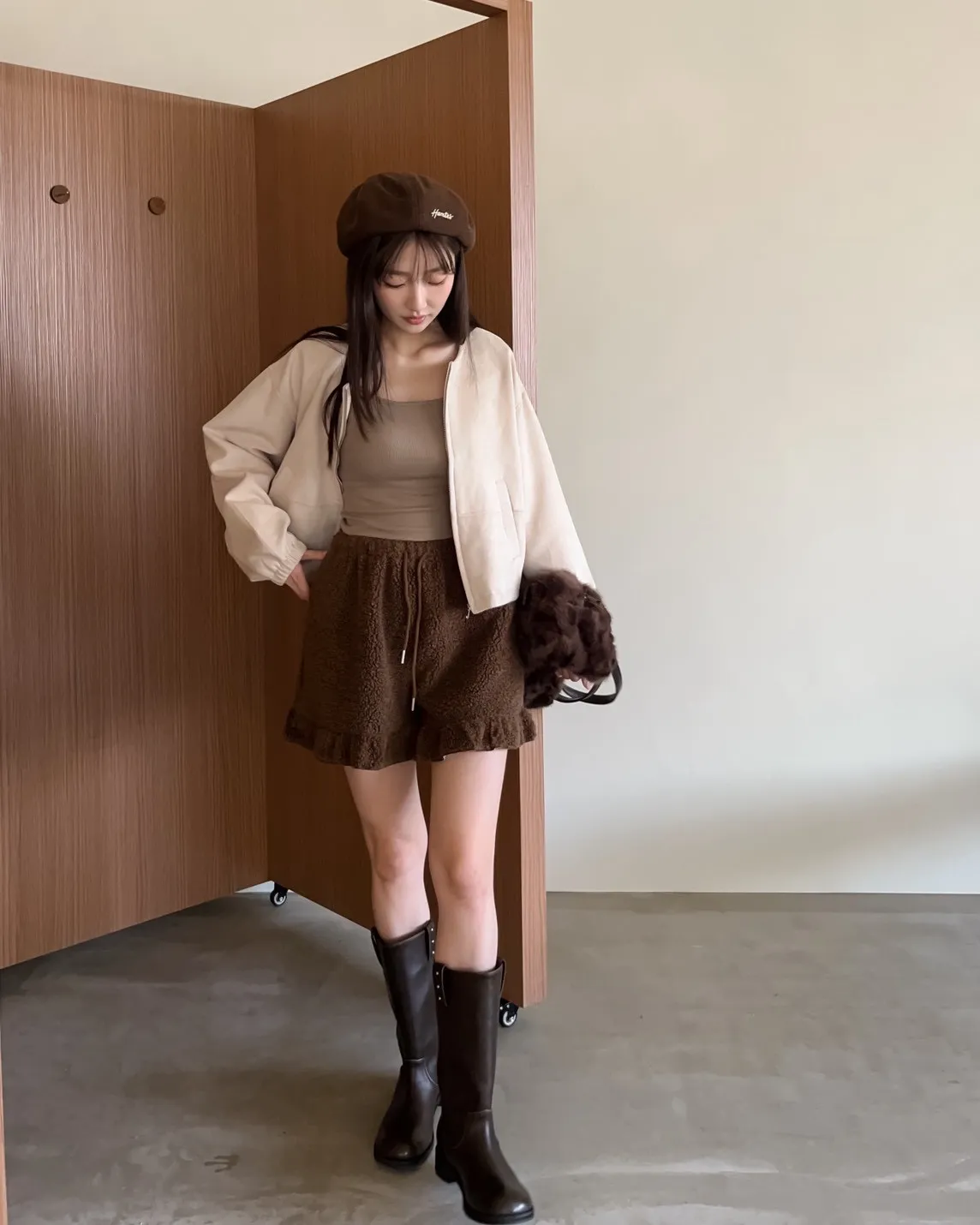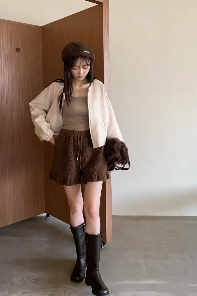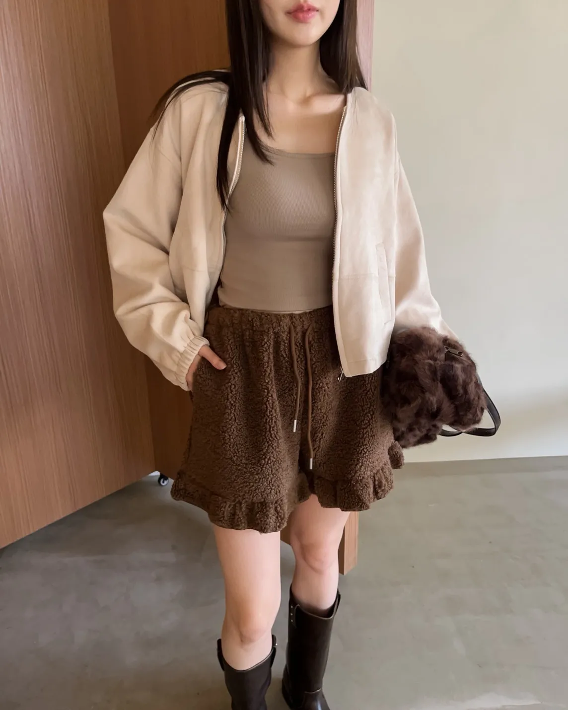 W0015熊寶寶荷葉QQ短褲(杏/咖啡/黑)