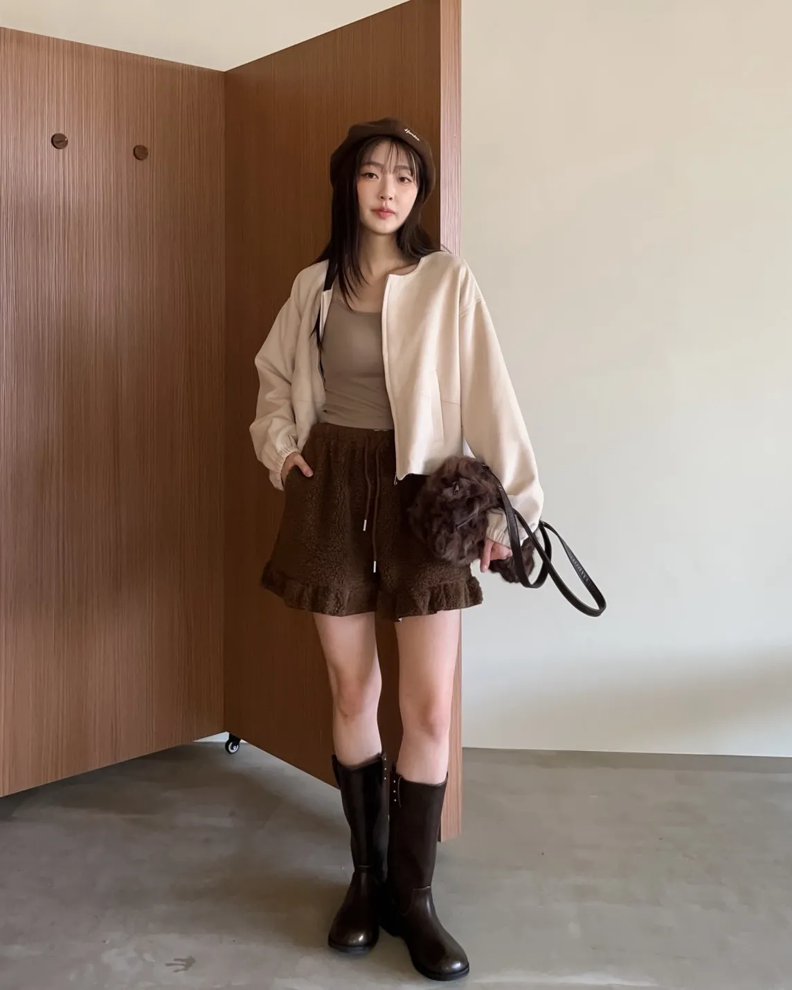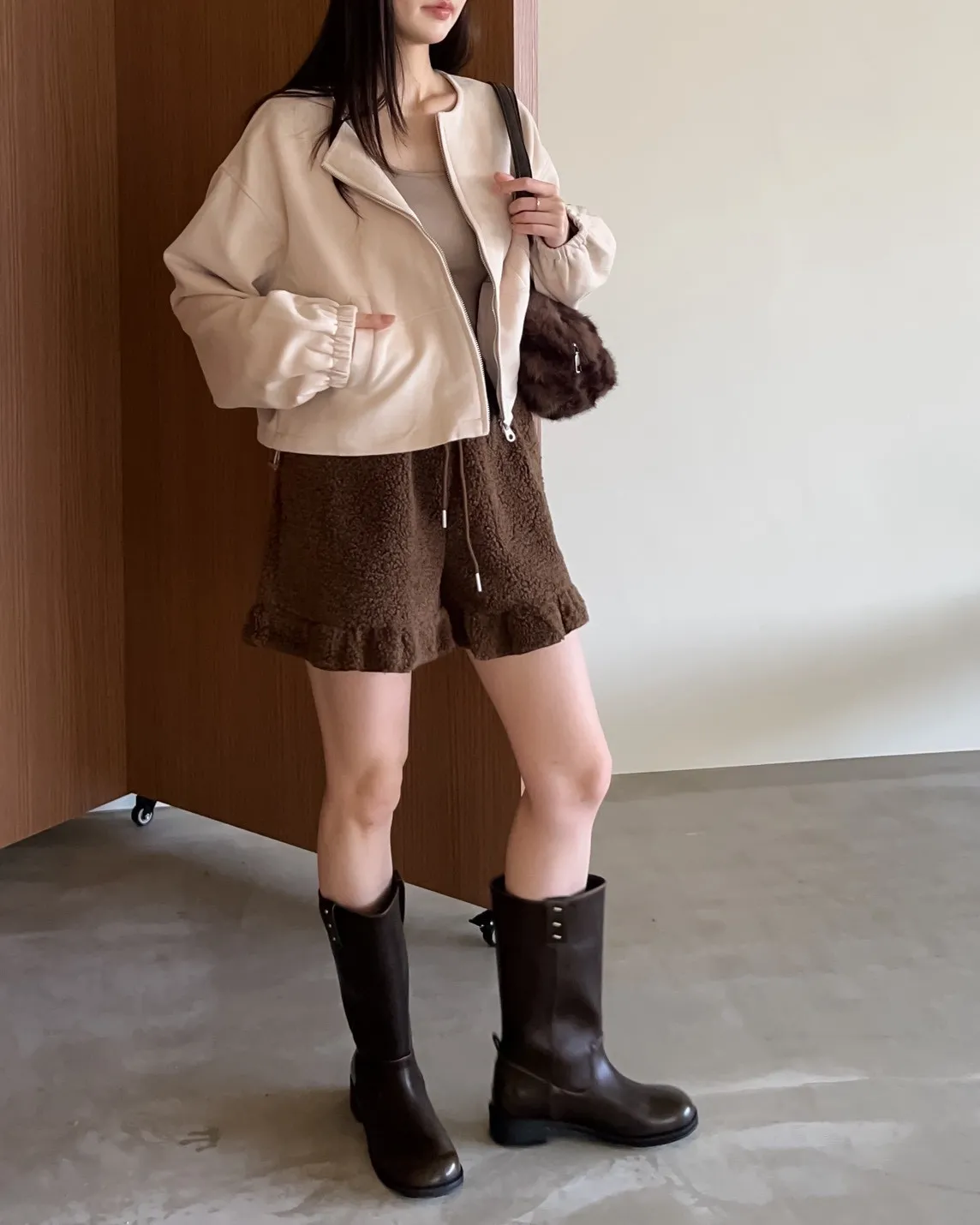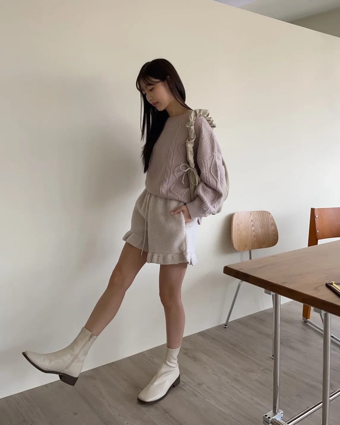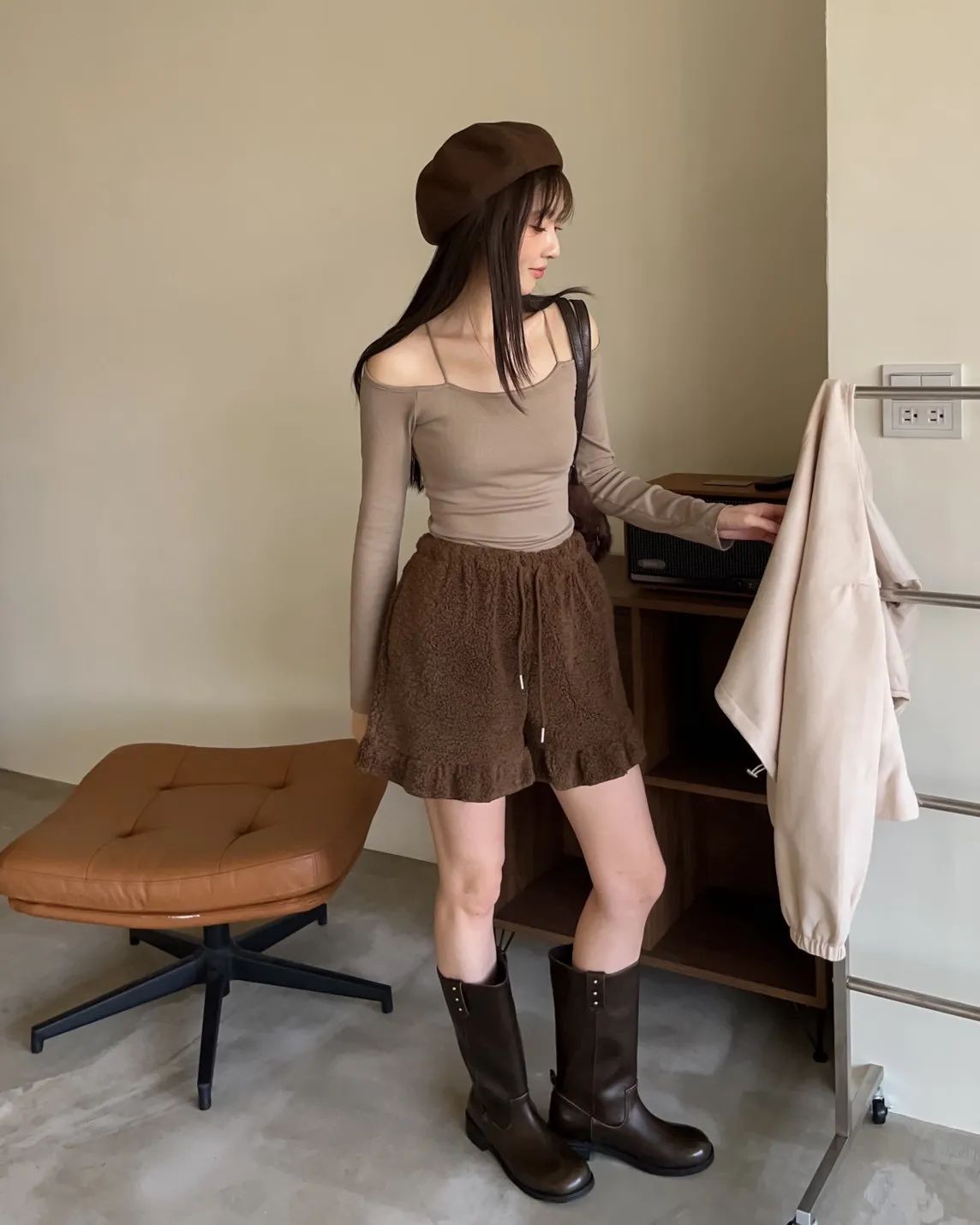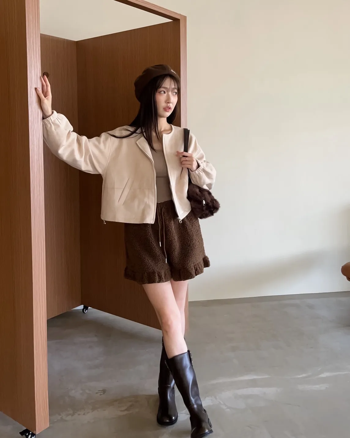 W0015熊寶寶荷葉QQ短褲(杏/咖啡/黑)
